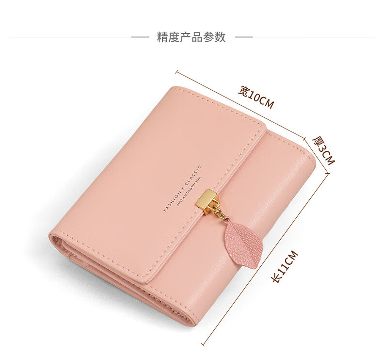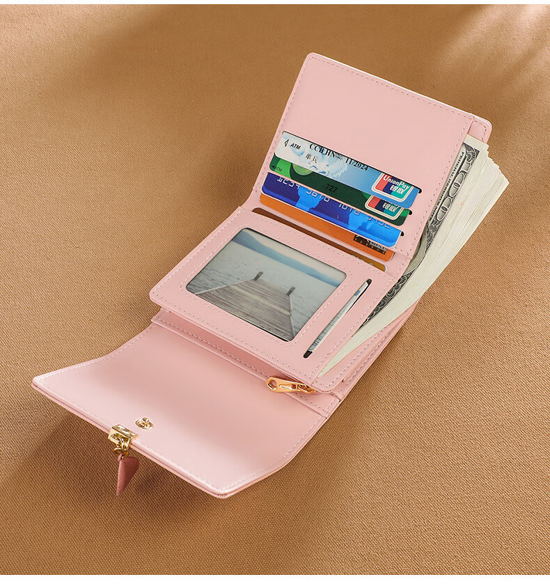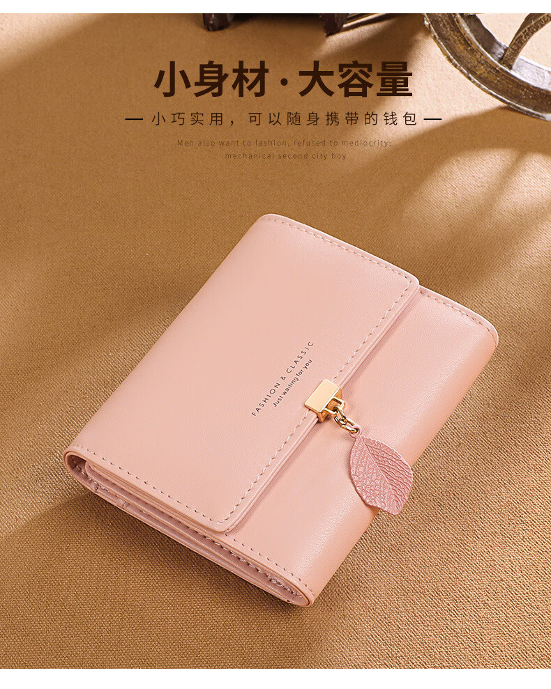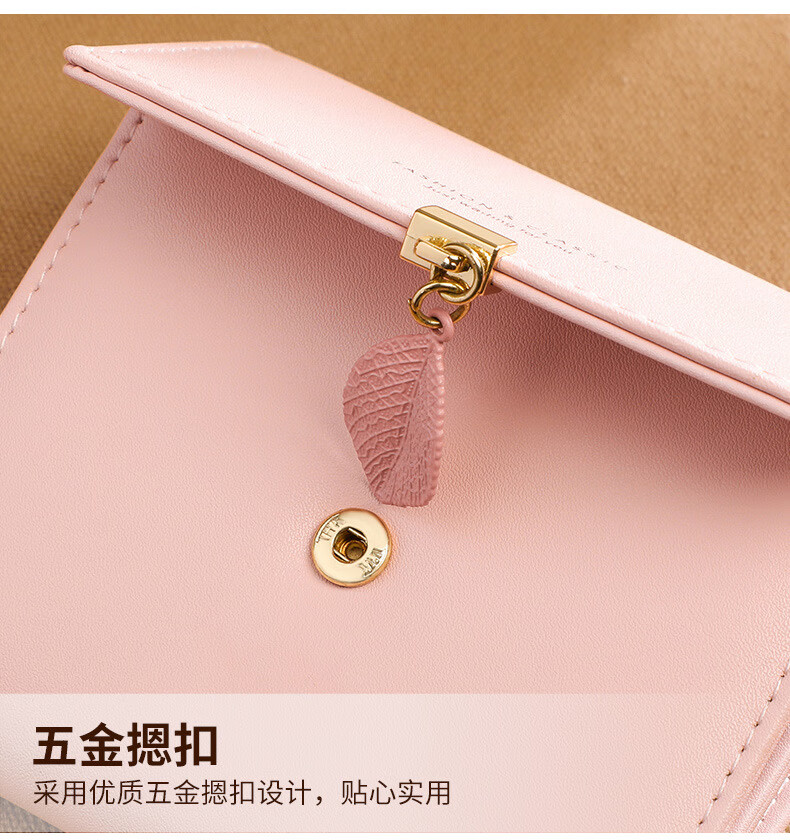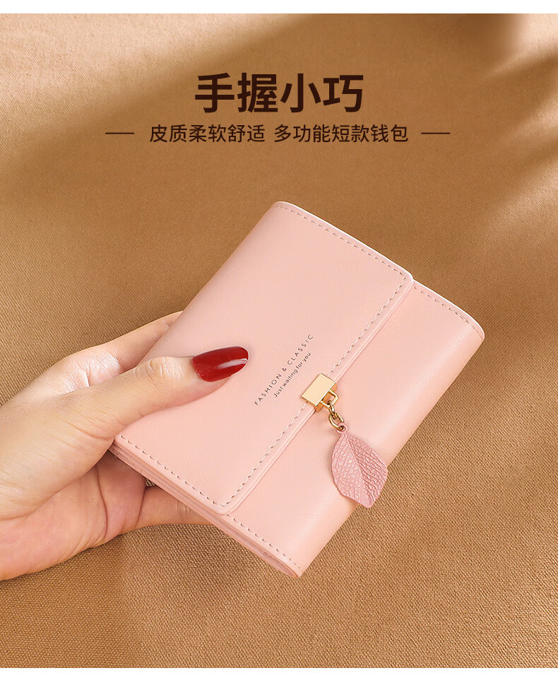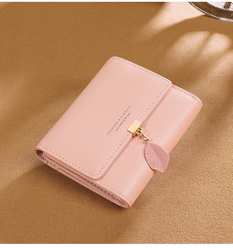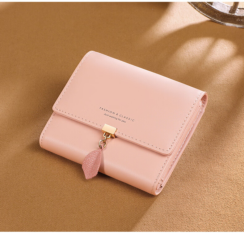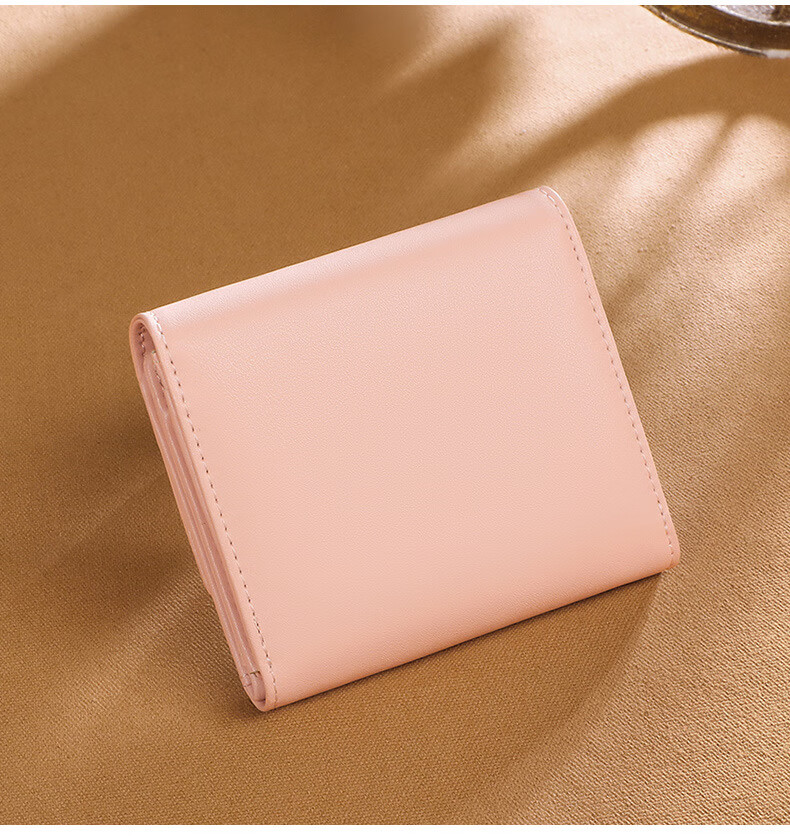 MK leather women's wallet folding short wallet multi-card slot wallet multi-functional light luxury simple change pink