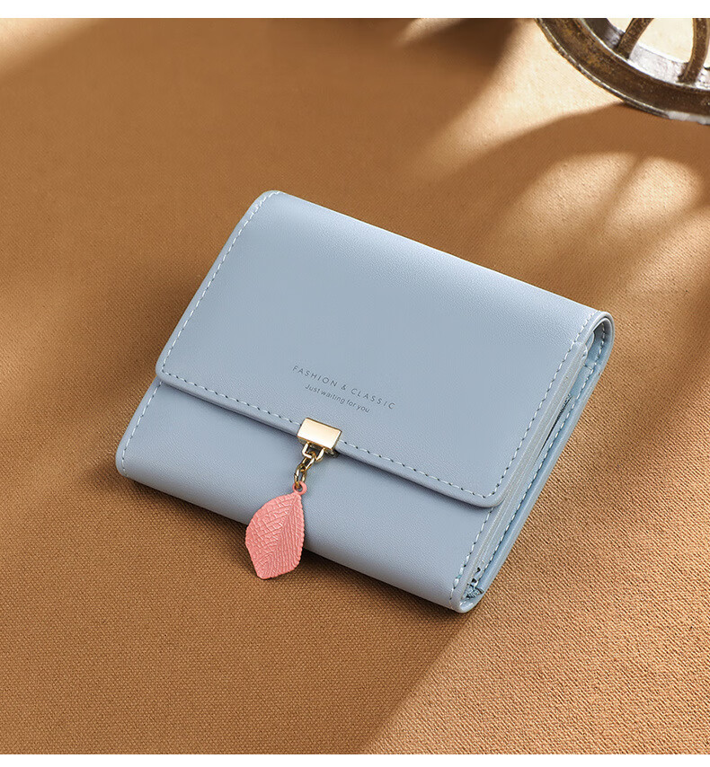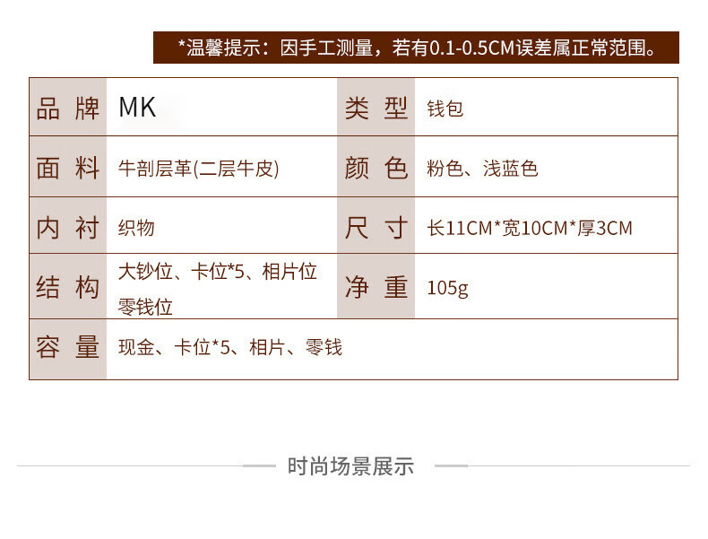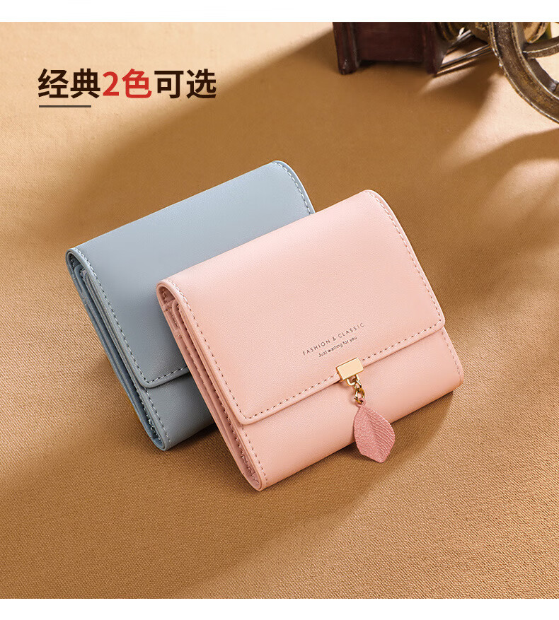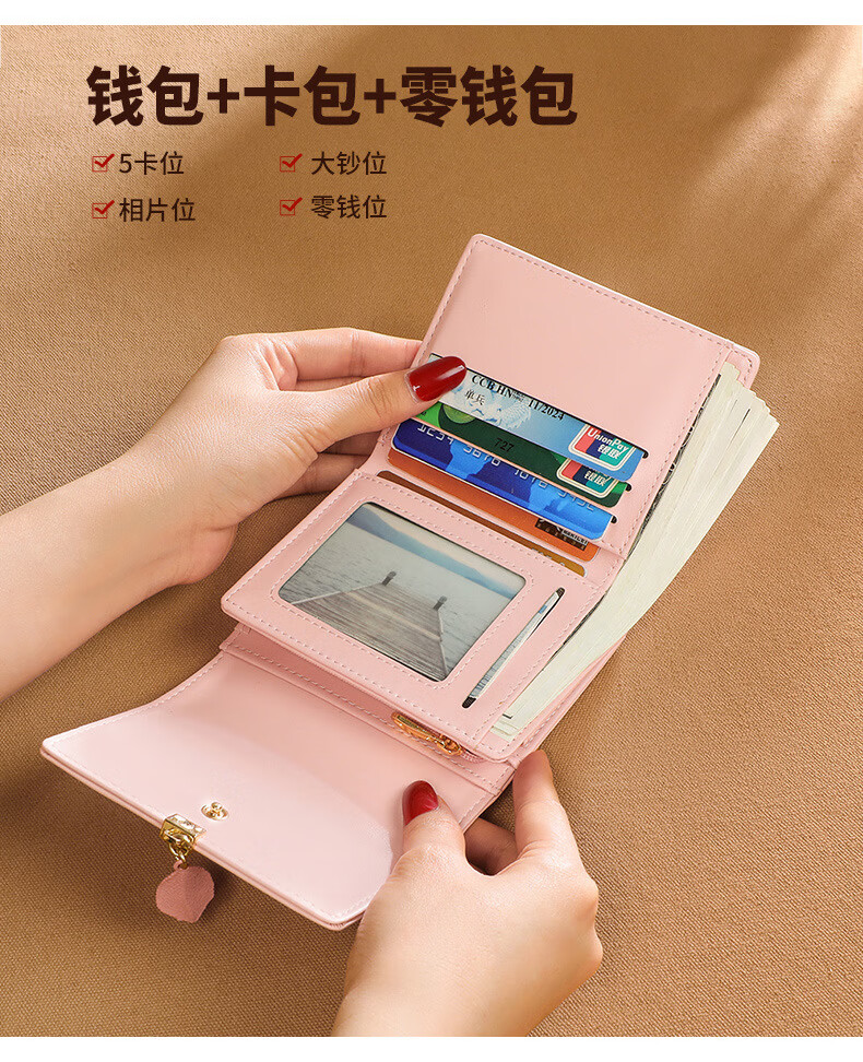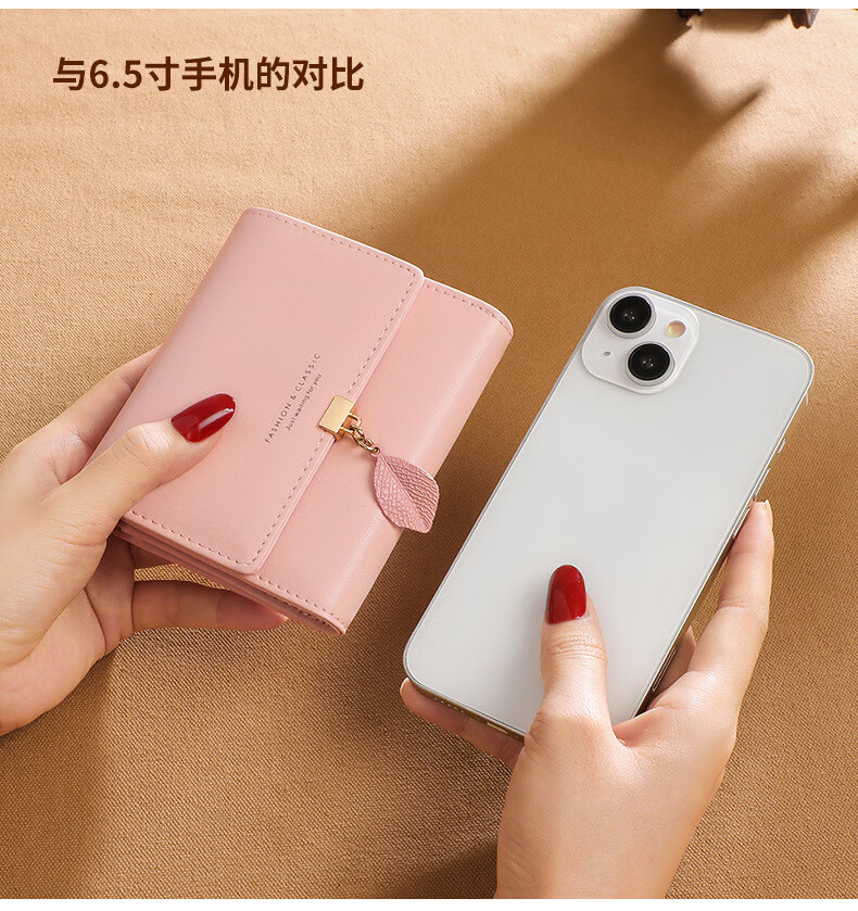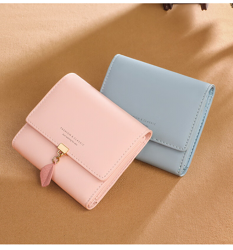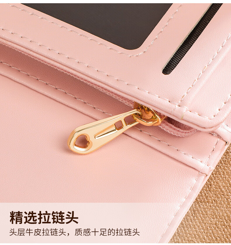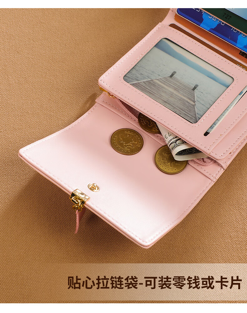 MK leather women's wallet folding short wallet multi-card slot wallet multi-functional light luxury simple change pink