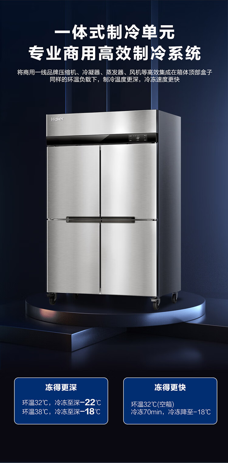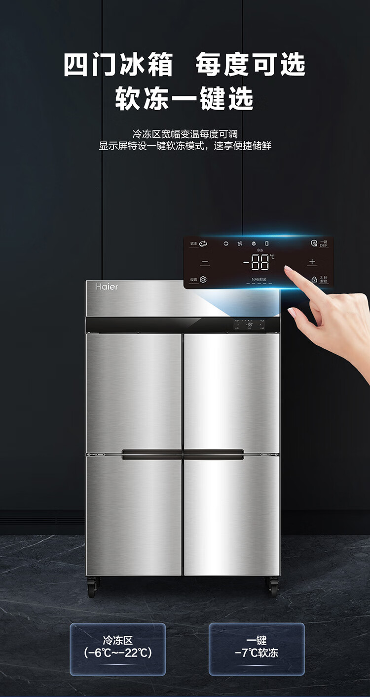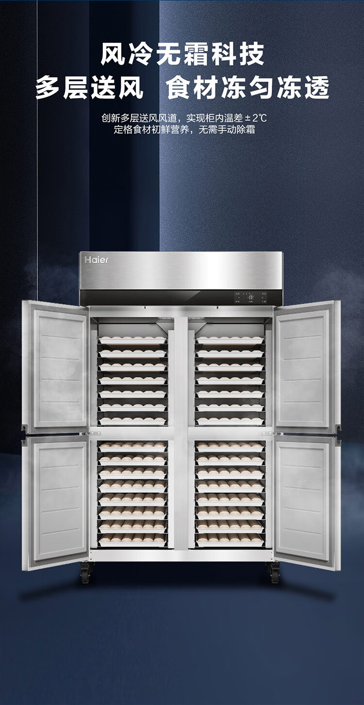 Haier commercial refrigerator, kitchen two-door/four-door vertical freezer, hotel restaurant stainless steel large-capacity freezer, hotel canteen back kitchen quick-freezing tray cabinet SLT-1026D4W air-cooled, frost-free, four doors, fully frozen