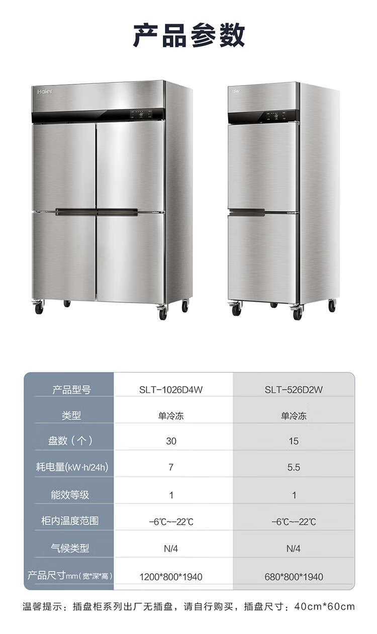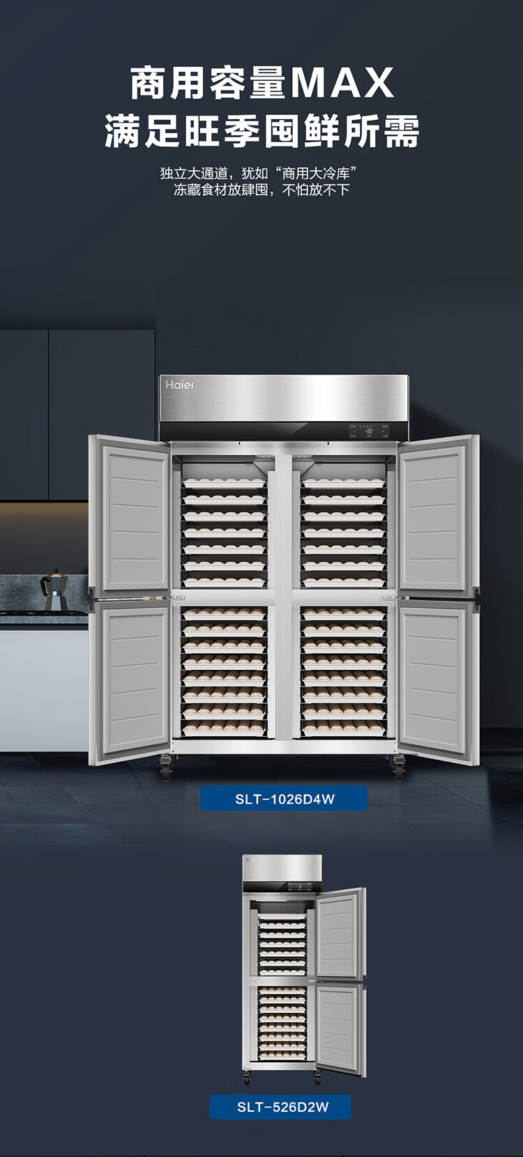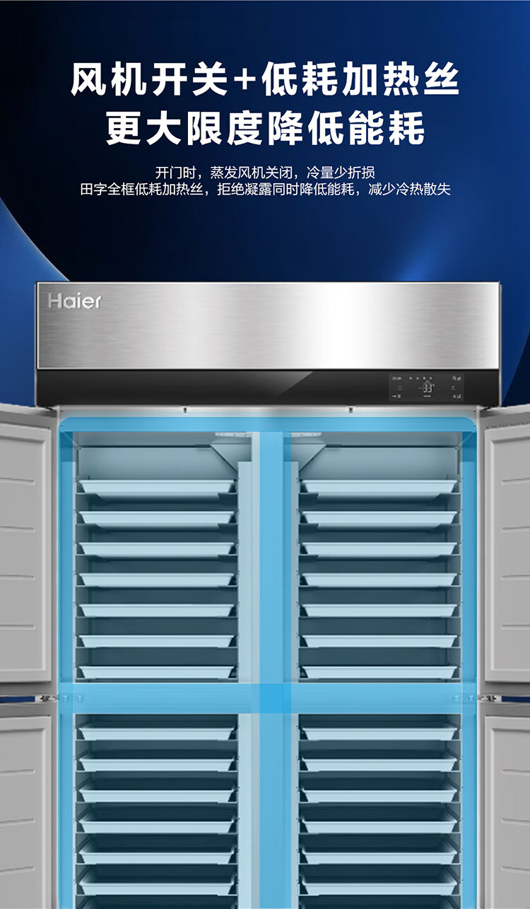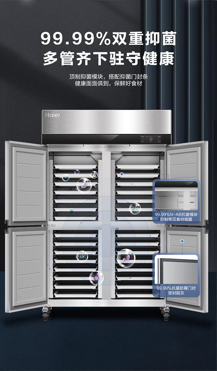 Haier commercial refrigerator, kitchen two-door/four-door vertical freezer, hotel restaurant stainless steel large-capacity freezer, hotel canteen back kitchen quick-freezing tray cabinet SLT-1026D4W air-cooled, frost-free, four doors, fully frozen