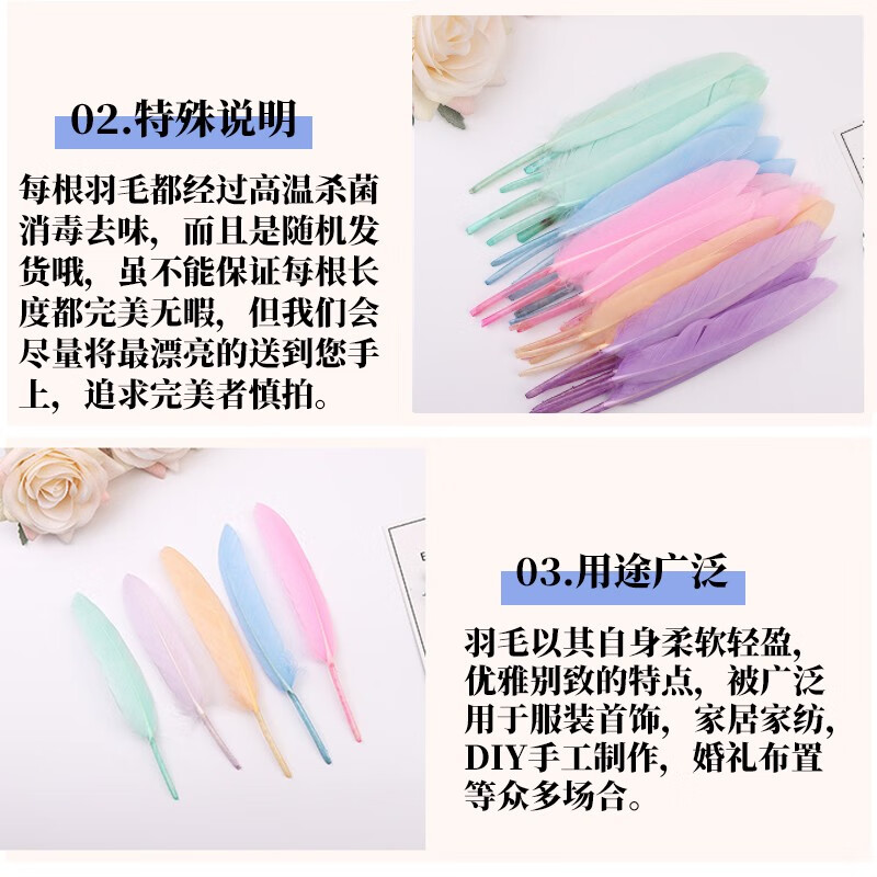 Kunsui children's handmade color knife straight feather DIY color feather material kindergarten handmade feather festival decoration knife white feather 50 pieces