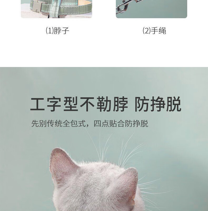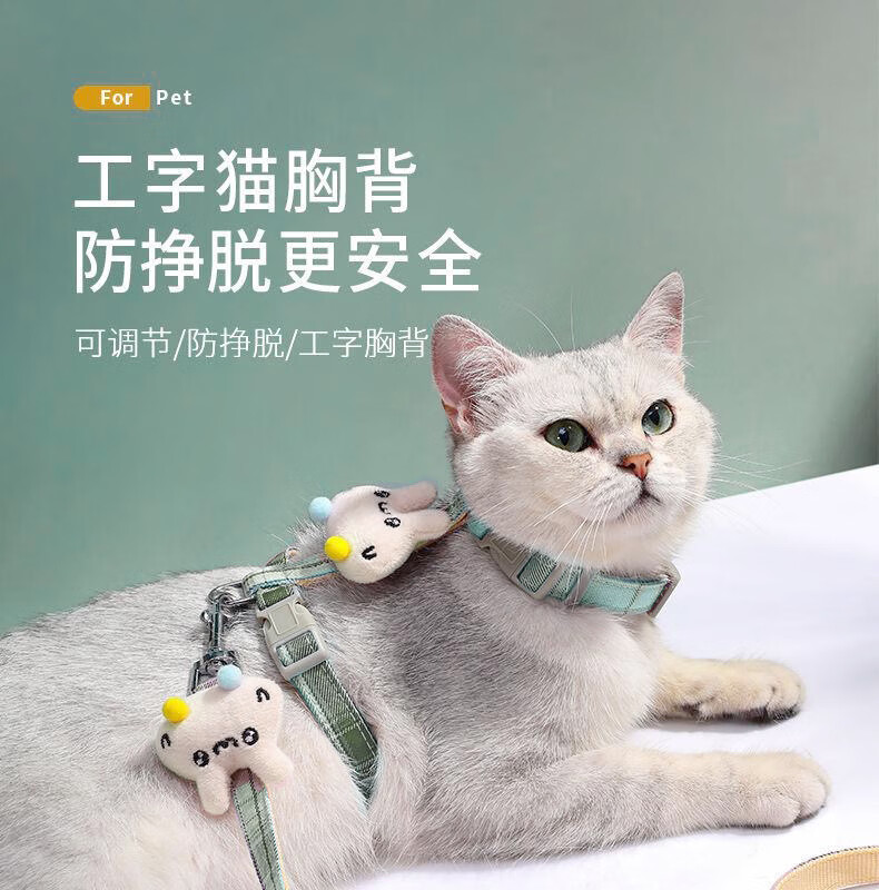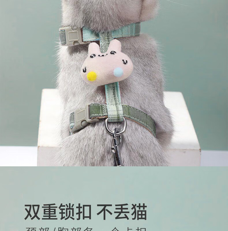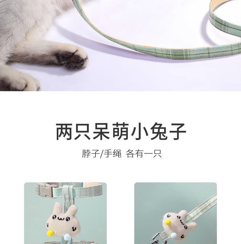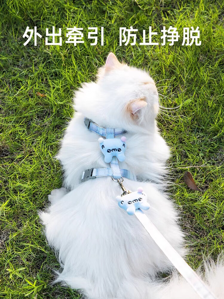 Haiyido pet cat I-shaped gradient traction rope cat rope anti-breakaway adjustable traction cat tether cat rope chain dog leash blue lazy rabbit S size (suitable for 3-8 pounds)