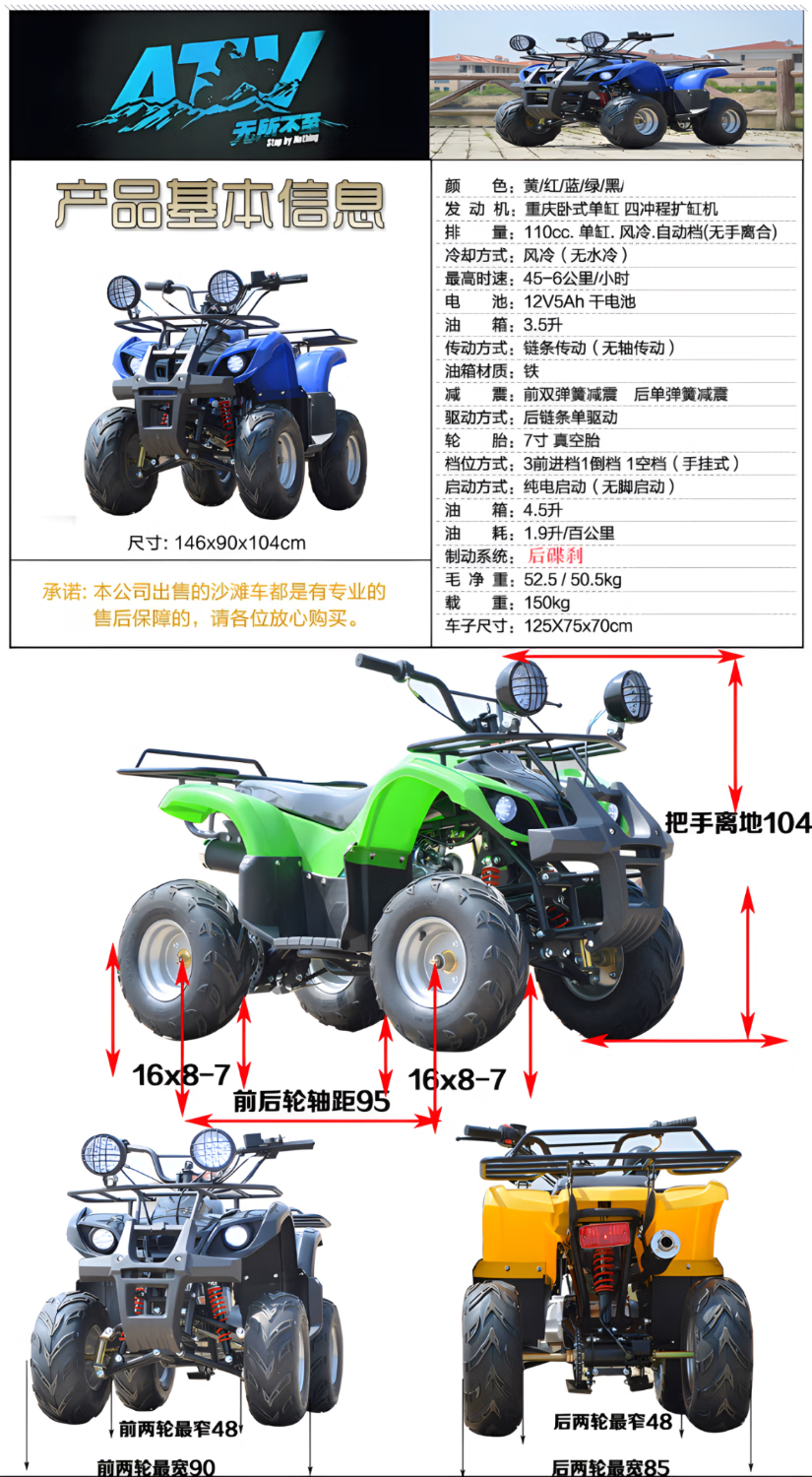 Langchuang ATV110cc big and small bull ATV four-wheel off-road motorcycle kart adult fuel all-terrain vehicle yellow 110cc horizontal engine