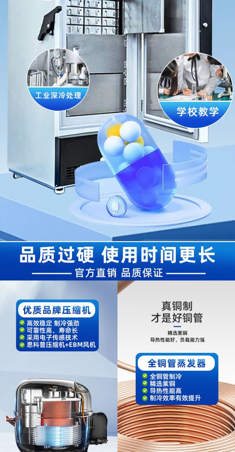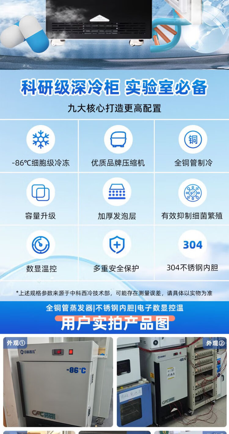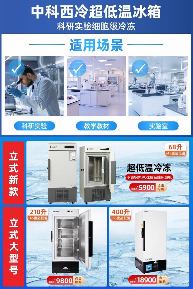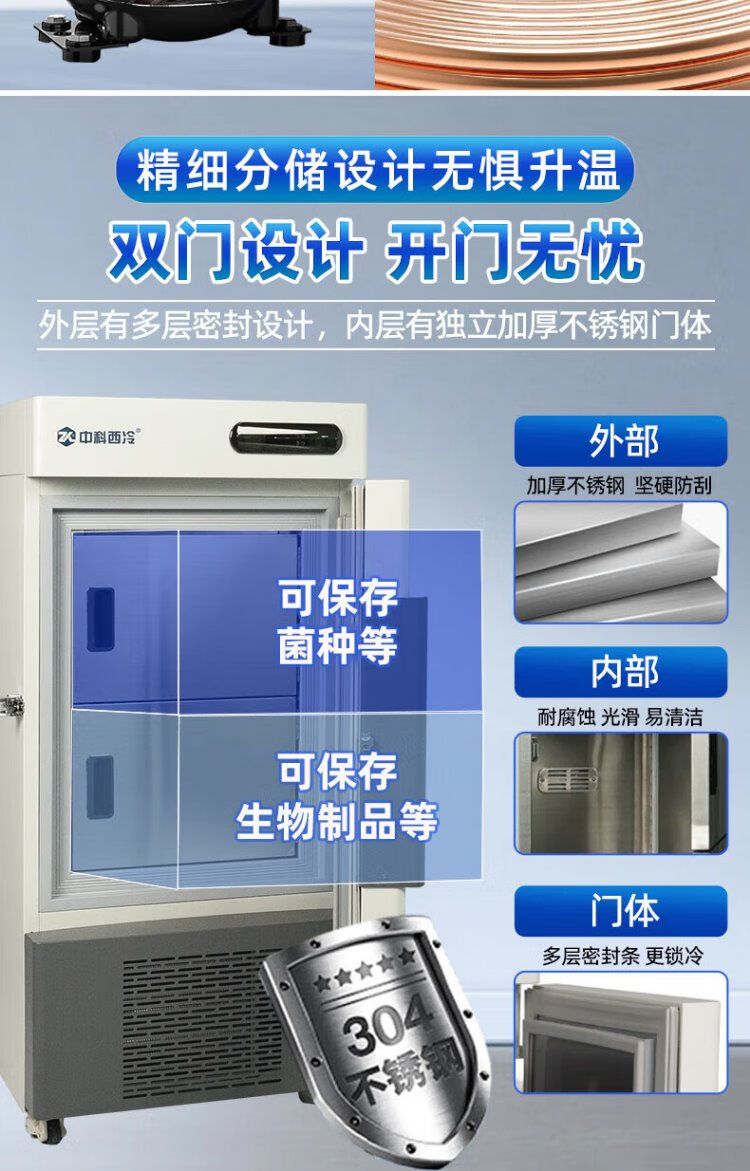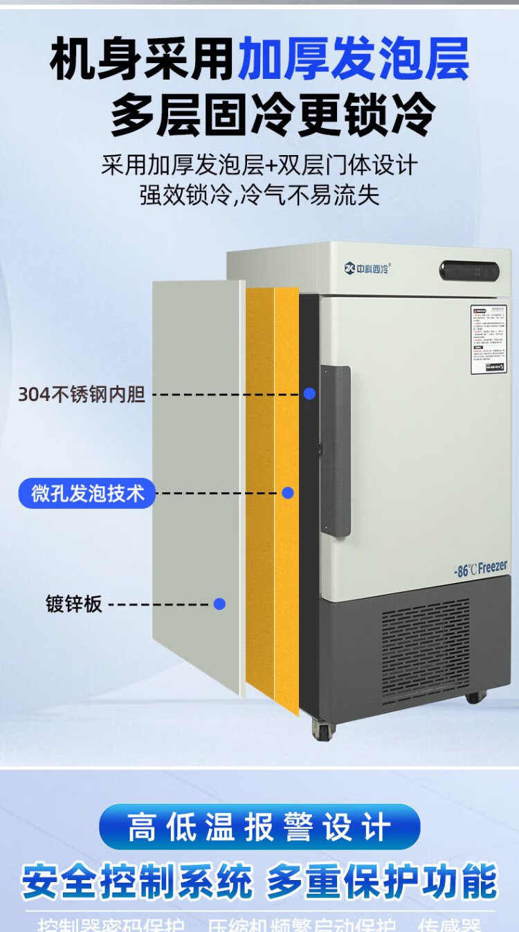 Zhongke Xileng ultra-low temperature refrigerator -80 degrees scientific research laboratory freezer -60 biological dry ice strains -40 commercial specimen cryogenic storage refrigeration and preservation quick-freezer ultra-low temperature 400L -40 to -86 degrees adjustable
