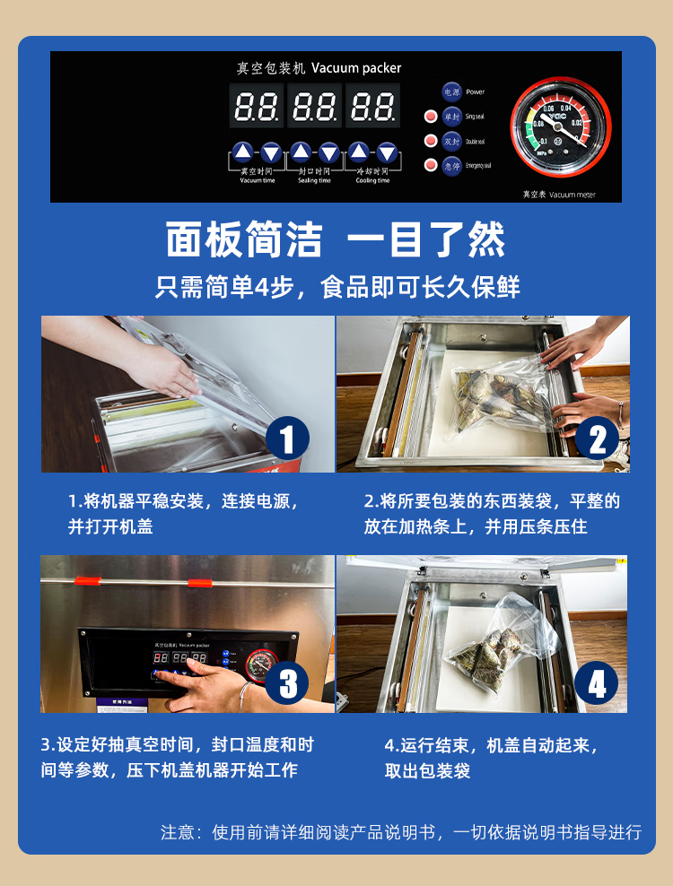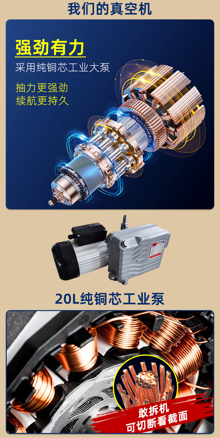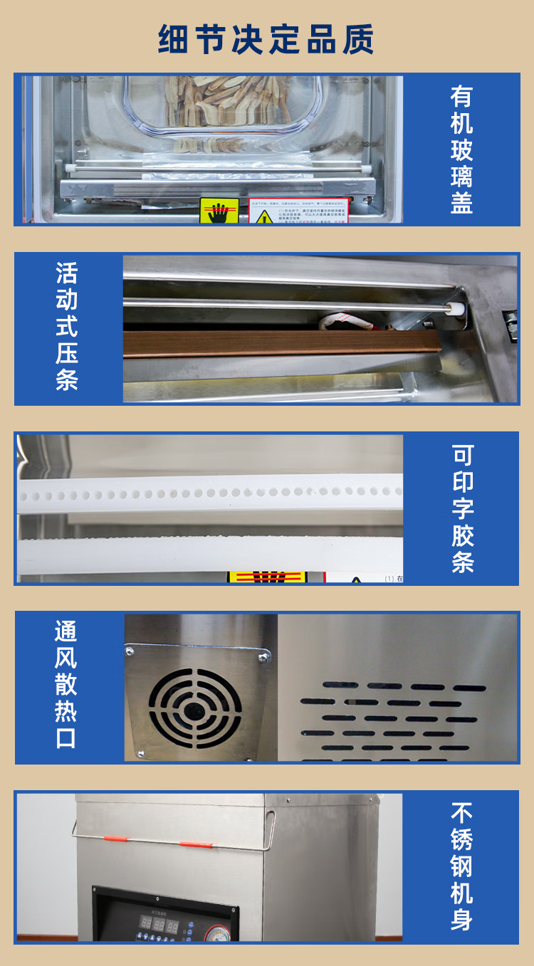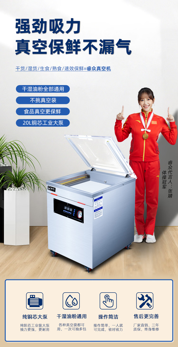 Ruizhong vacuum sealing machine, large suction, commercial cooked food packaging machine, dry and wet dual-use plastic sealing machine, rice dumplings marinated 400min desktop, wet and dry, pure copper pump 2 catties