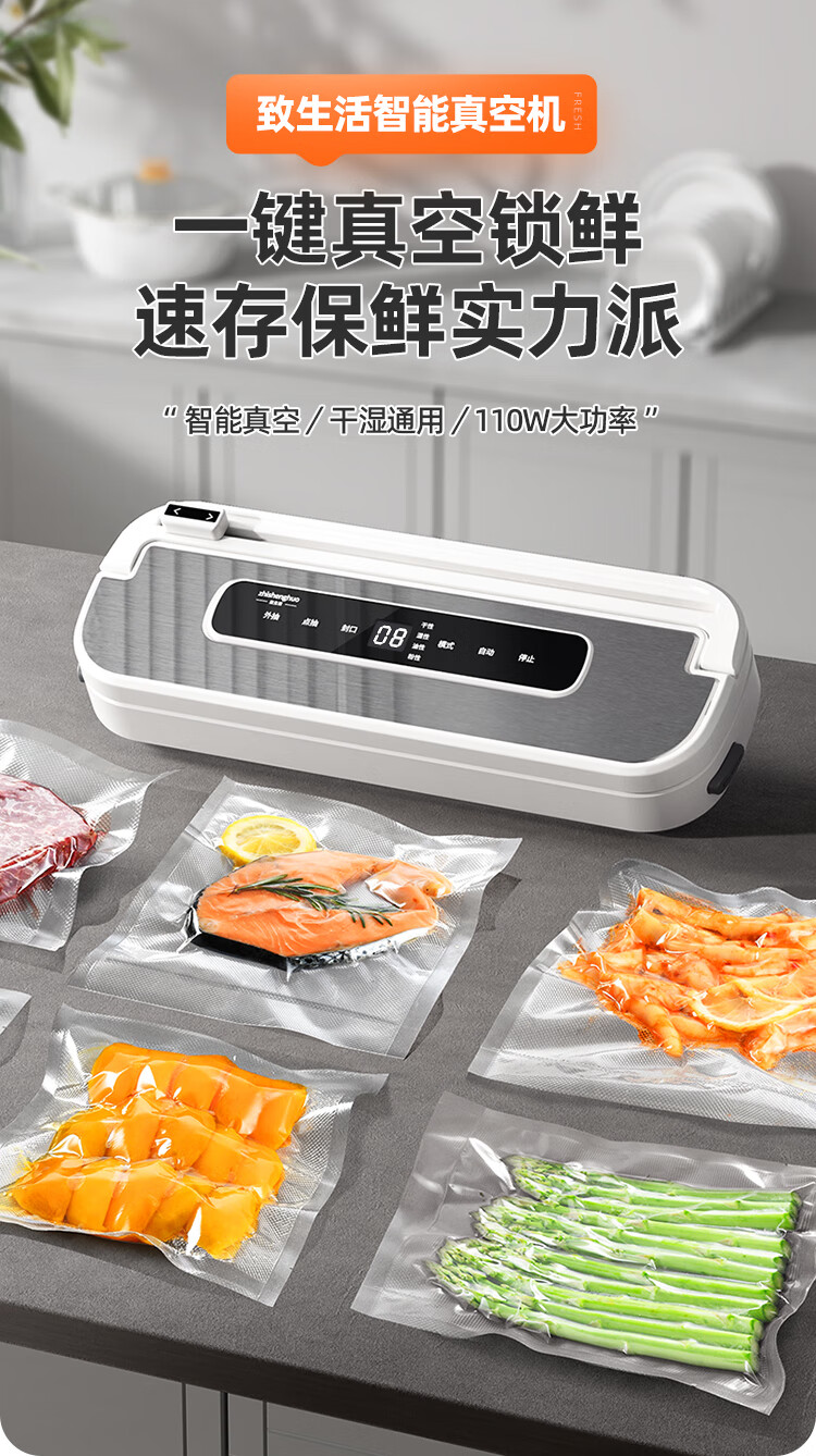 To Life Vacuum Sealing Machine Stainless Steel Household Plastic Sealing Machine Commercial Packaging Machine Double Pump Large Suction Food Preservation Plastic Sealing Machine Fully Automatic Fresh Preservation Artifact Stainless Steel Panel + Double Pump Suction Charming Night Black