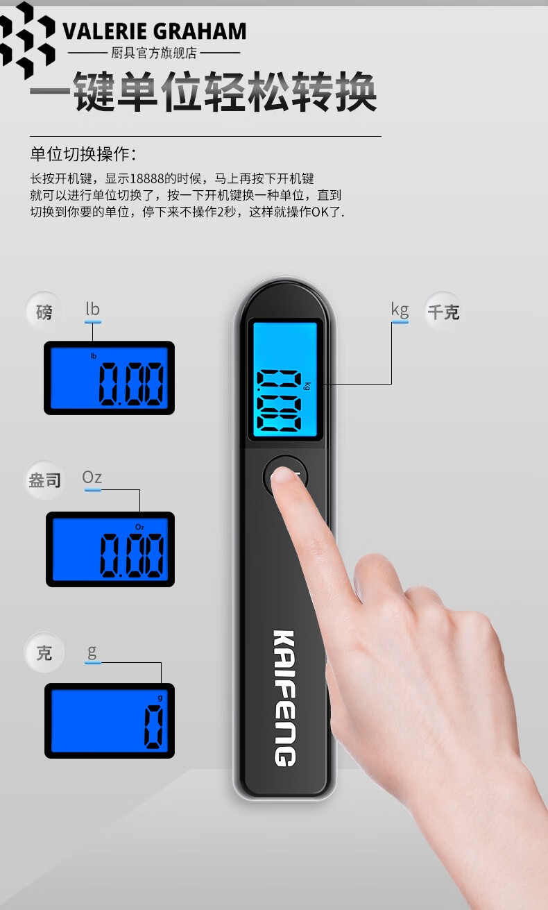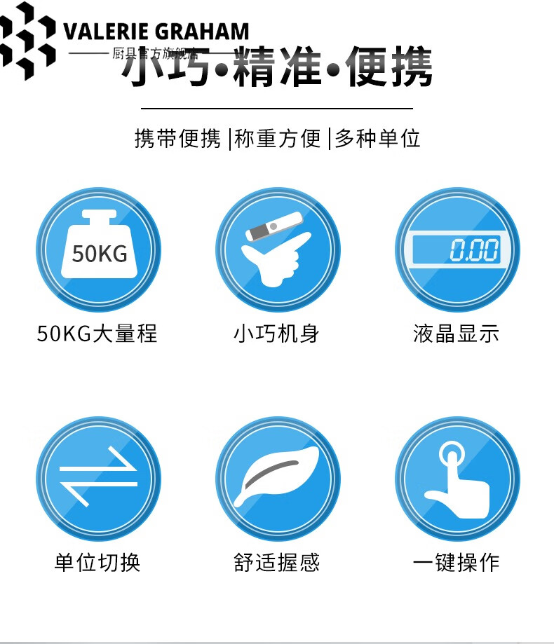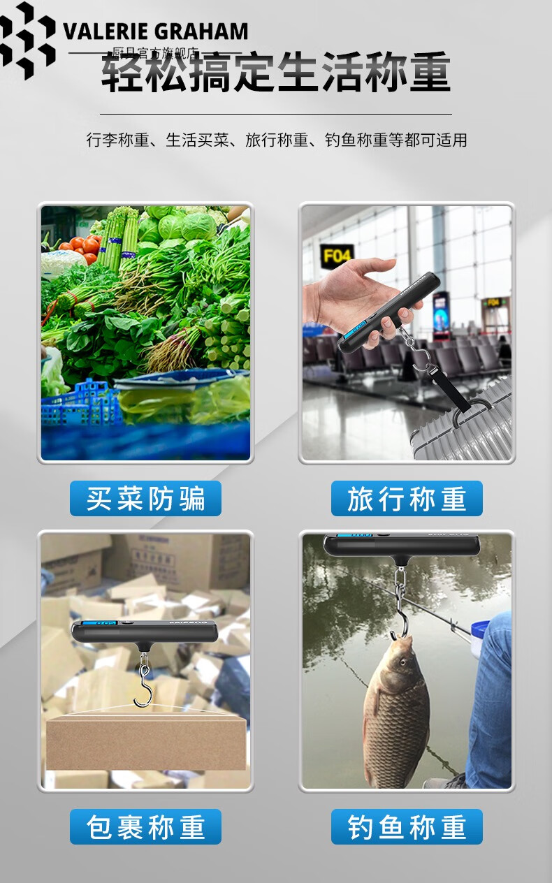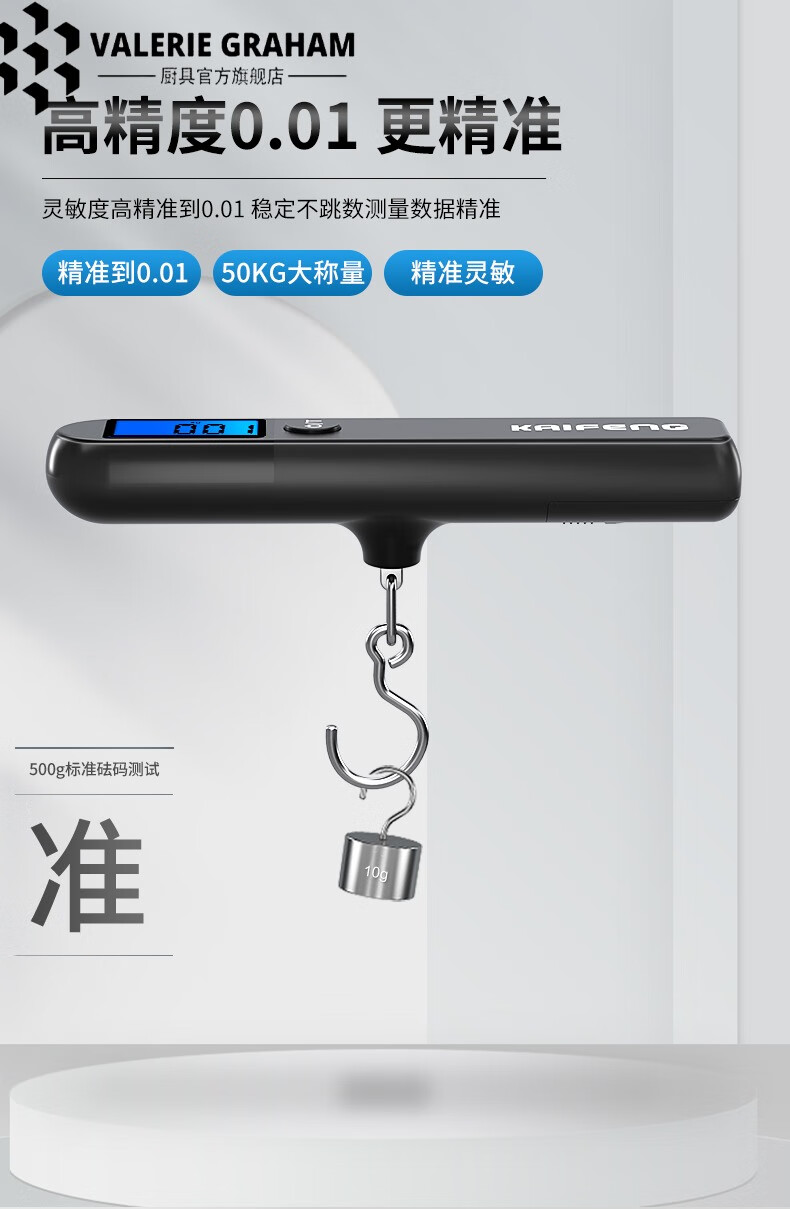 VALERIE GRAHAM Japan imported quality luggage scale portable electronic scale mini household small portable high-precision hand weighing scale classic black 50kg
