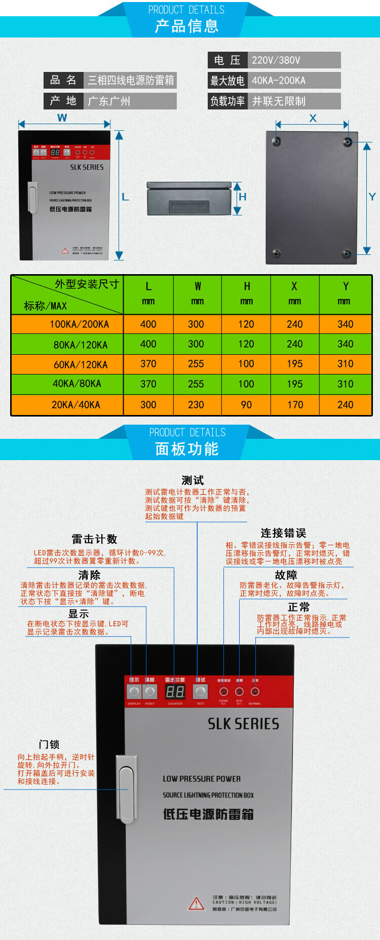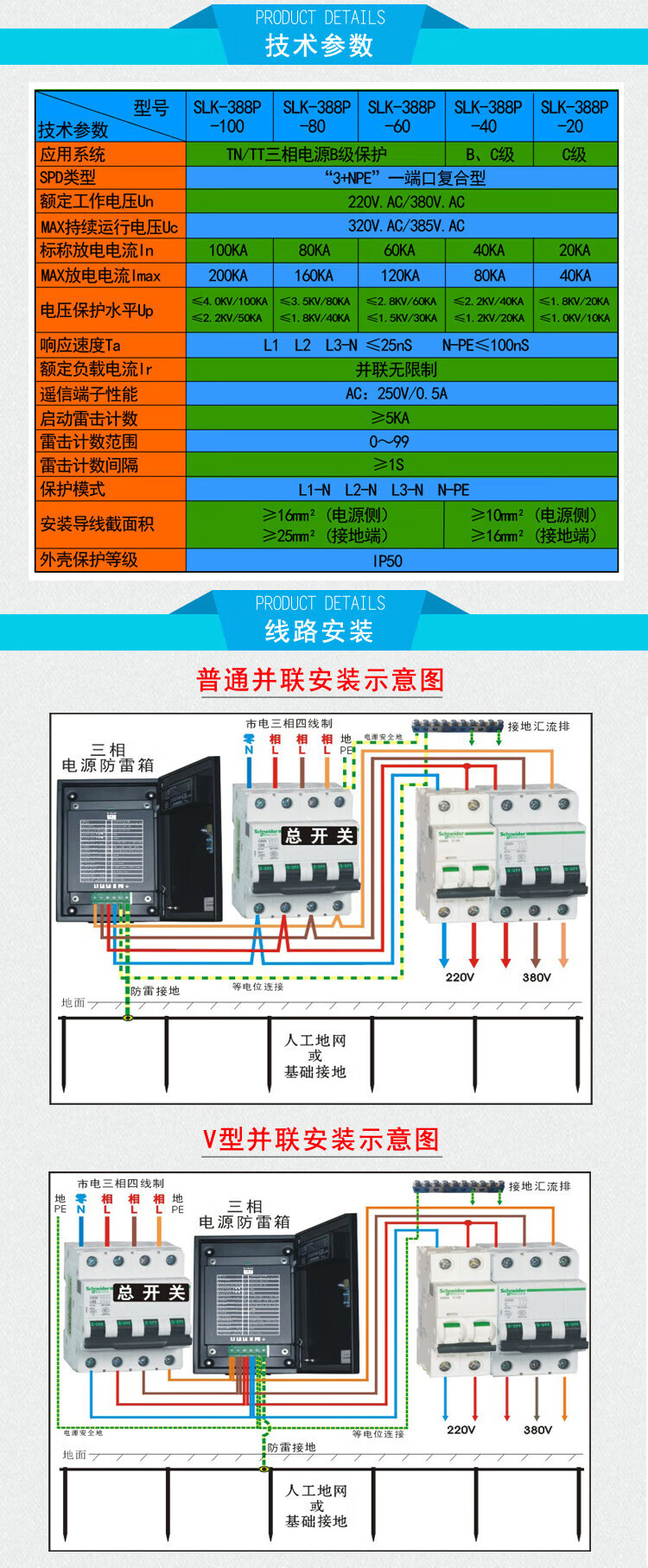 Tianzhi power supply lightning protection box three-phase 380V lightning arrester elevator machine room low-voltage lightning arrester surge protector first-level SPD three-phase 20/40KA three-phase 20