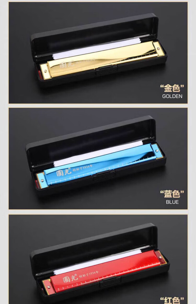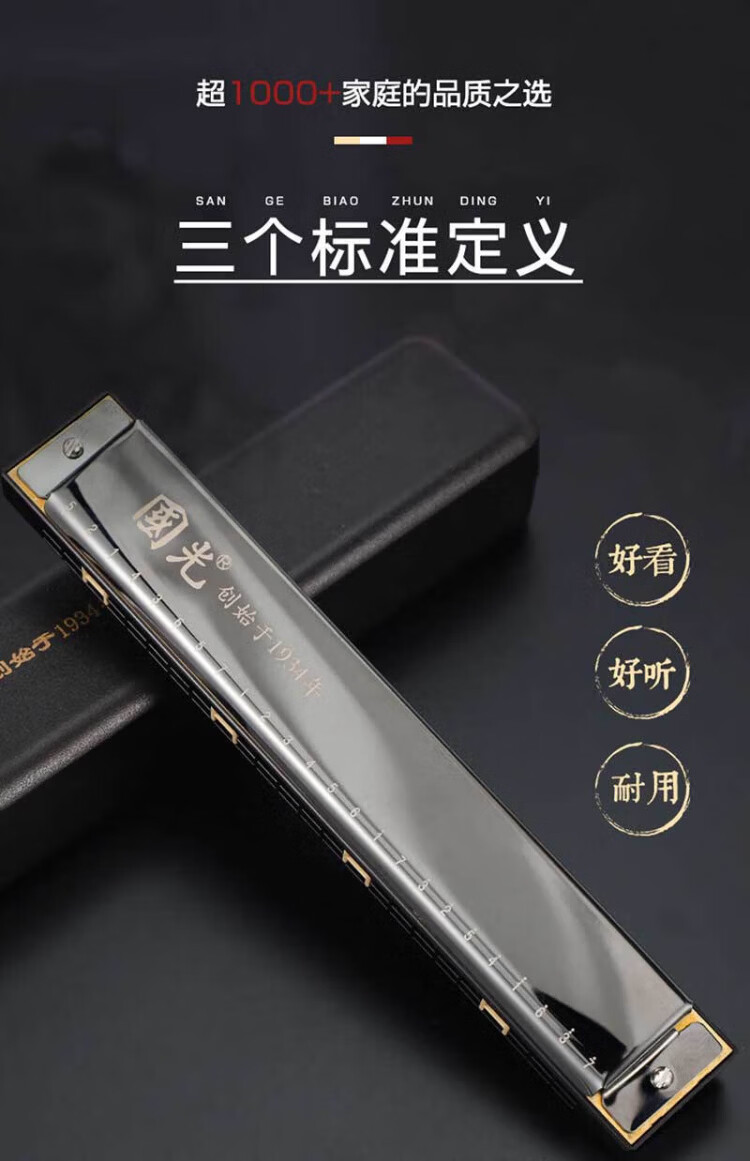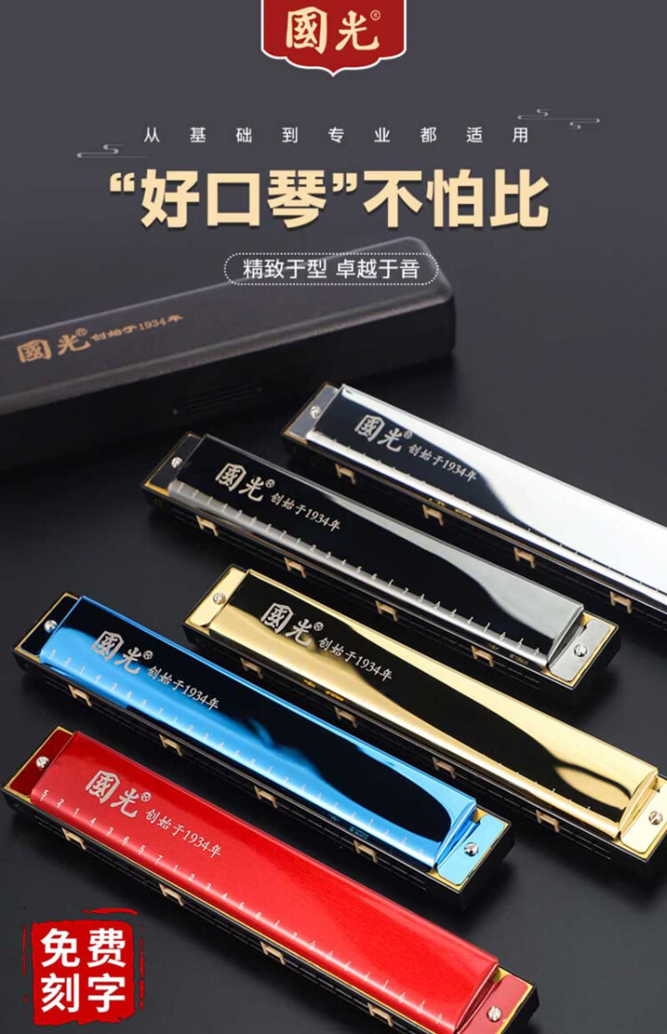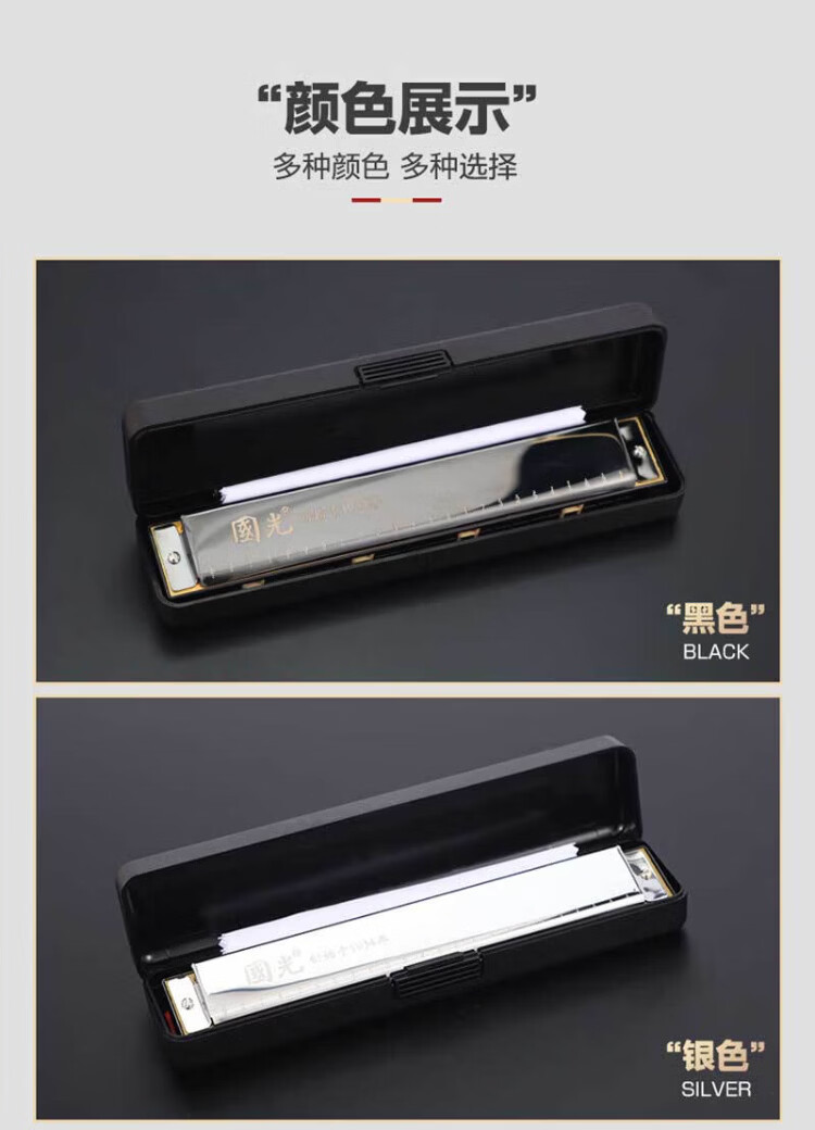Guoguang 24-hole commemorative model polyphonic C key harmonica for beginners students 28-hole entry-level self-taught accented harmonica wind instrument 24-hole C key polyphonic silver beginner model