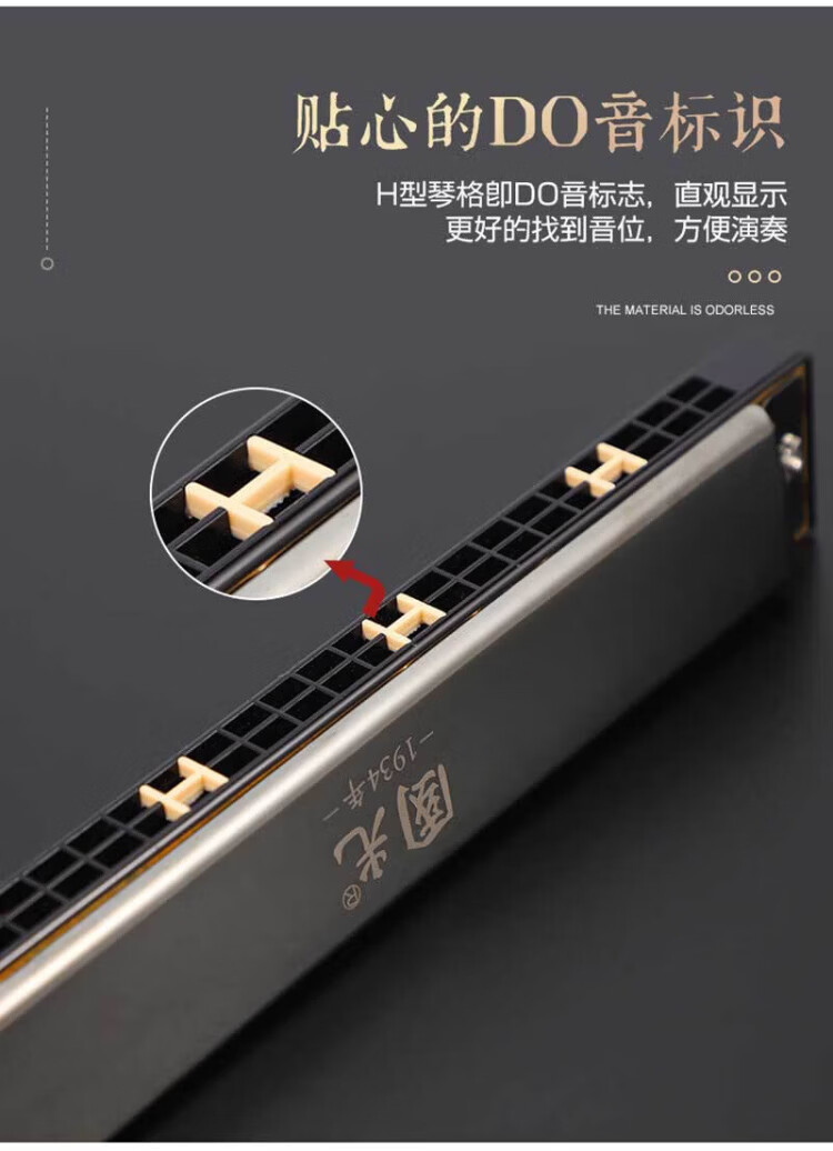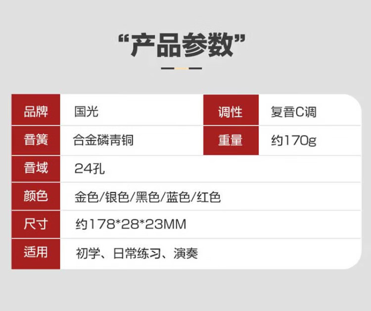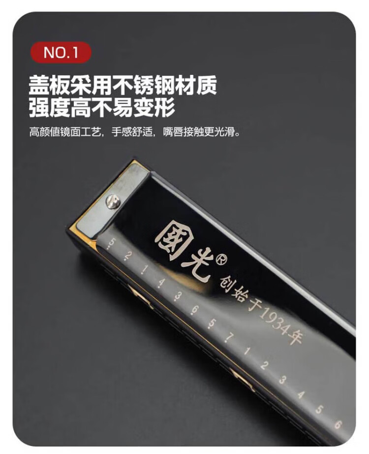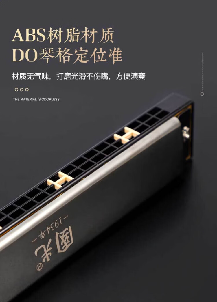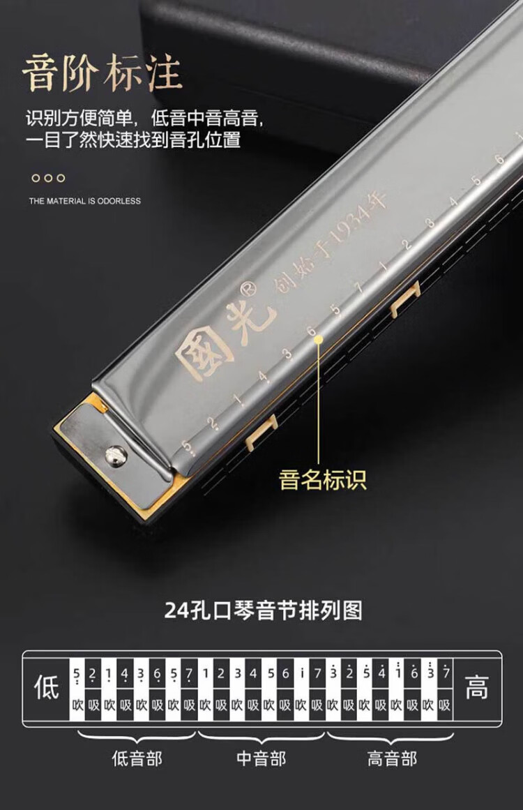 Guoguang 24-hole commemorative model polyphonic C key harmonica for beginners students 28-hole entry-level self-taught accented harmonica wind instrument 24-hole C key polyphonic silver beginner model