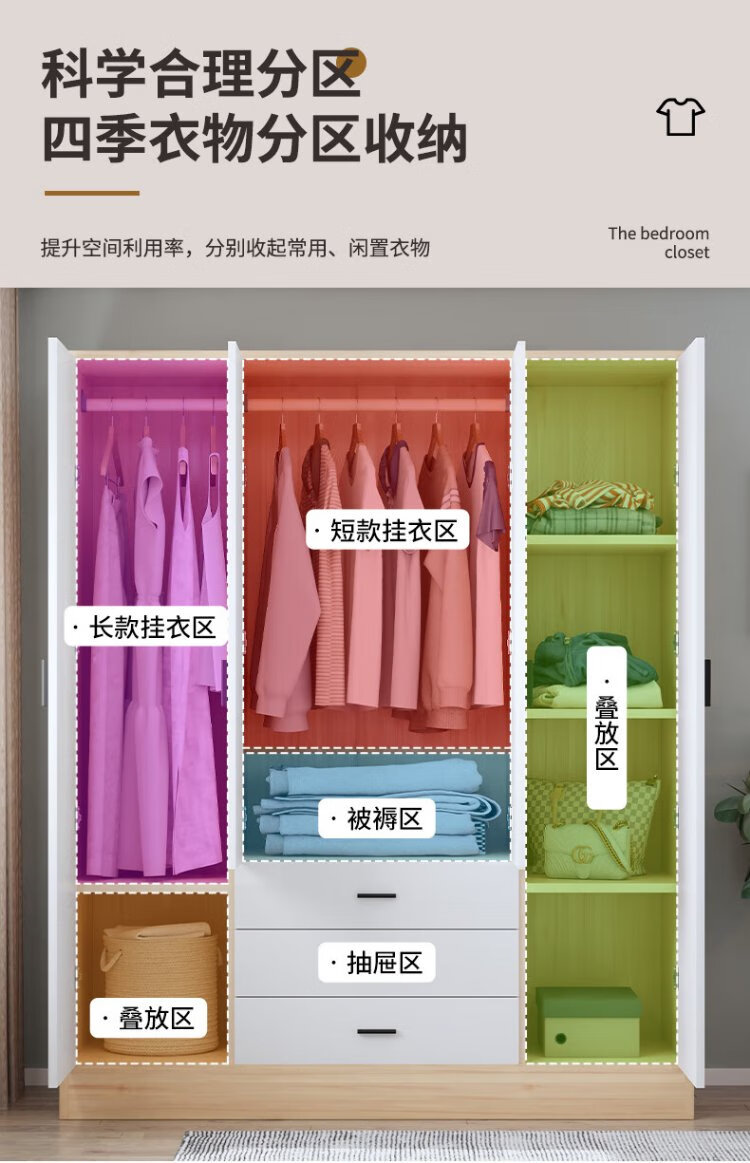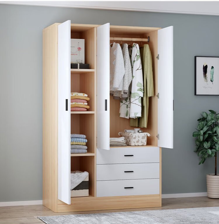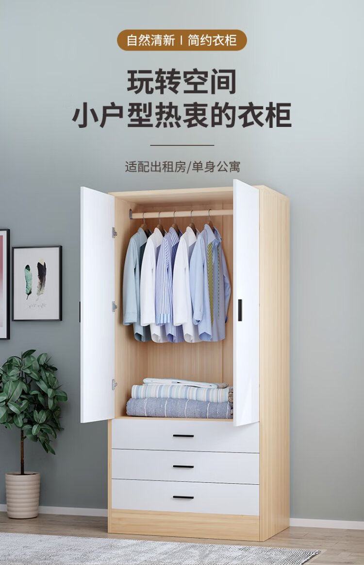Yibaolin Wardrobe Home Bedroom Flip Door Simple Wardrobe Rental Room Modern Simple Wardrobe Storage Storage Cabinet Large Wardrobe Log Style 100cm Three Doors Delivered to Your Door