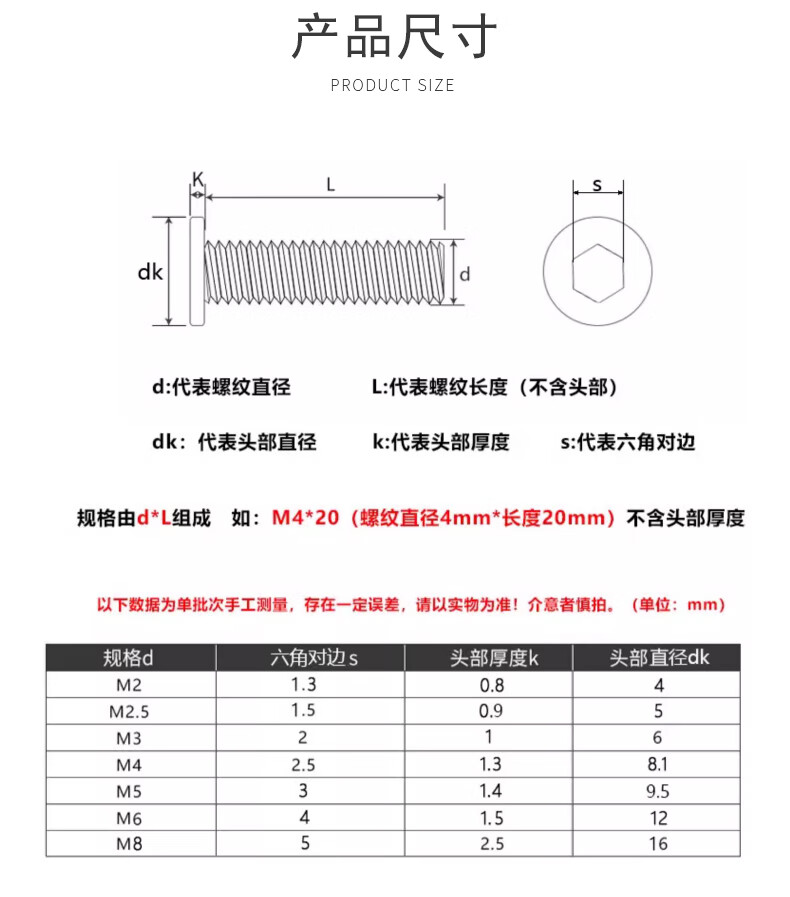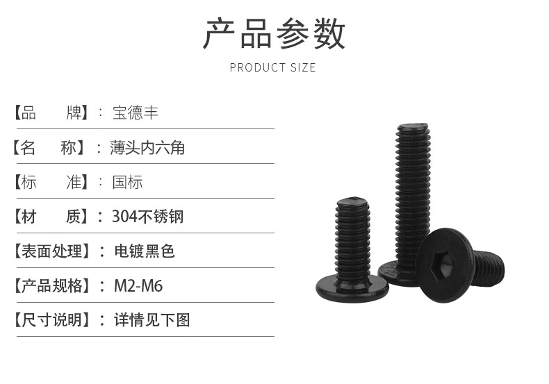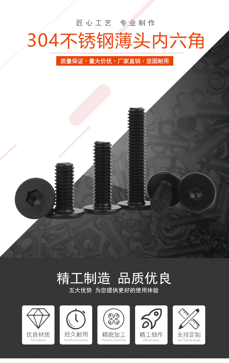 Baodefeng black 304 stainless steel CM ultra-thin head large flat head hexagon socket screws countersunk head flat head bolts national standard 304 natural color M4x30 (20 pieces)