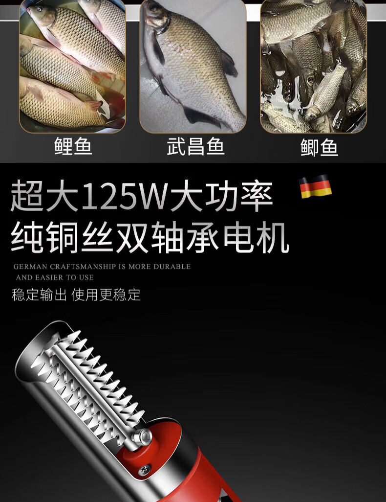 Jingyan German quality electric fish scaler, fully automatic fish scale removal machine, fish killing and scale scraping artifact, luxury model, 2 batteries, all kinds of fish can be scraped
