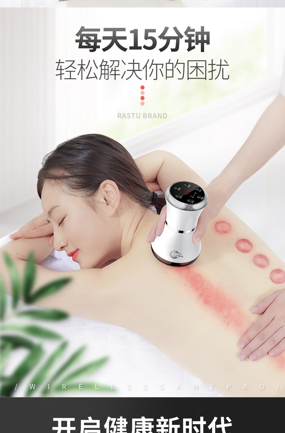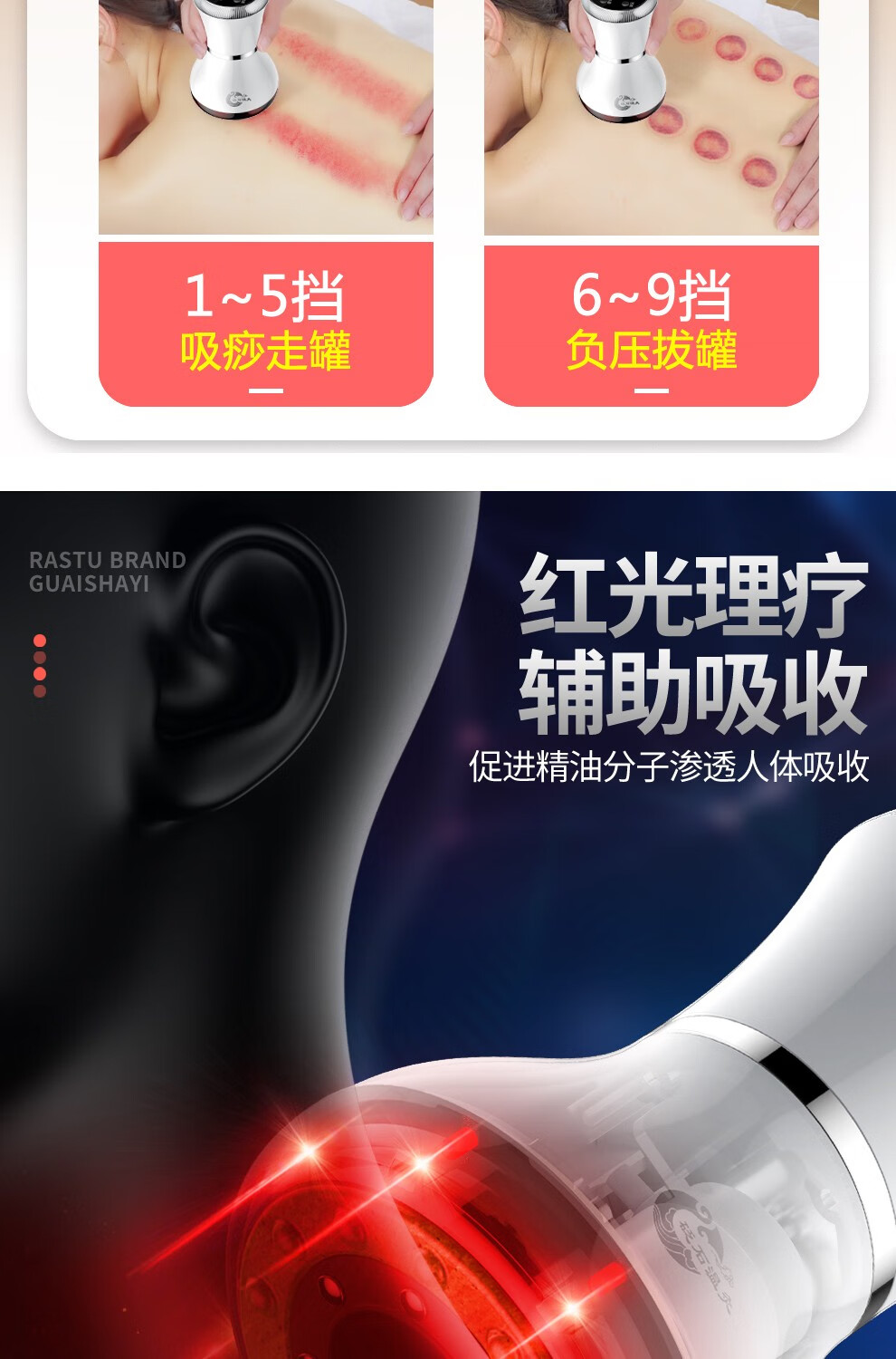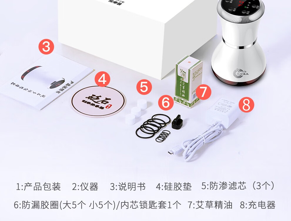 Fuxin scraping instrument, electric massager, vibrating cupping machine, household scraping and detoxification artifact, negative pressure cupping instrument, meridian dredging instrument, whole-body universal gift for parents and the elderly, moxibustion scraping and cupping device (rechargeable black Bianstone model) with 5 bottles of essential oil + muscle and bone stickers