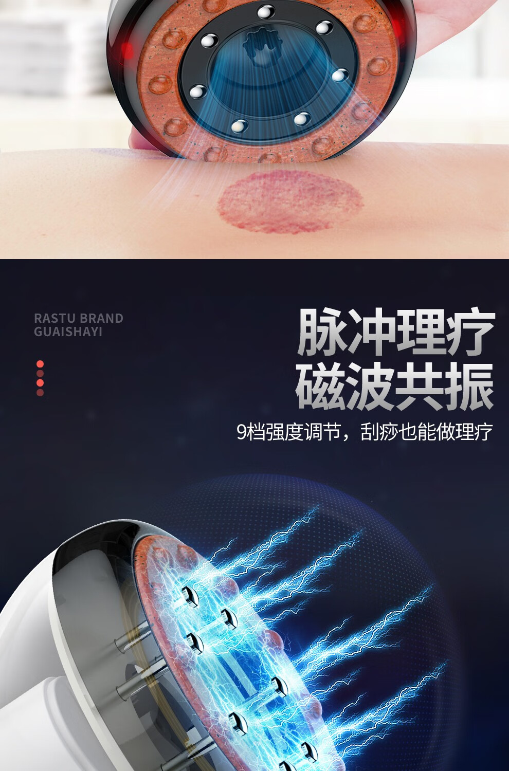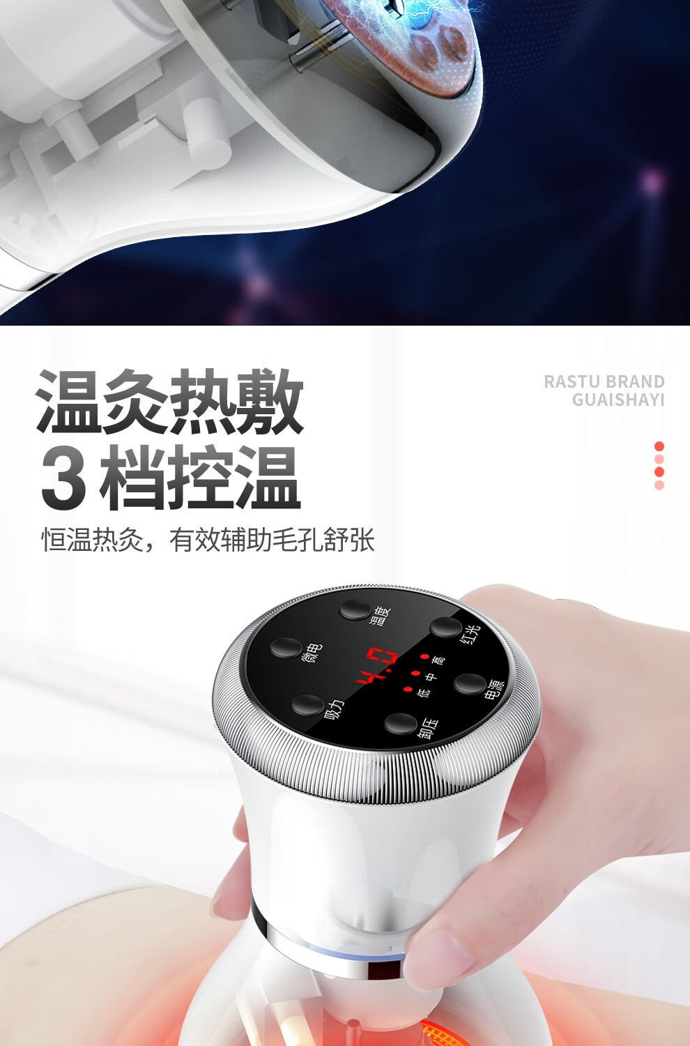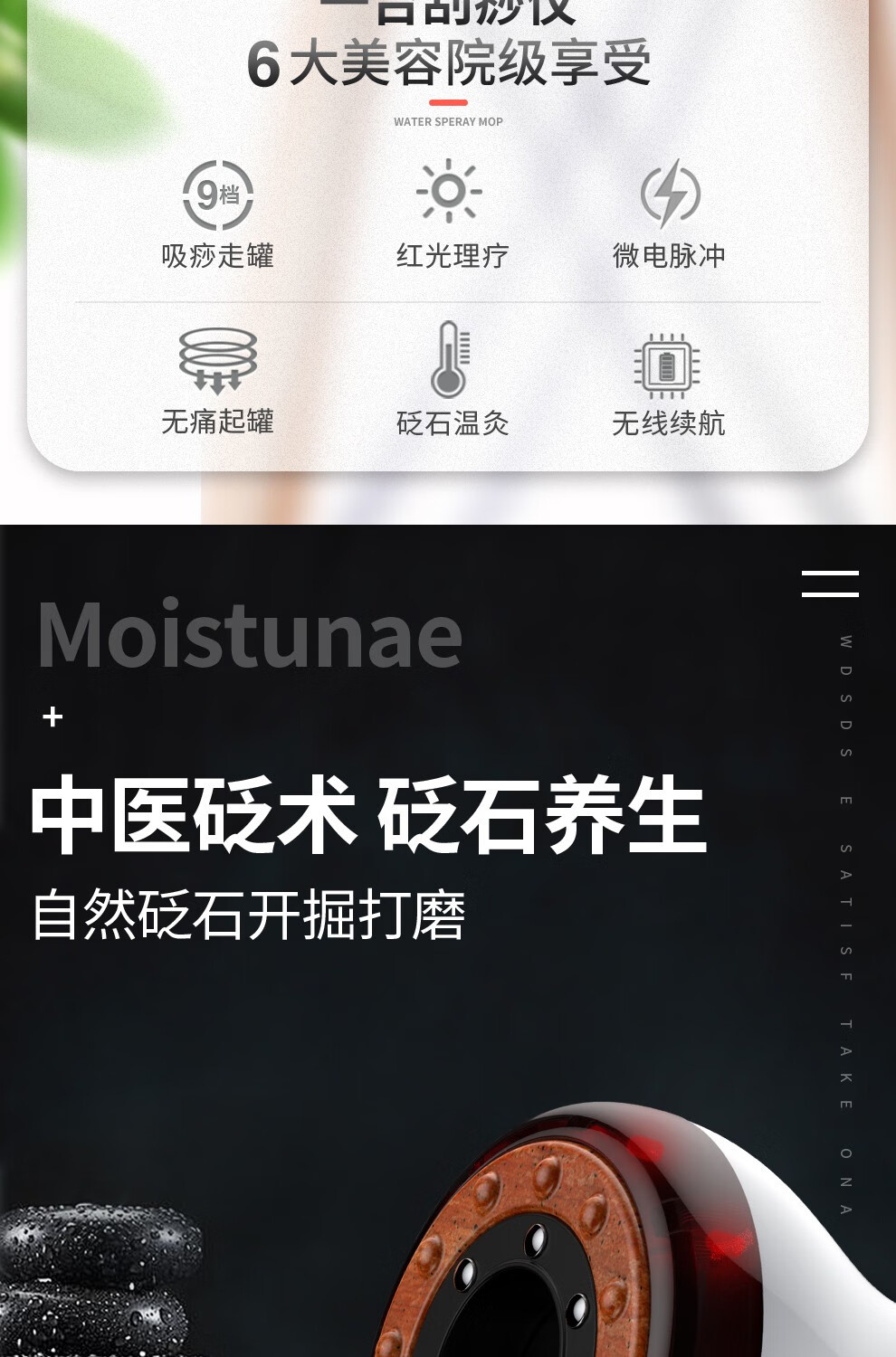 Fuxin scraping instrument, electric massager, vibrating cupping machine, household scraping and detoxification artifact, negative pressure cupping instrument, meridian dredging instrument, whole-body universal gift for parents and the elderly, moxibustion scraping and cupping device (rechargeable black Bianstone model) with 5 bottles of essential oil + muscle and bone stickers