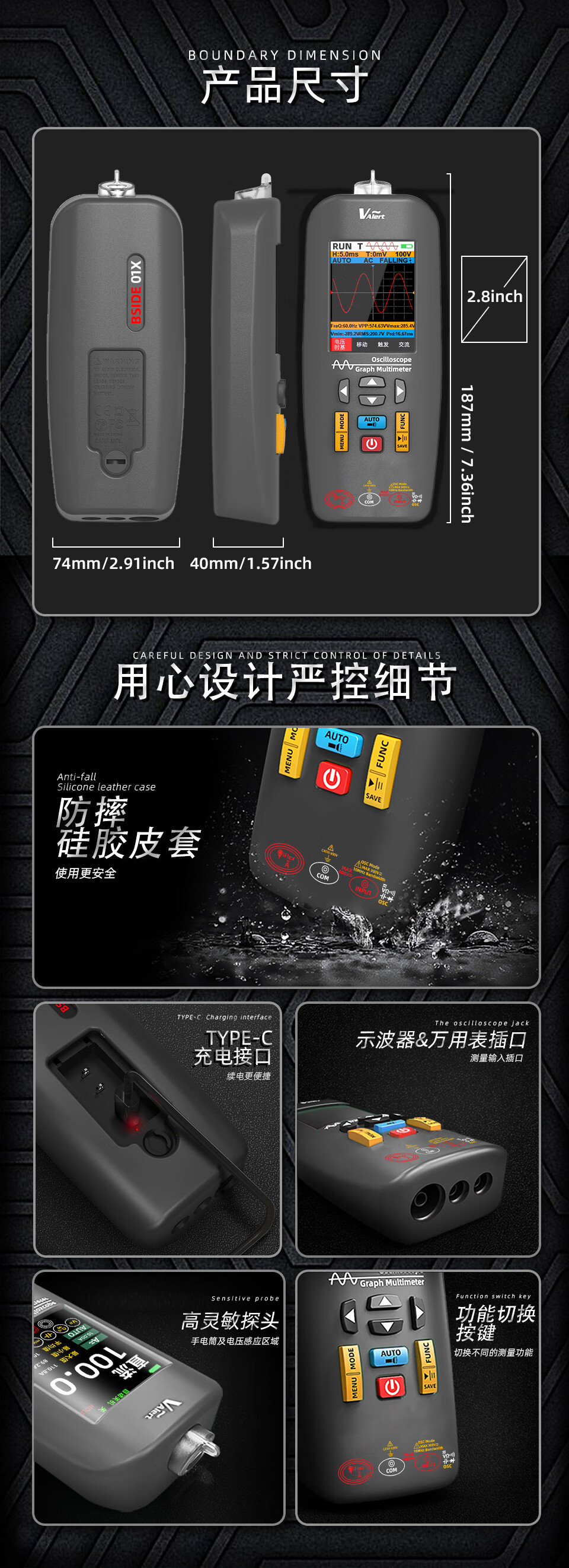 BSIDE O1X graphic oscilloscope multimeter handheld small function signal output oscilloscope 10MHz broadband O1X graphic oscilloscope multimeter three-in-one