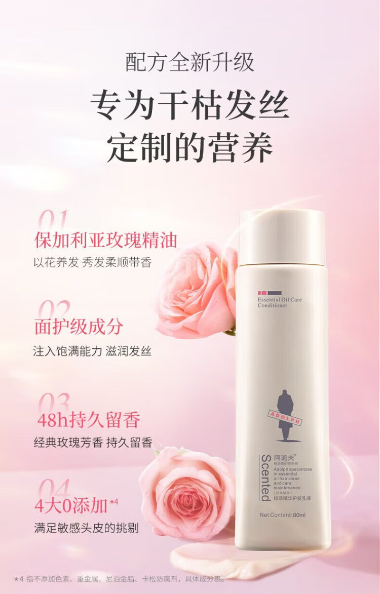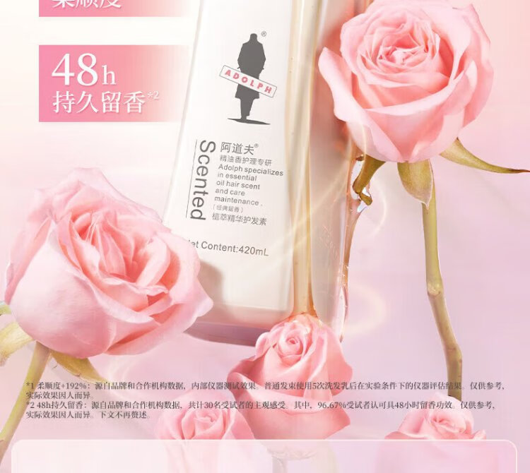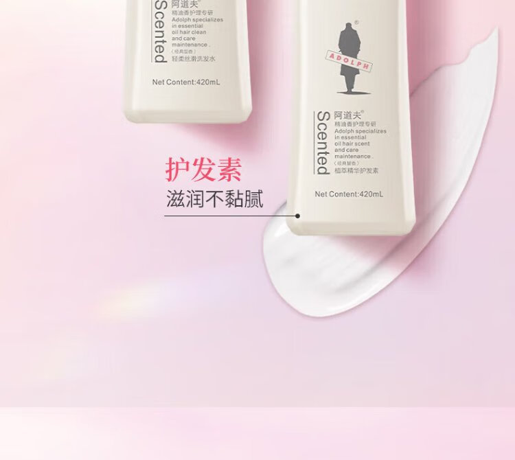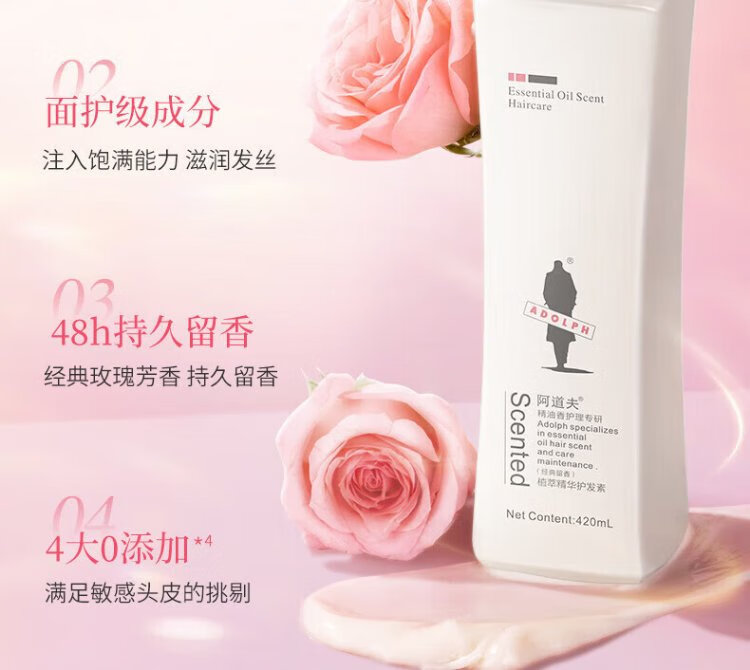 ADOLPH Rose Fragrance Essential Oil Conditioner Essence Repairing and Smoothing Conditioner Travel Pack Dry and Frizzy Hair Mask Plant Extract Repairing Conditioner 420ml*1 bottle