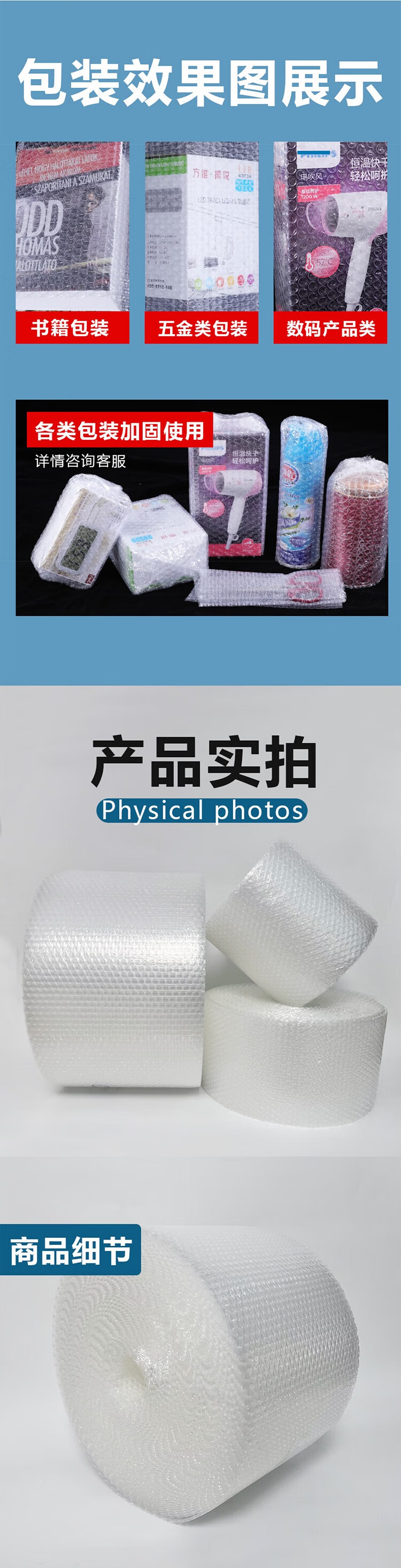Bubble film large roll moving foam paper bubble shockproof film anti-collision film 100cm 80 60cm bubble pad plastic express packaging moving foam paper double layer thickened 50cm wide 100 meters long 5 pounds