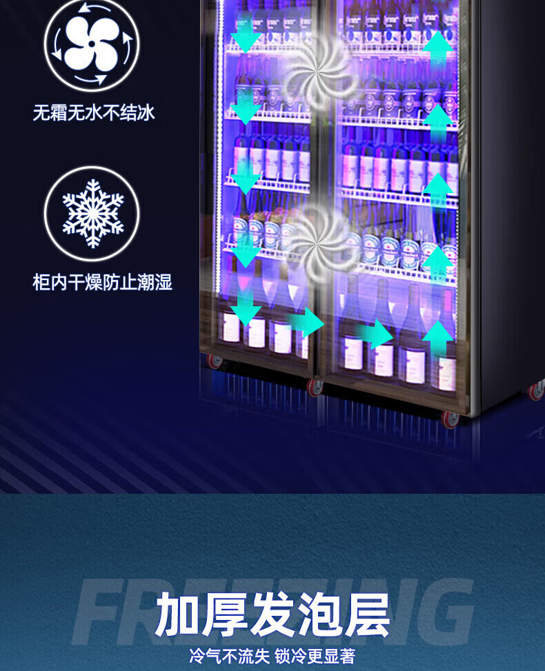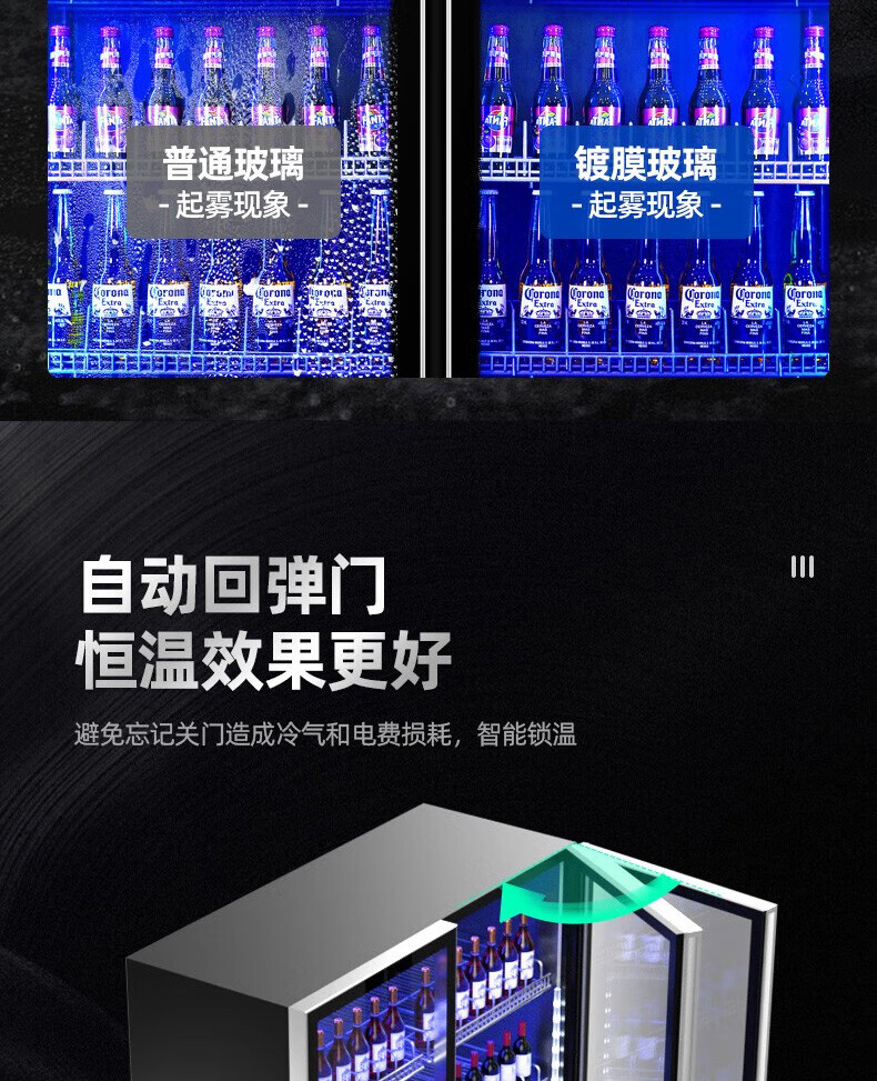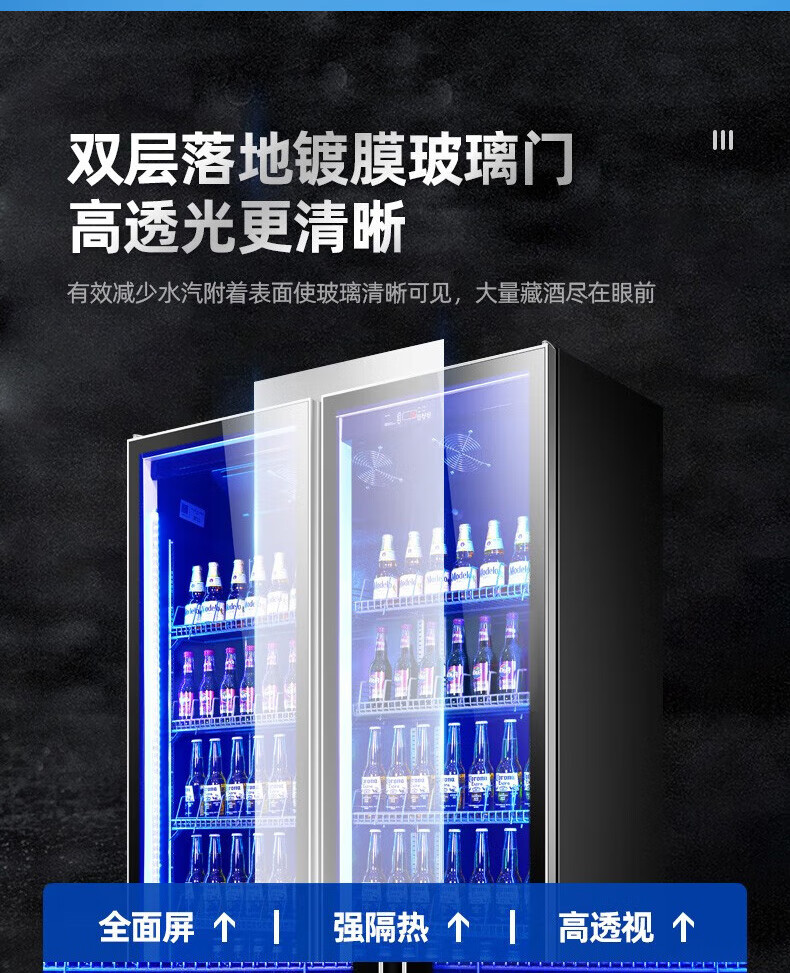 HLAOXUE Haoxue Internet celebrity commercial beer cabinet display cabinet air-cooled frost-free full-screen cabinet bar refrigerator KTV freezer wine and beverage display cabinet supermarket refrigerated fresh cabinet single door black (735*600*2030 height) Internet celebrity wine cabinet energy-saving and economical model