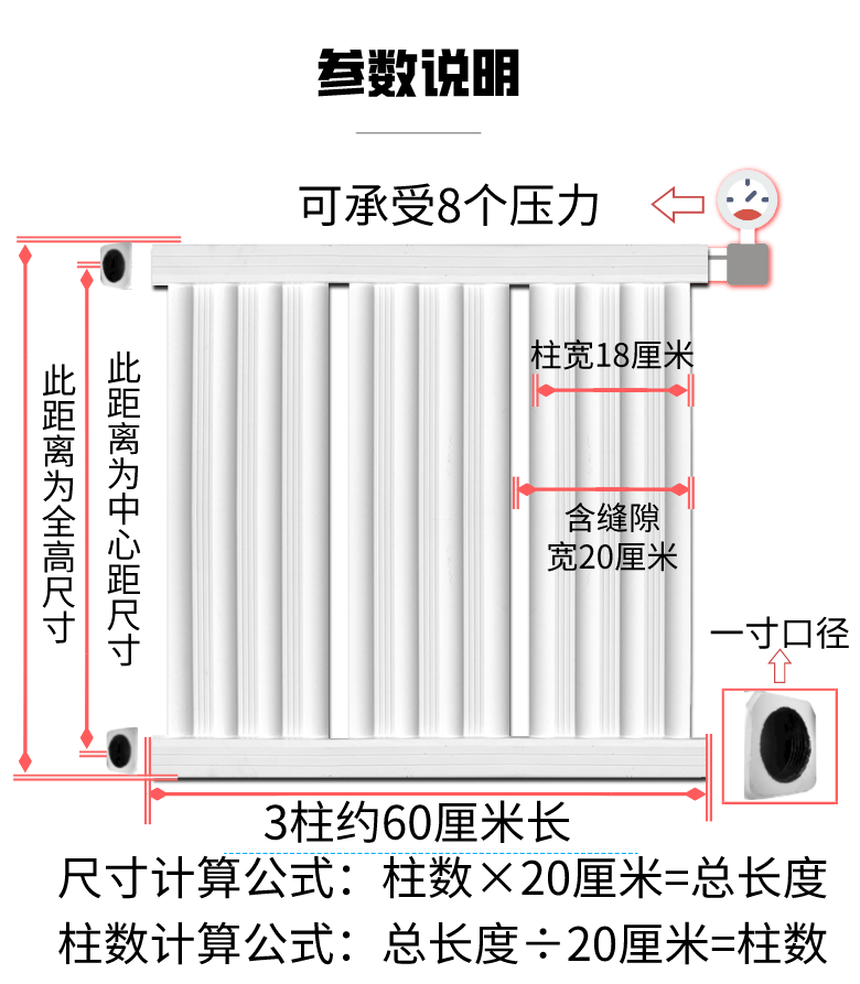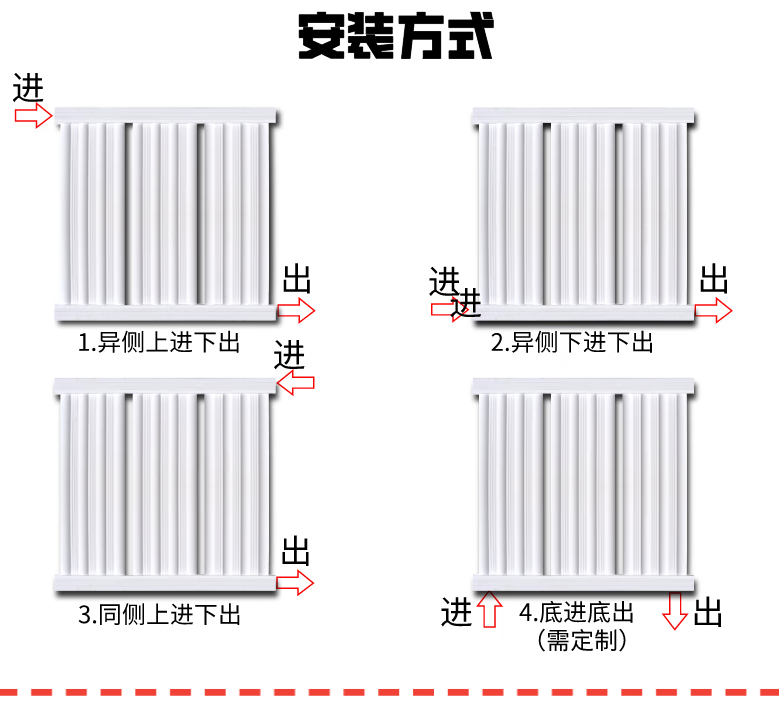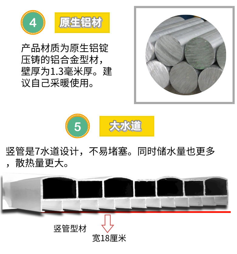 Aijijia 400 high aluminum alloy radiator household water heating radiator private house bungalow rural boiler self-heating wall-mounted height 400mm*4 columns one inch diameter one inch diameter