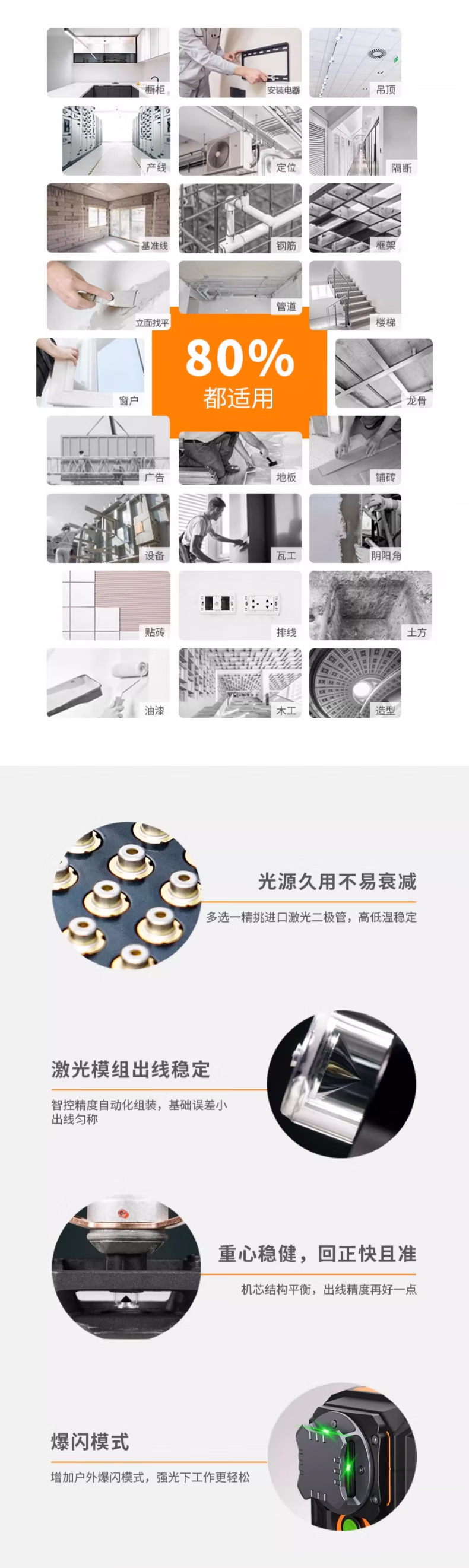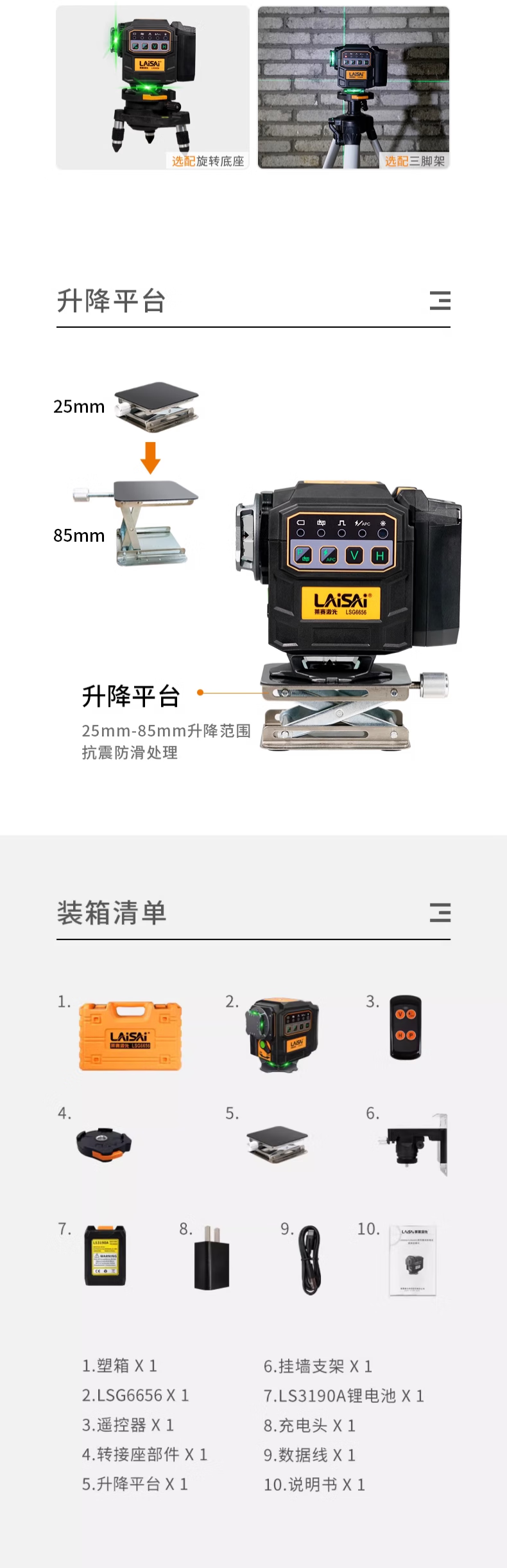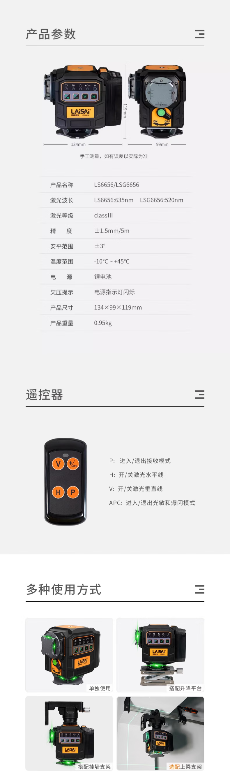 Laser laser level 6656 laser high-brightness wall-mounted and floor-mounted instrument 80 mW 200 mW high-power light source LSG6656 high-bright green light 12 lines standard dual power