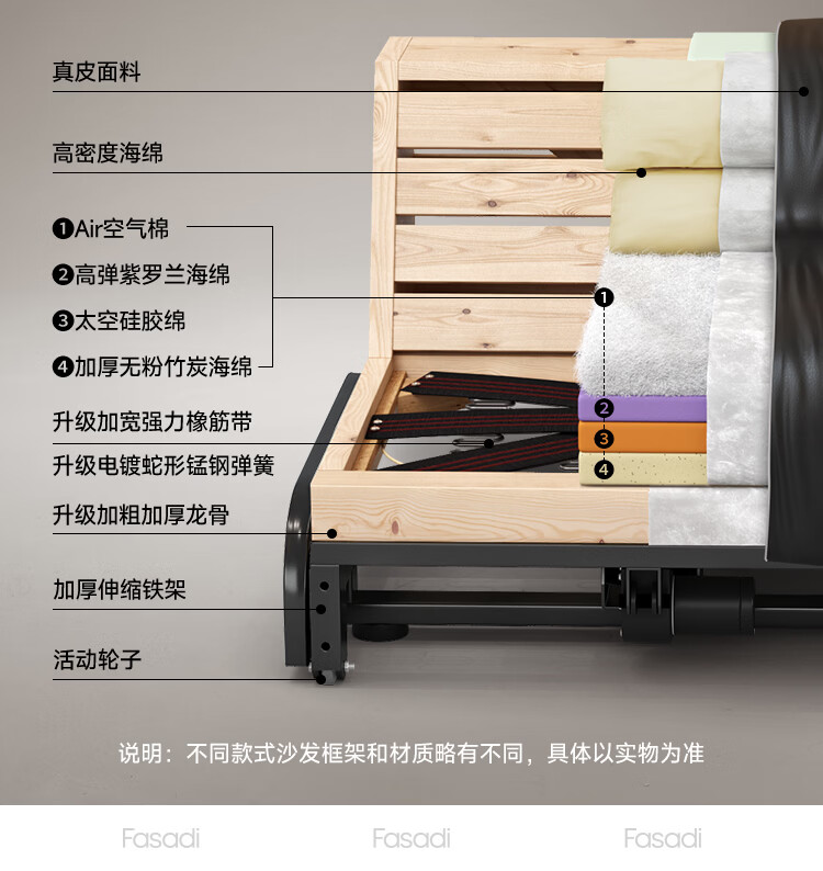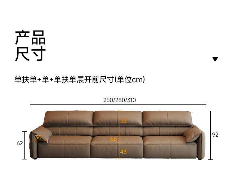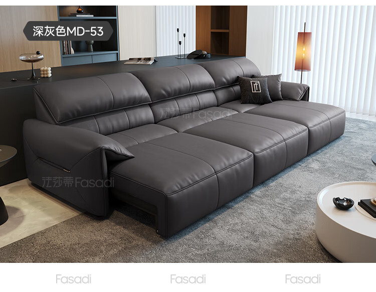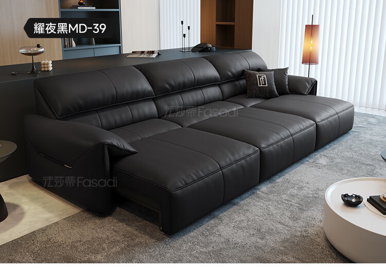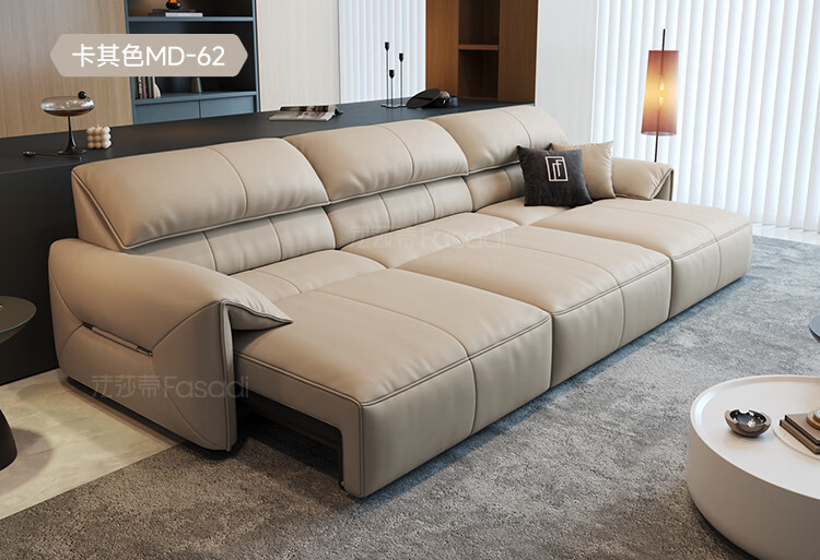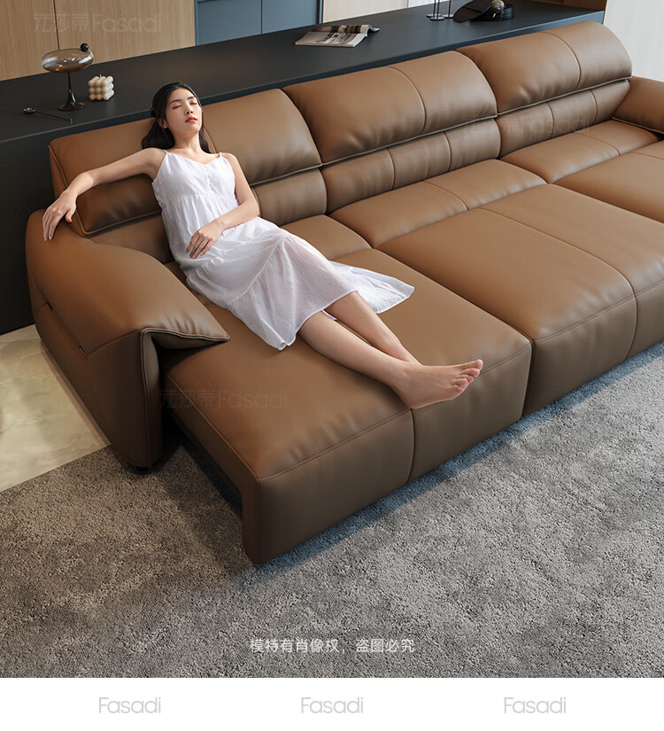 Fasati Italian Minimalist Elephant Ear Electric Functional Sofa Zero Wall Simple Living Room First Layer Cowhide Three Electric 2.8 Meter Single Support Single + Single + Single Support Single Deluxe Edition Q Resilient Sitting 2.8mm Thickened Semi-Green First Layer Cowhide
