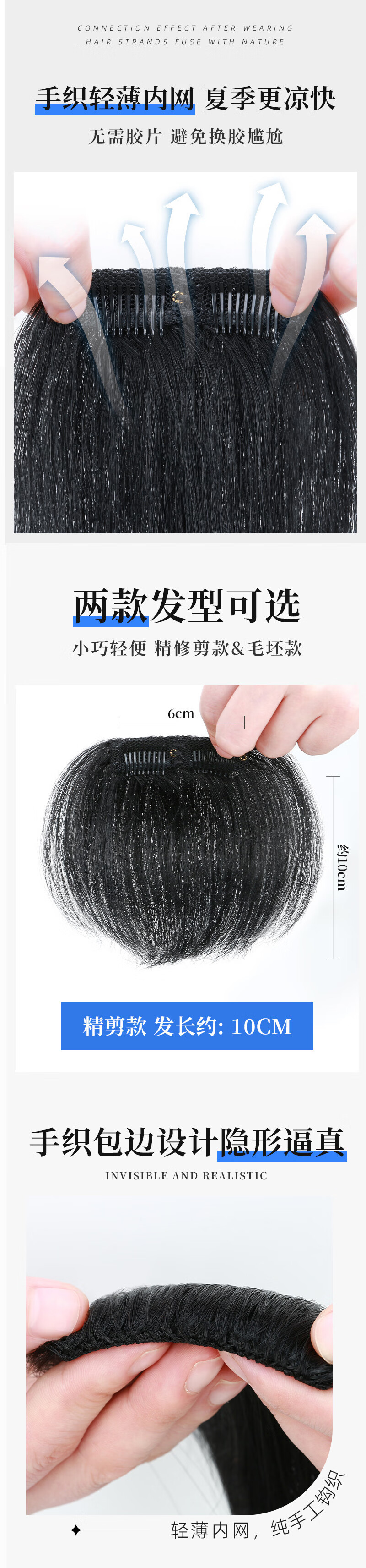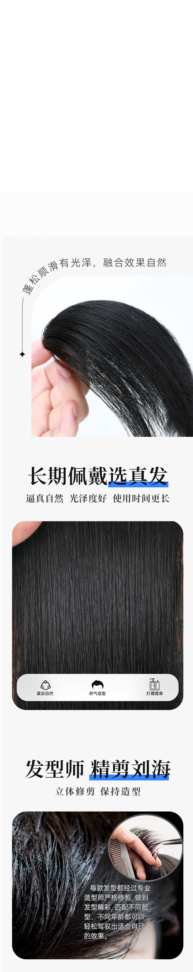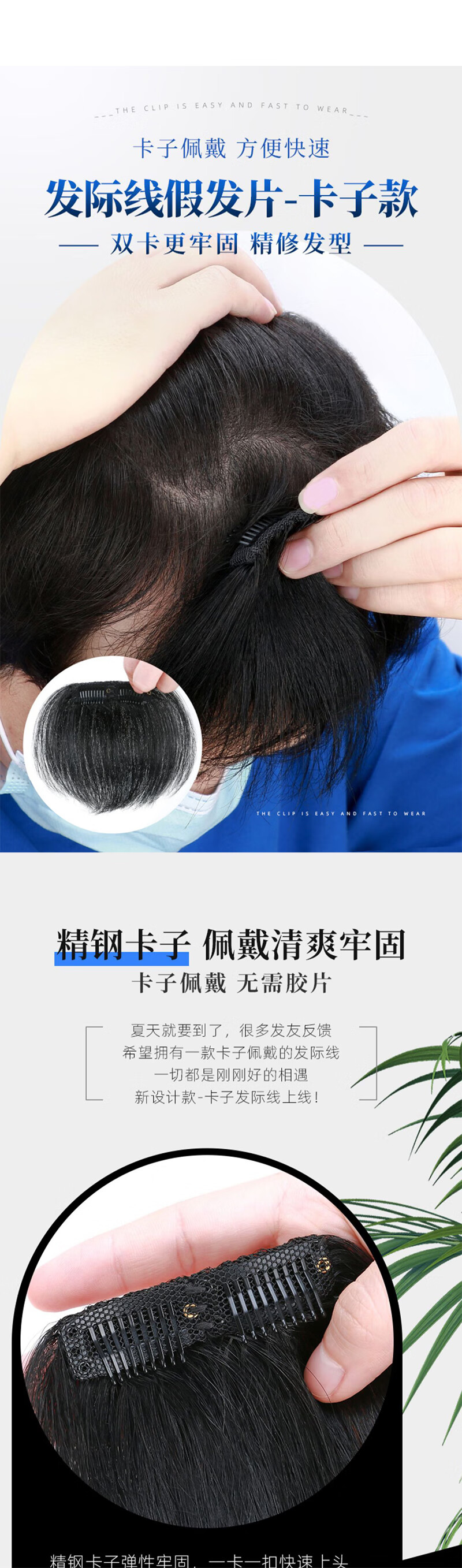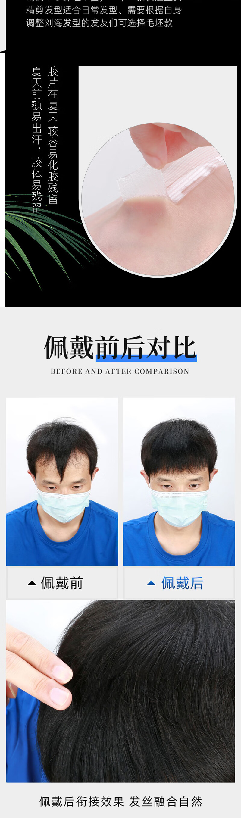 Bo Naling Men's Wig Piece Hairline Wig Sticker Bangs One-piece Clip Model Men's M-shaped Forehead Full Real Hair Hairline Hairline Refinement - Width 6cm Long 10cm