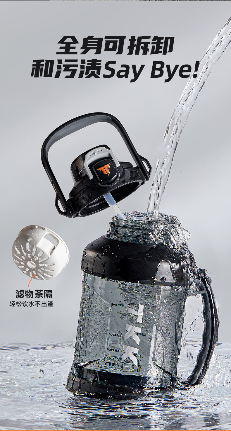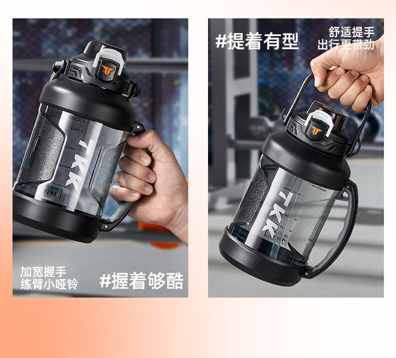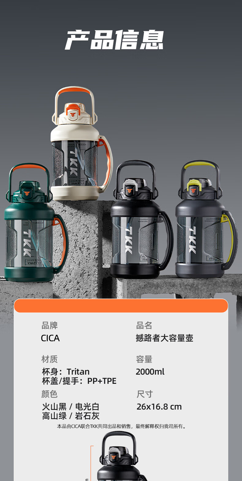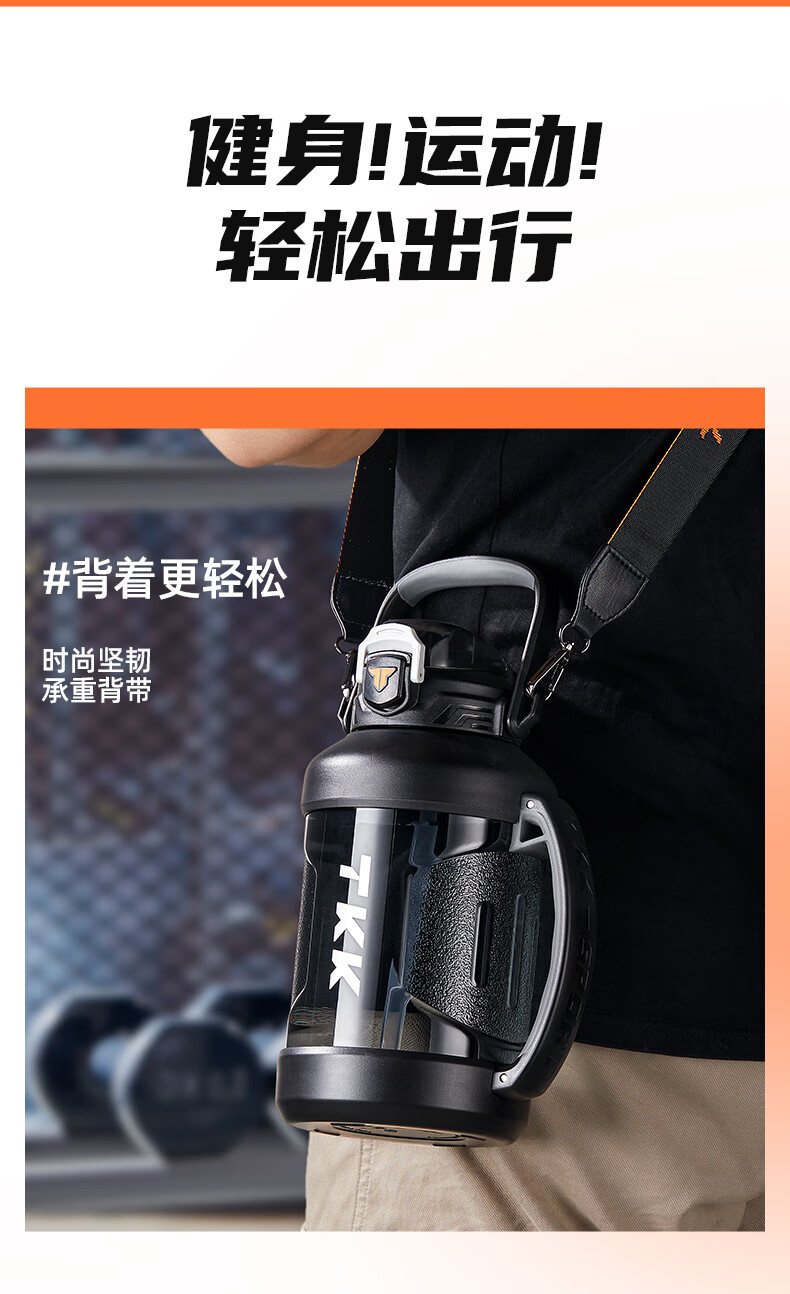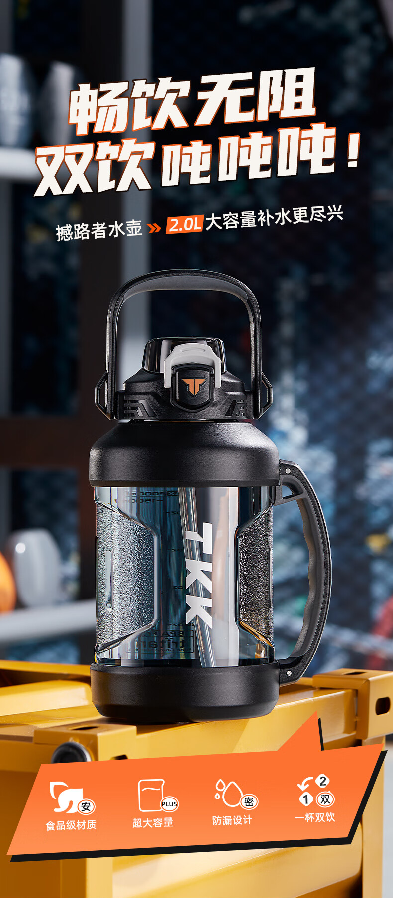 Cica ton barrel sports water bottle large capacity water cup for men and women tritan ton barrel big belly bottle high temperature resistant military training cup (straw + direct drink + strap) black 2000ml