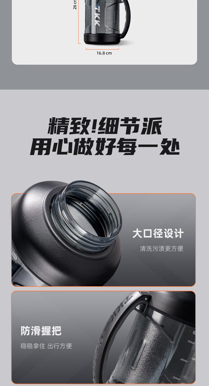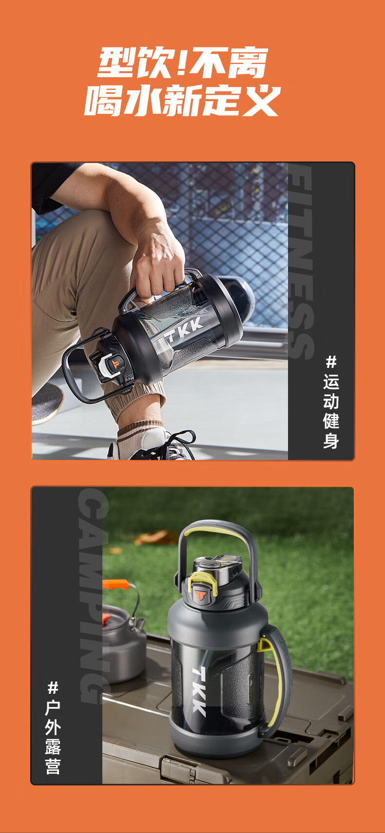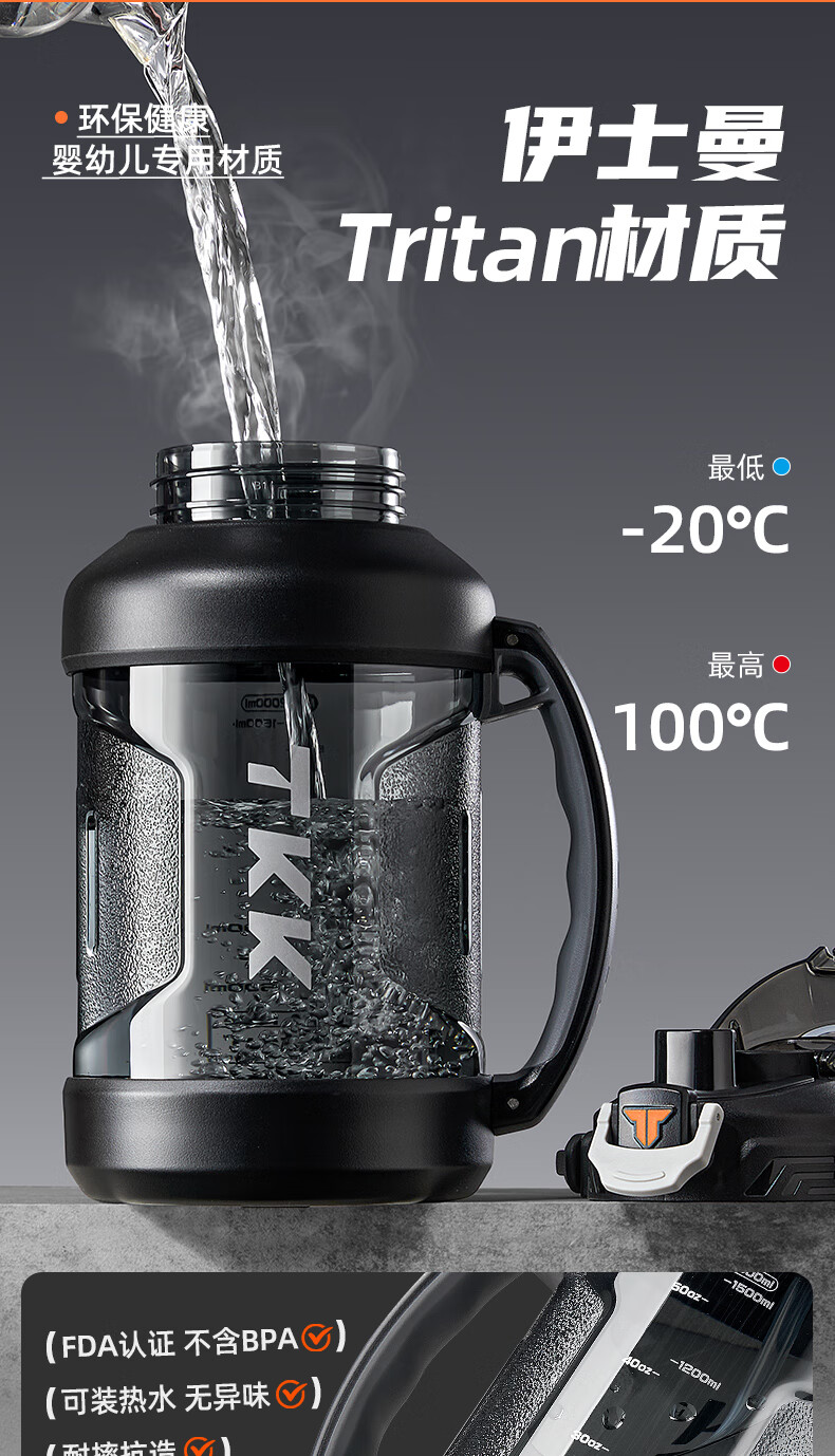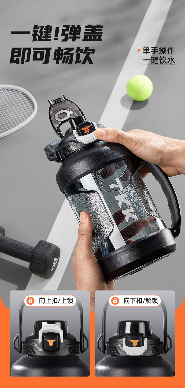 Cica ton barrel sports water bottle large capacity water cup for men and women tritan ton barrel big belly bottle high temperature resistant military training cup (straw + direct drink + strap) black 2000ml