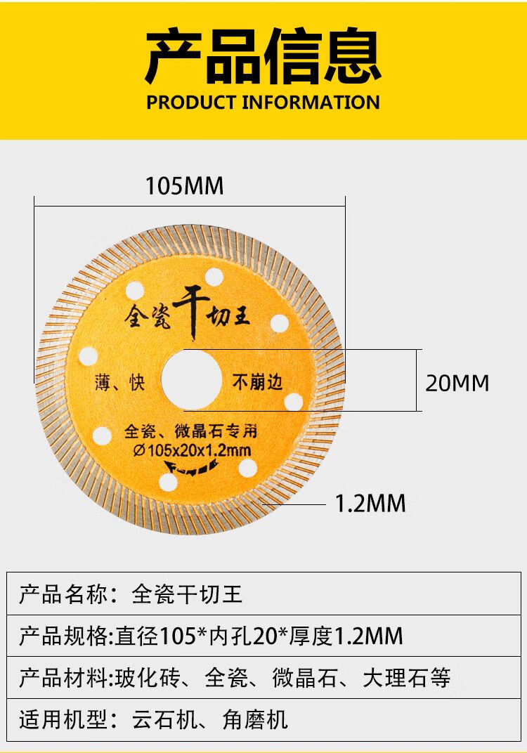 Qinkai all-ceramic dry cutting king diamond cutting sheet tile marble material ceramic floor tile angle grinder marble cutting sheet main picture