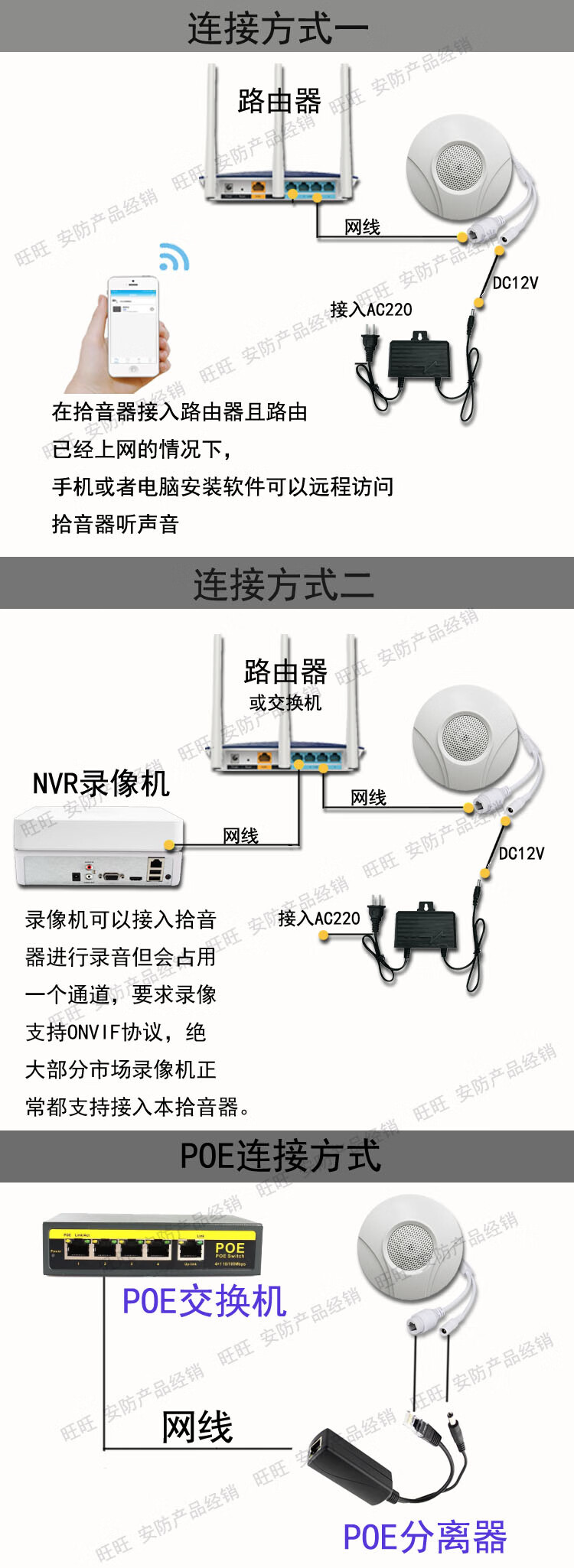 Network pickup NVR mobile computer Internet real-time listening to sound ONVIF card recording rtsp alarm