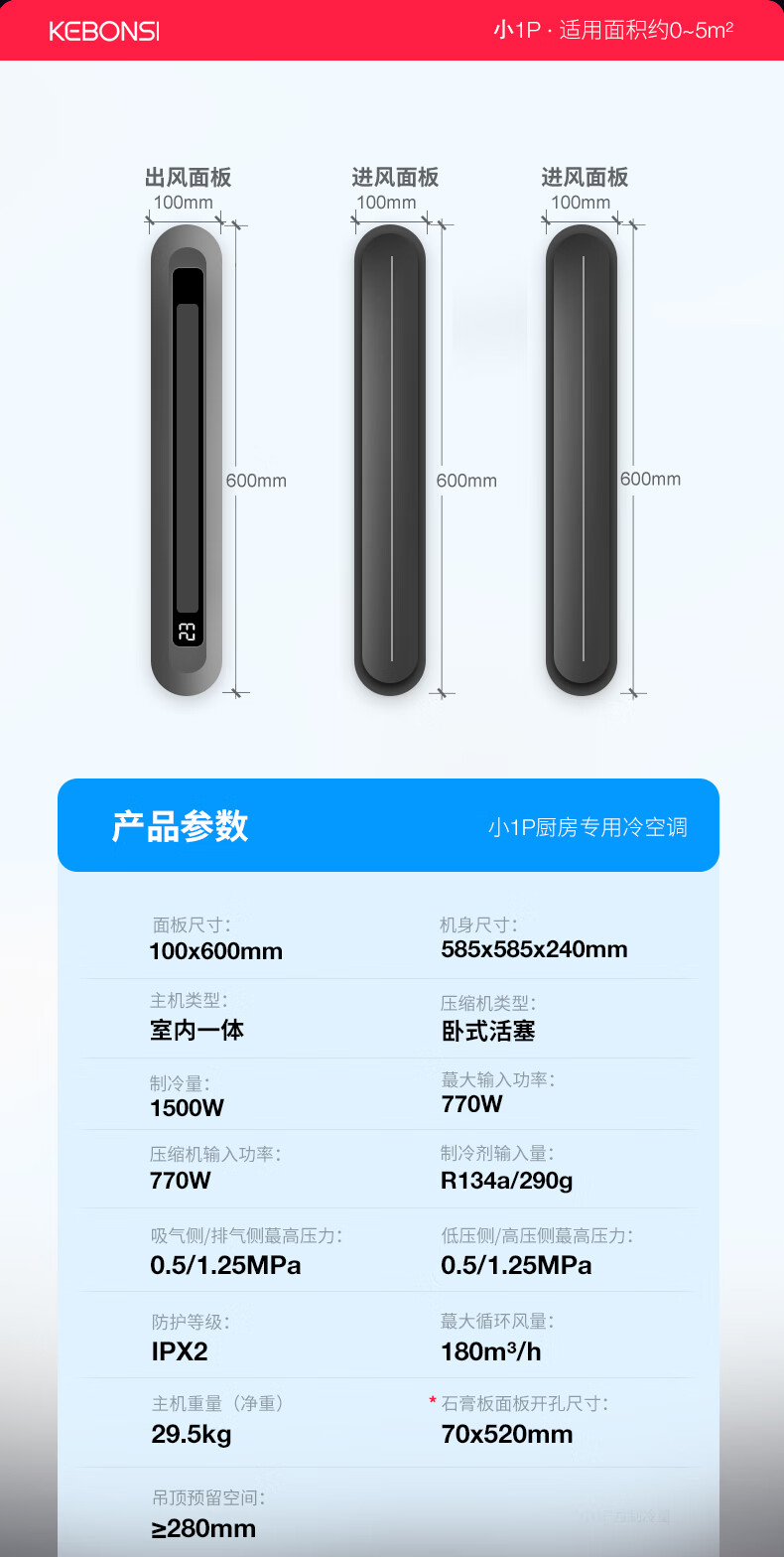 Cobangshi kitchen air conditioner linear household refrigeration fan ceiling embedded honeycomb large board ceiling Liangba kitchen air conditioner small 1 horse set Fengyun kitchen air conditioner (Haoyue White)