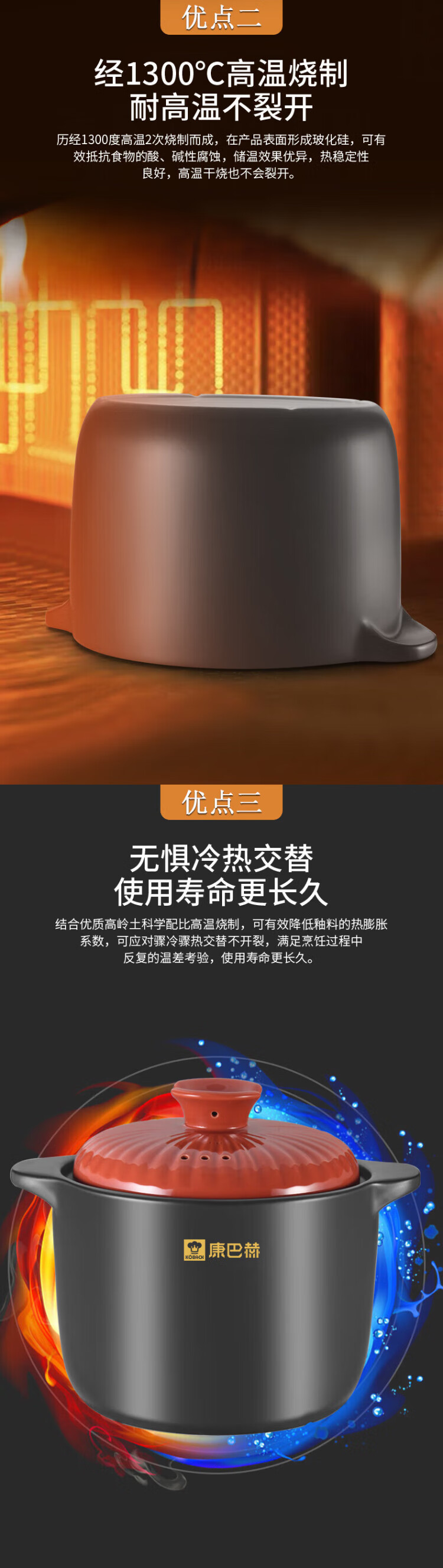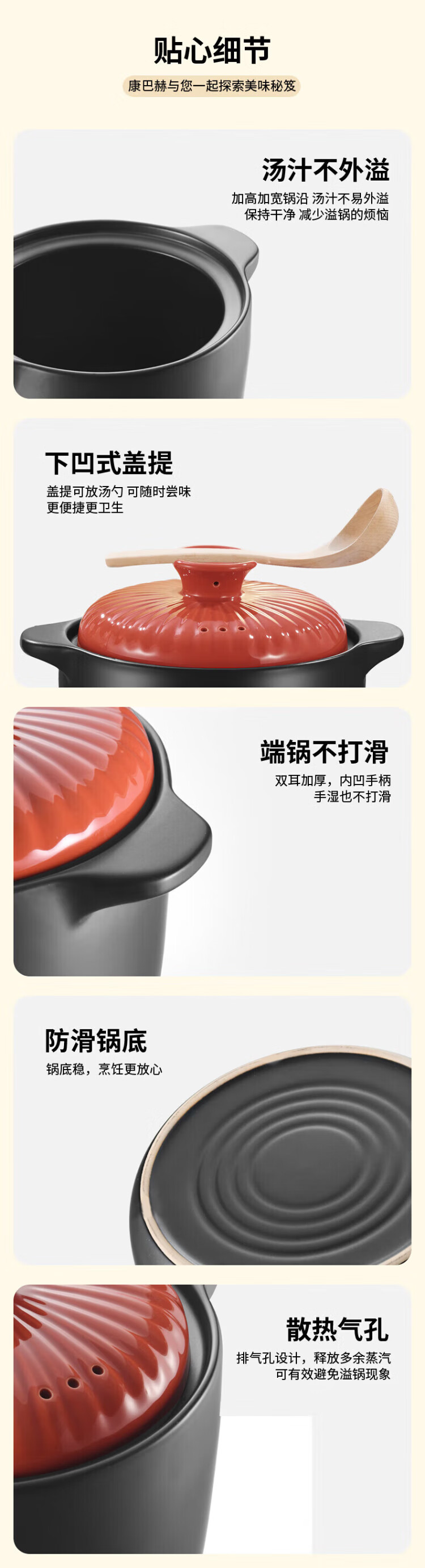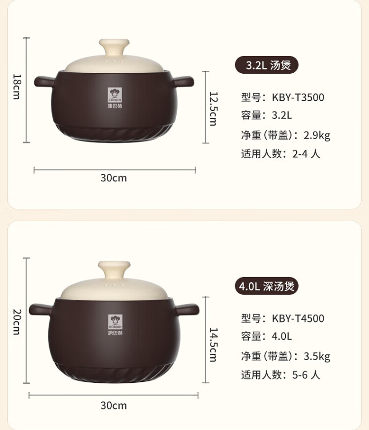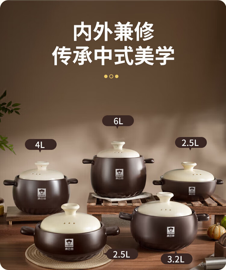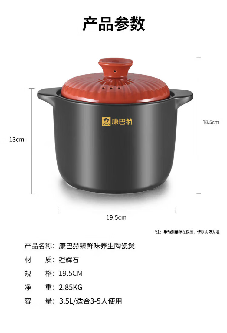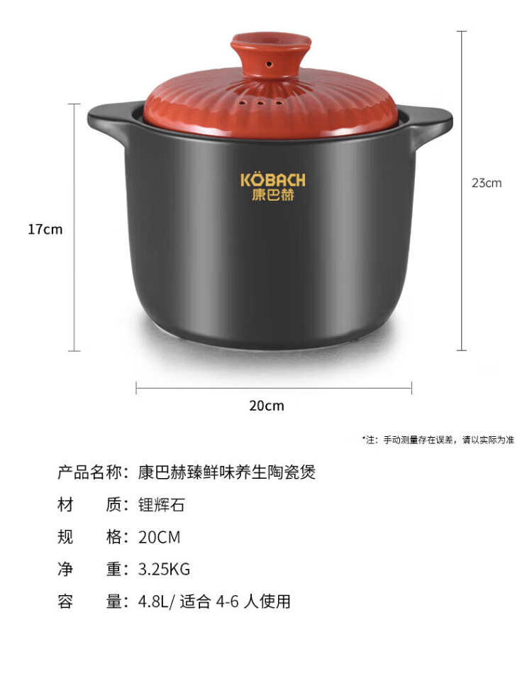 KOBACH casserole, stew, simmer, ceramic pot, fry, Chinese medicine pot, high temperature resistant, non-cracking, health-preserving soup cooker, electric ceramic stove, gas stove, large size with red lid (1-7 people) 4.8L