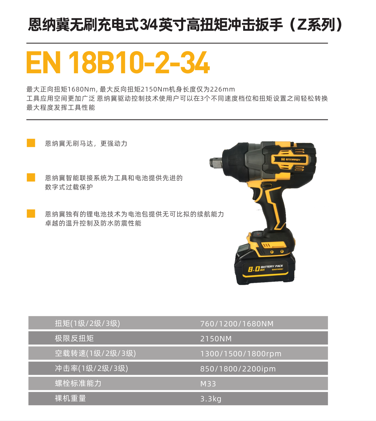 Ennaji Ennaji Brushless Rechargeable 3/4-Inch High Torque Impact Wrench 5.0 Ah One Charge One Charge (Z Series)