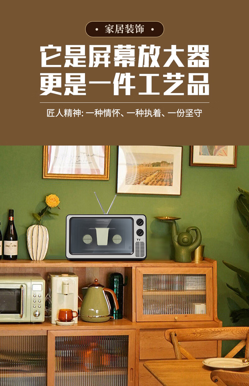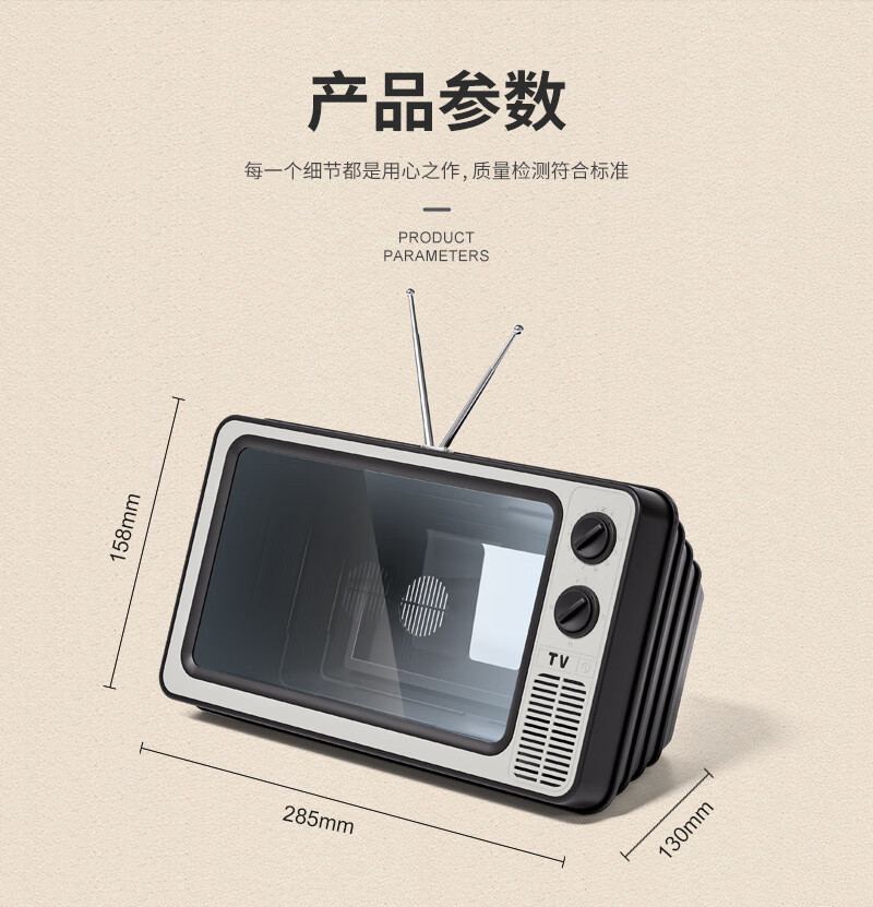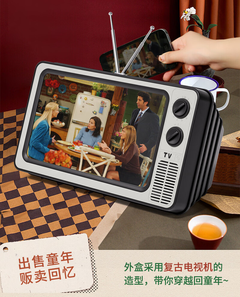 Jianshi mobile phone screen amplifier drama chasing artifact comes with Bluetooth audio TV desktop mobile phone holder creative retro TV HD curved student watching TV drama chasing holder full screen black upgraded model 12 inches comes with Bluetooth audio