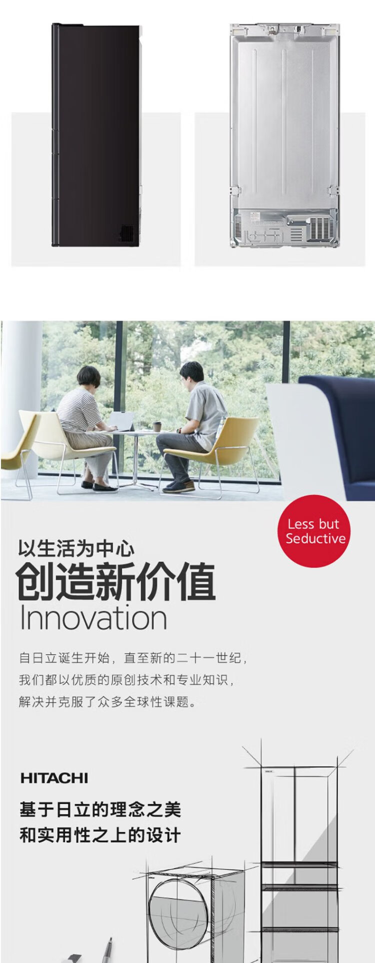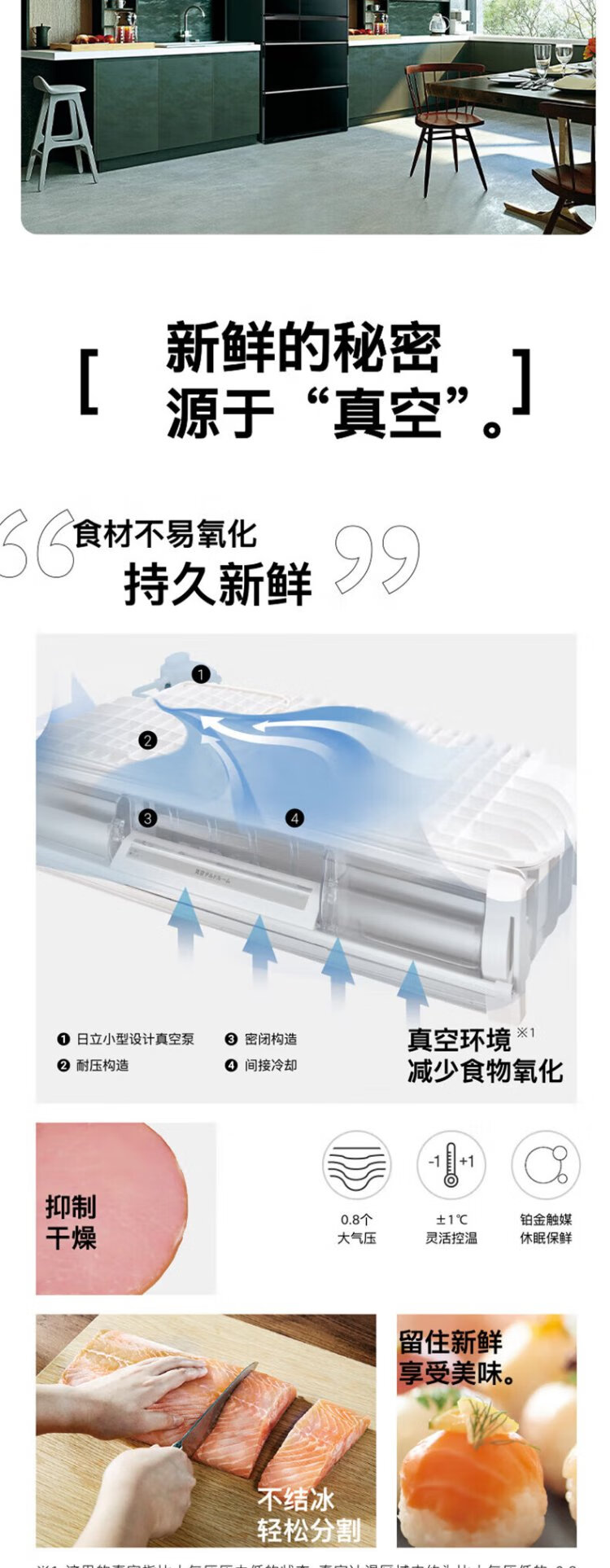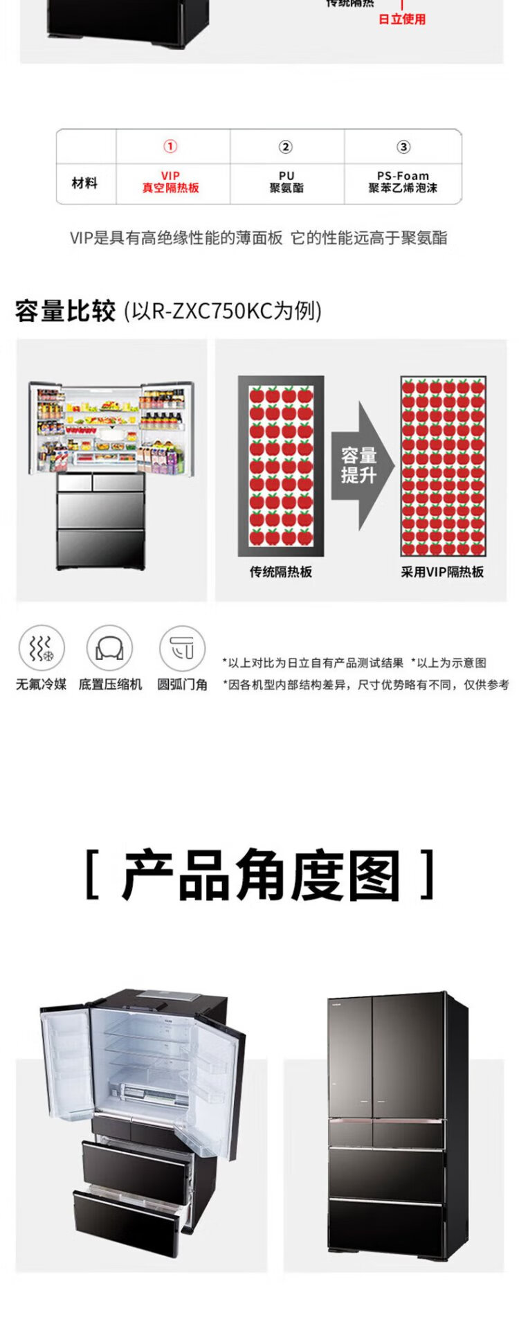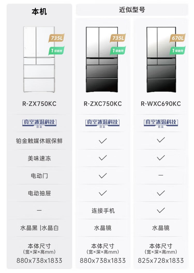 Hitachi refrigerator 735L large capacity embedded multi-door R-ZX750KC (XW) crystal white vacuum preservation electric door automatic ice making flagship machine crystal white