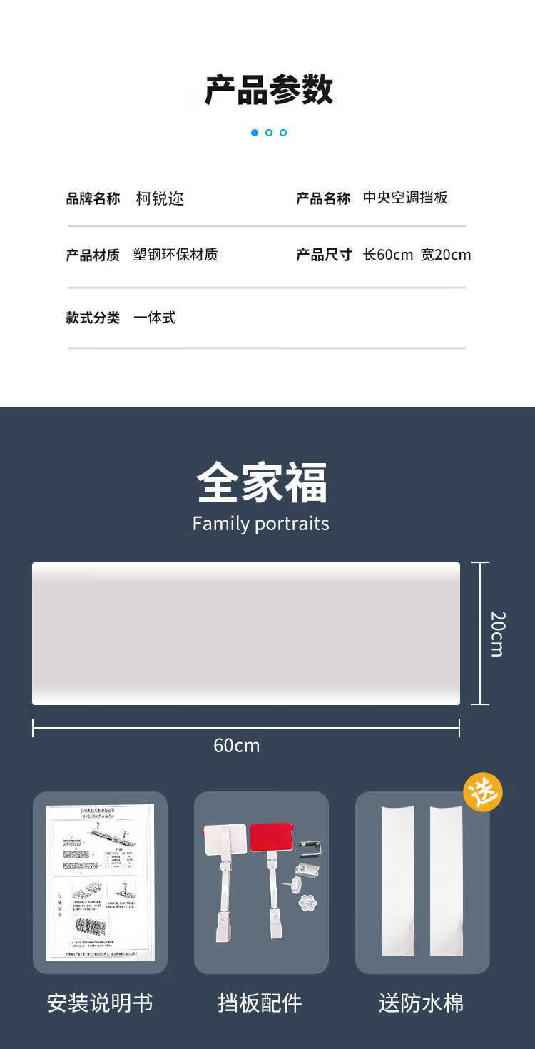 Keruier central air-conditioning baffle ceiling machine windshield office air outlet anti-direct blowing air-conditioning windshield one-piece-60 cm