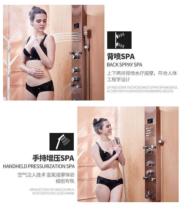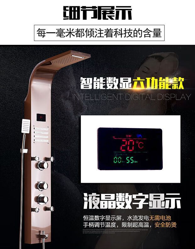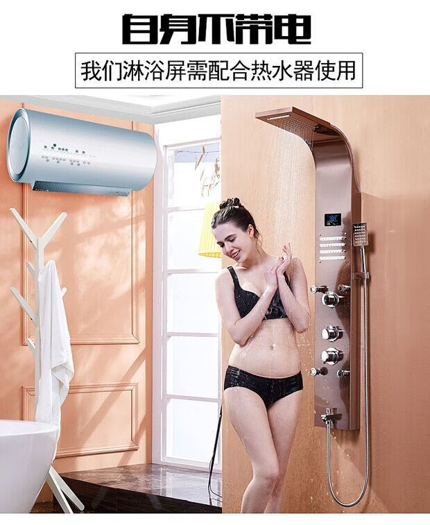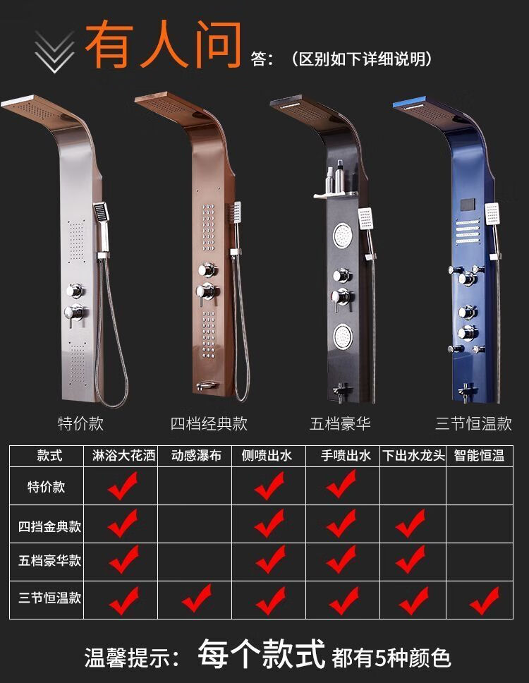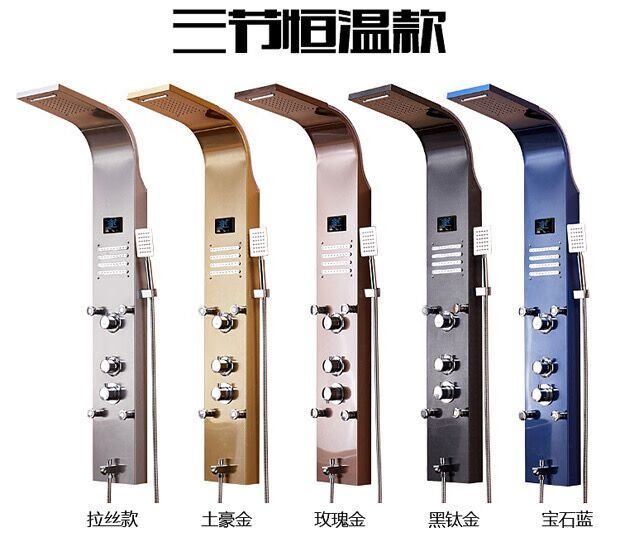 Stainless steel shower screen bathroom shower screen shower set home bathroom constant temperature all-copper rain shower head shower 4-function rose gold