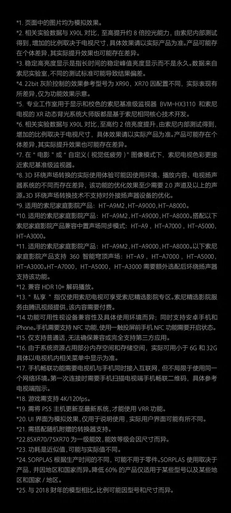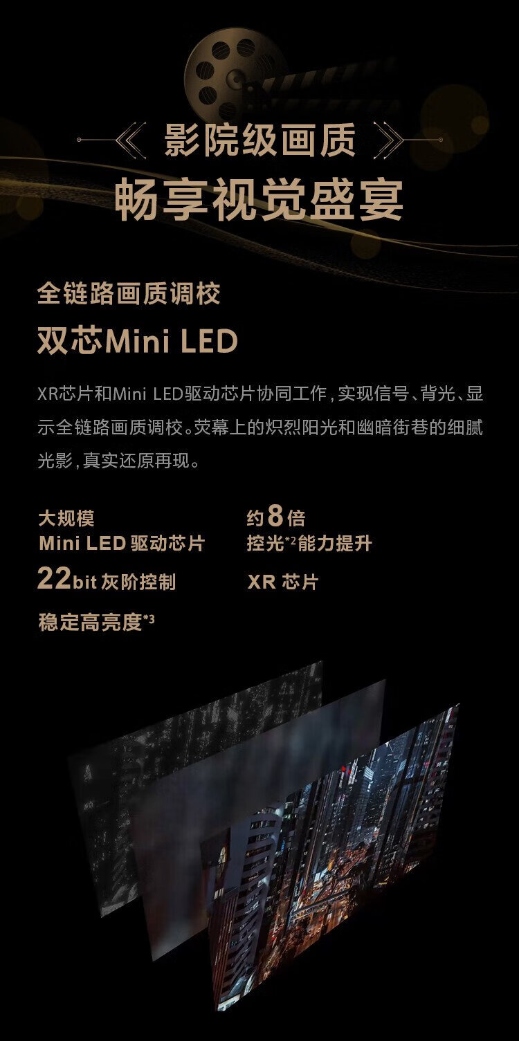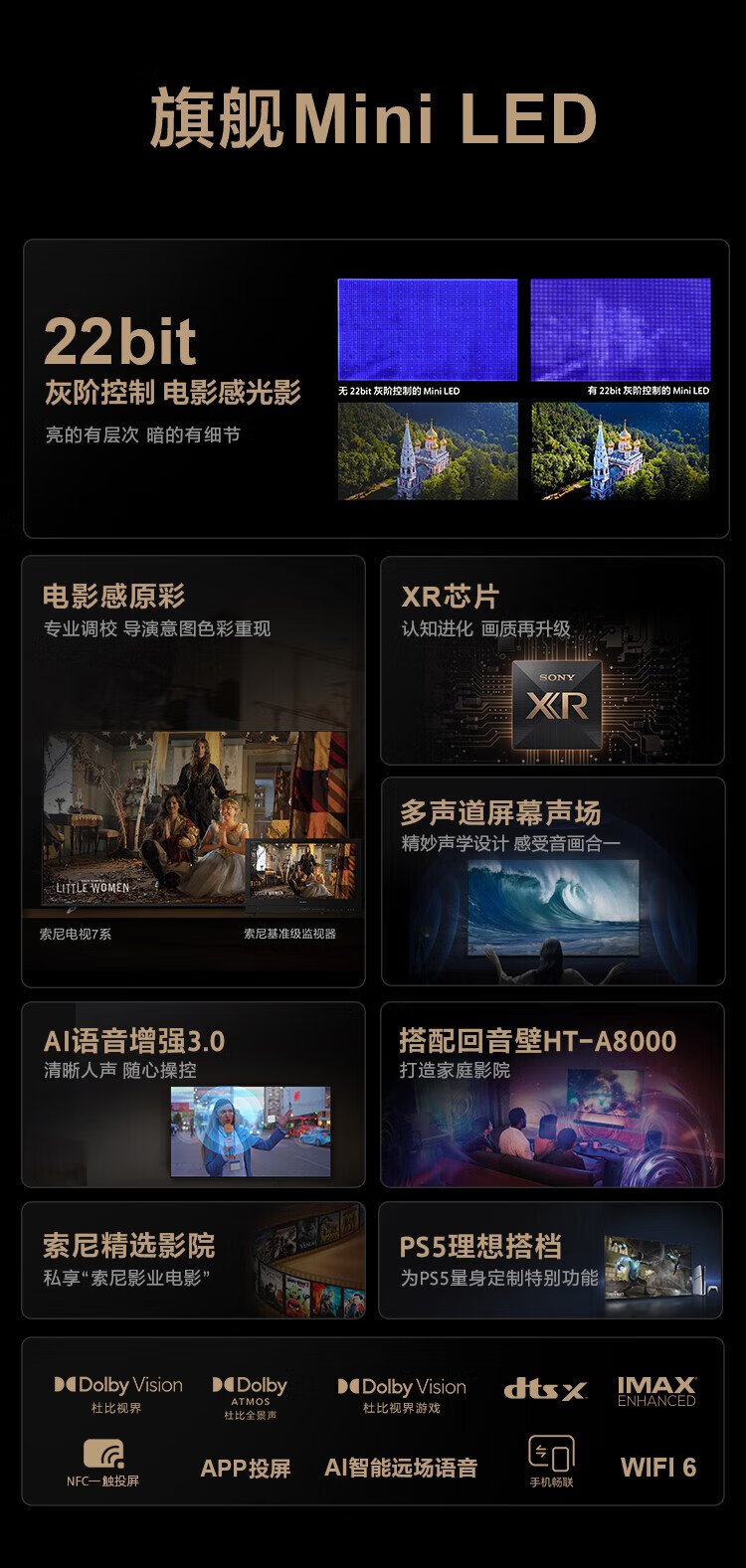 Sony (SONY) K-85XR70 85-inch Sony 7 series new MiniLED 4K120Hz full-screen smart TV 22bit grayscale control XR chip first-level energy efficiency national subsidy 85-inch K-85XR70 (government subsidy)