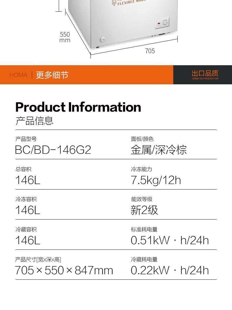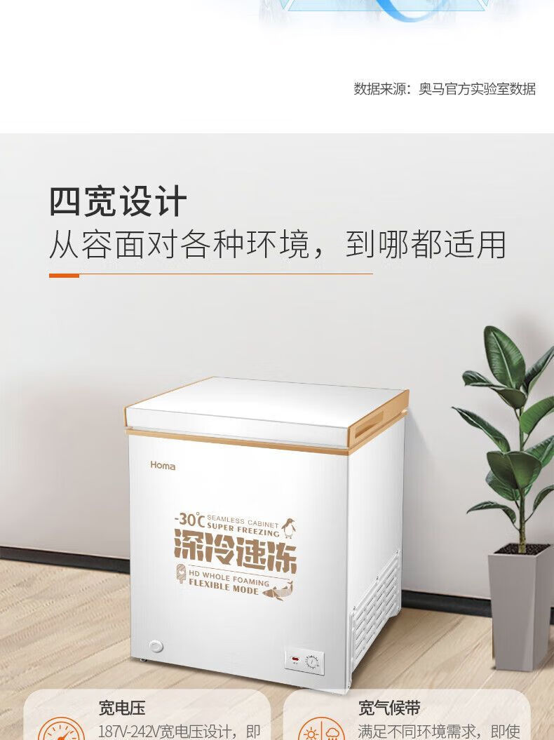 Oma small freezer household first-class energy-efficient energy-saving freezing and refrigeration dual-purpose horizontal fresh-keeping freezer stocking small refrigerator 202 liters deep cold brown