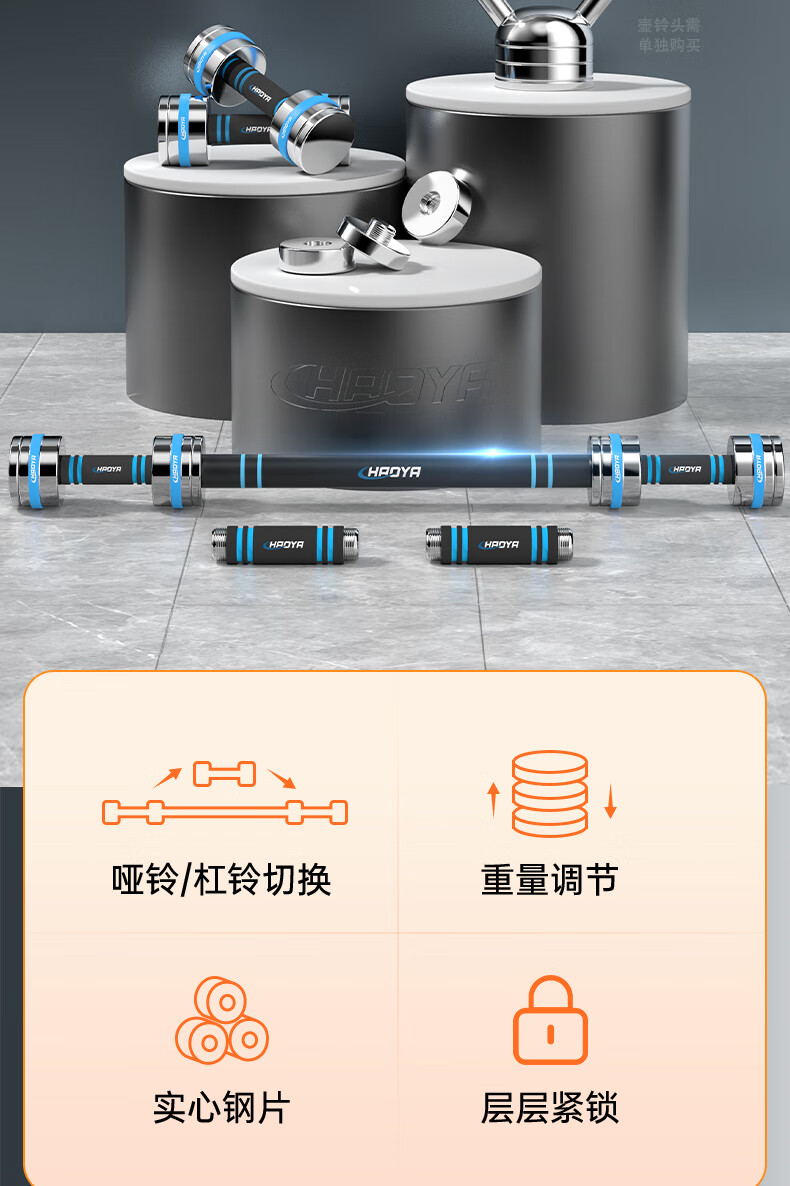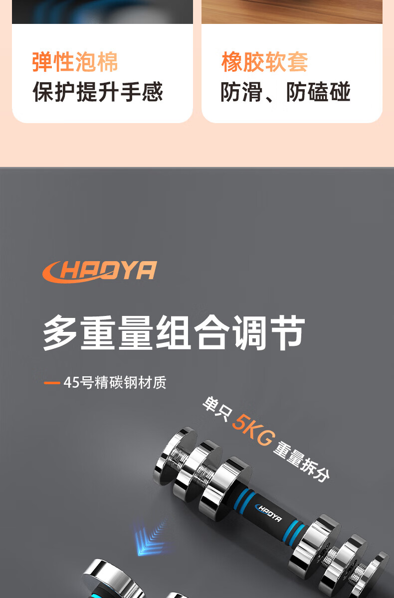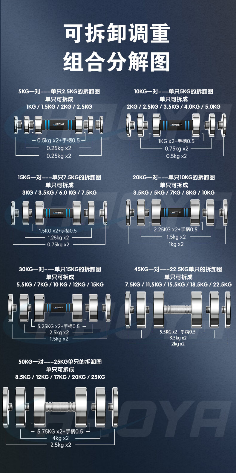 HAOYA electroplated small dumbbell pure steel adjustable dumbbell combination barbell home fitness stainless steel weightlifting solid fitness equipment 15kg (7.5kg*2) pure steel adjustment thread does not separate
