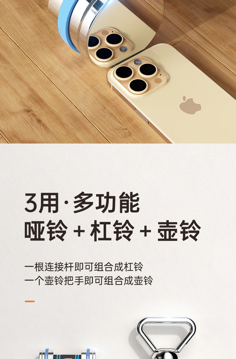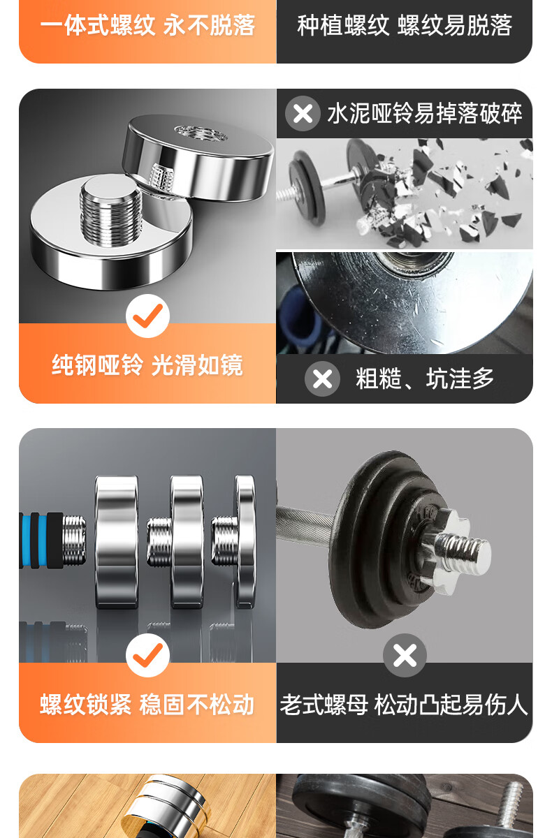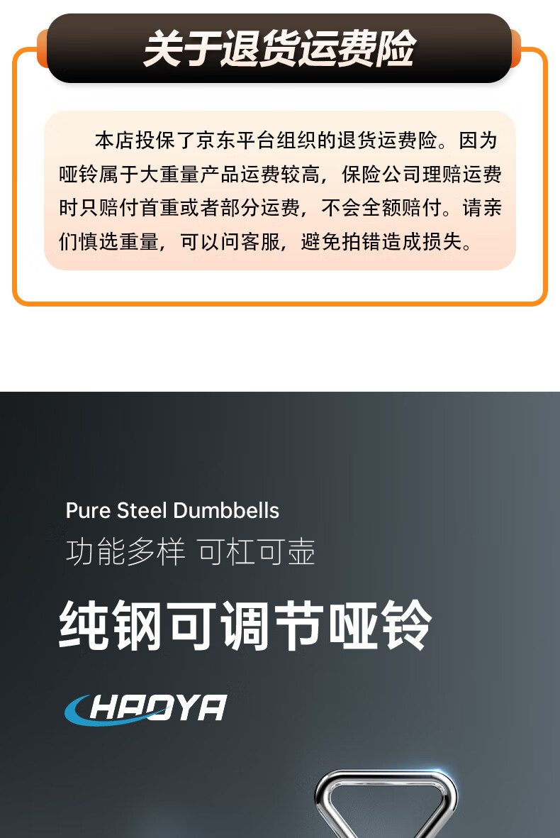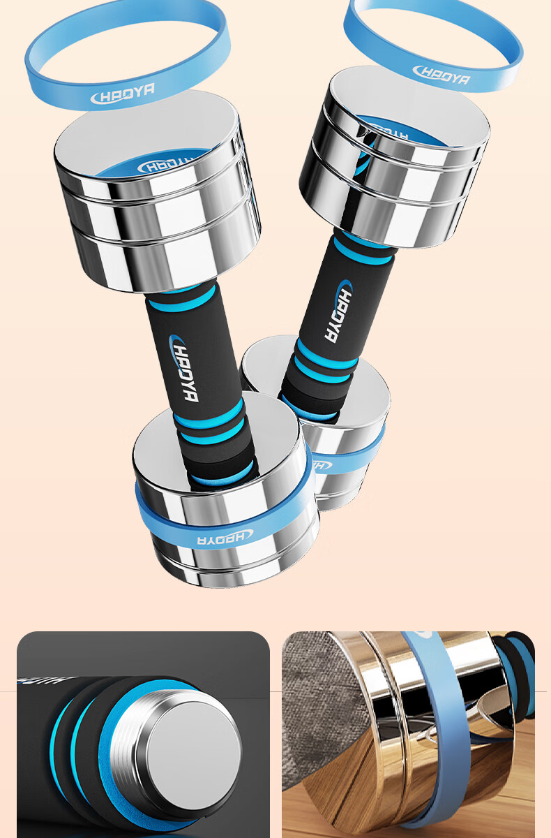 HAOYA electroplated small dumbbell pure steel adjustable dumbbell combination barbell home fitness stainless steel weightlifting solid fitness equipment 15kg (7.5kg*2) pure steel adjustment thread does not separate