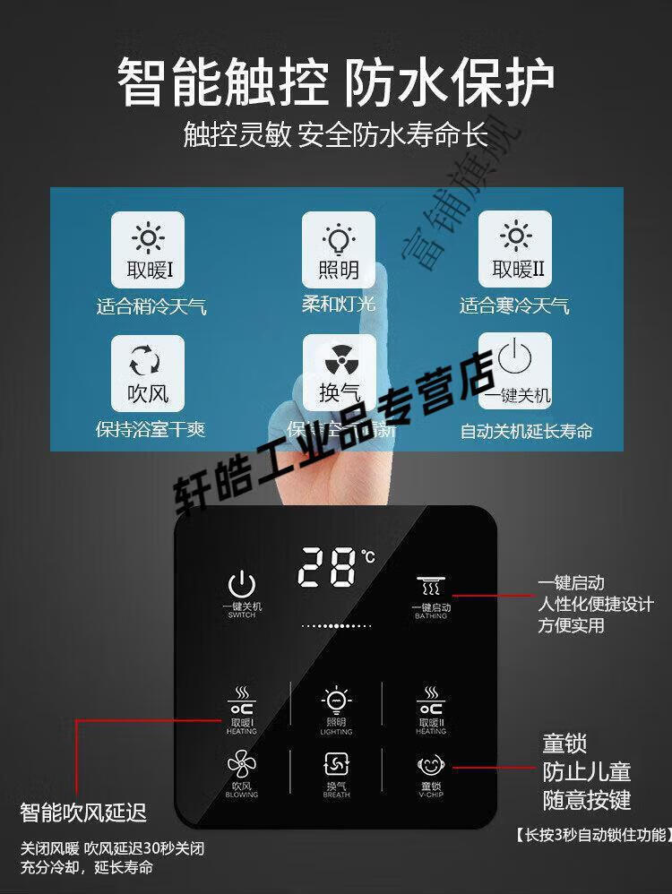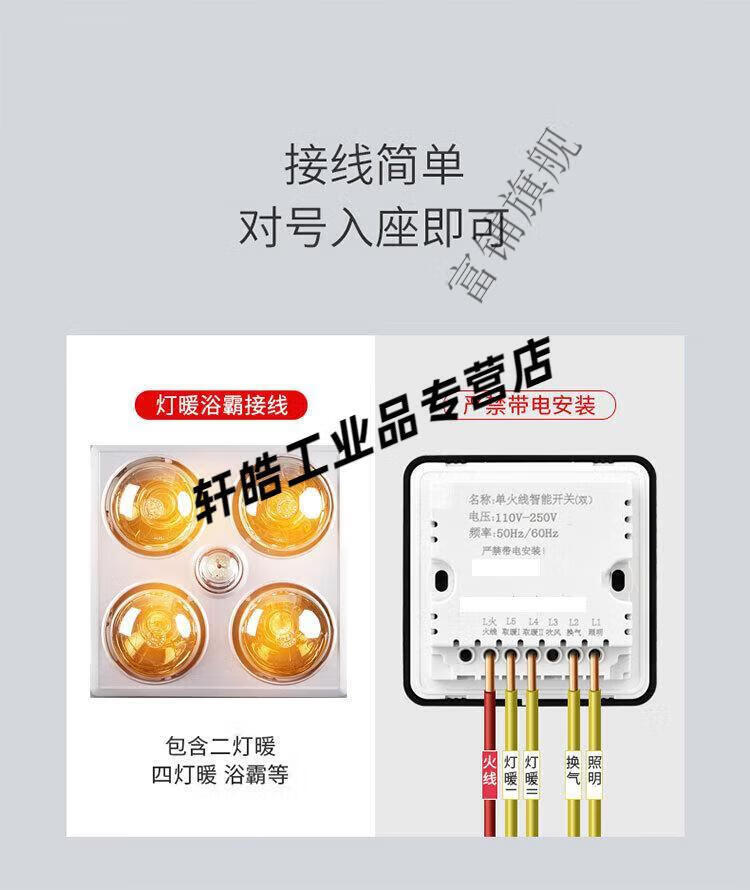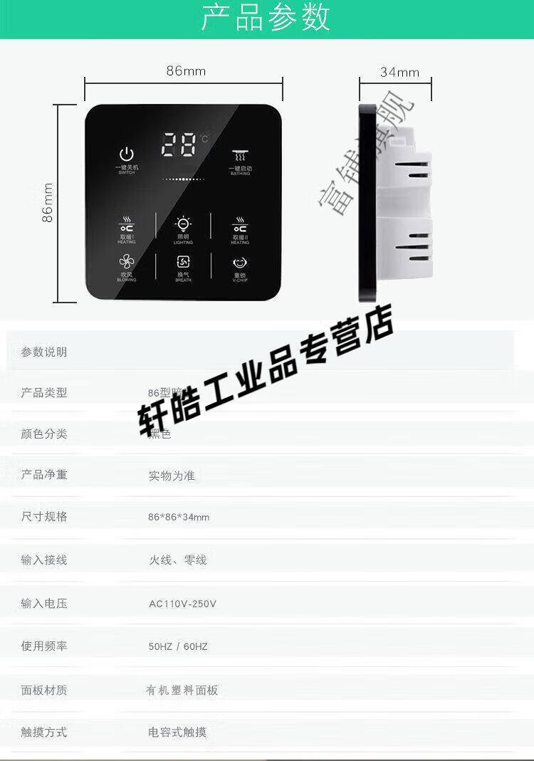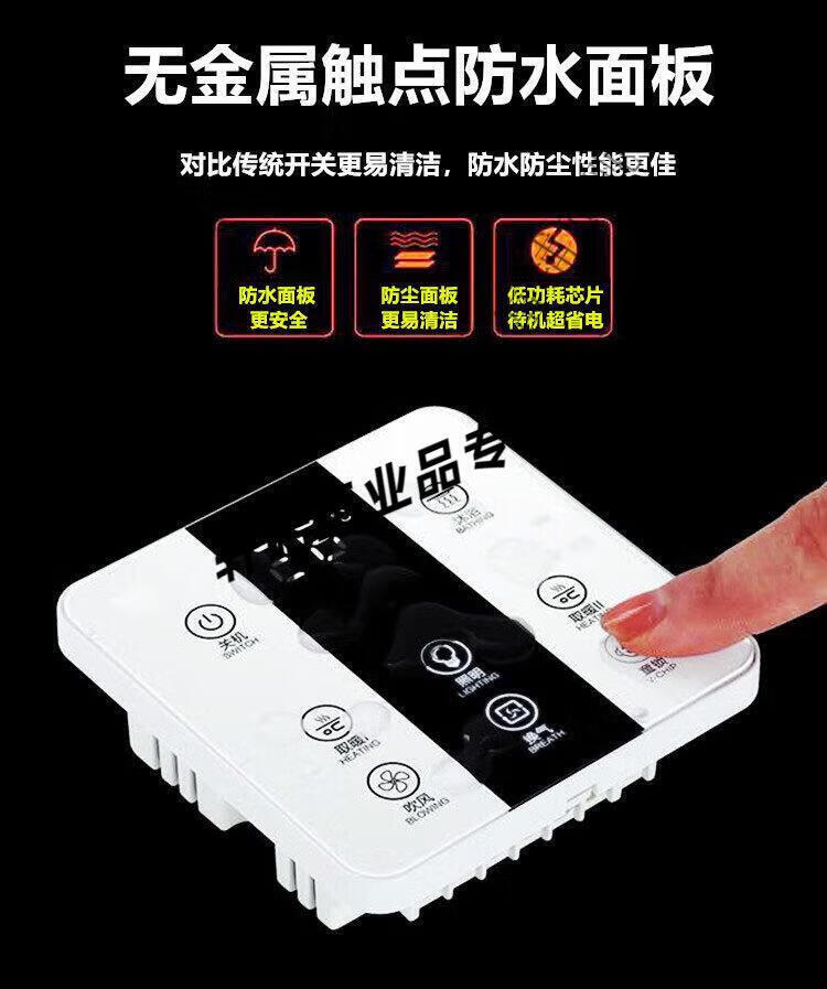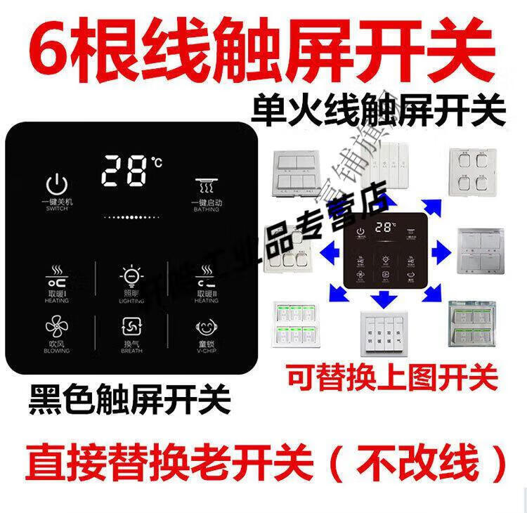 Smart bathroom heater switch 5-on, 4-on, home I with universal touch screen, 3-on, 6-on, 1-on, single fire, 7 wires, zero wire required, panda white