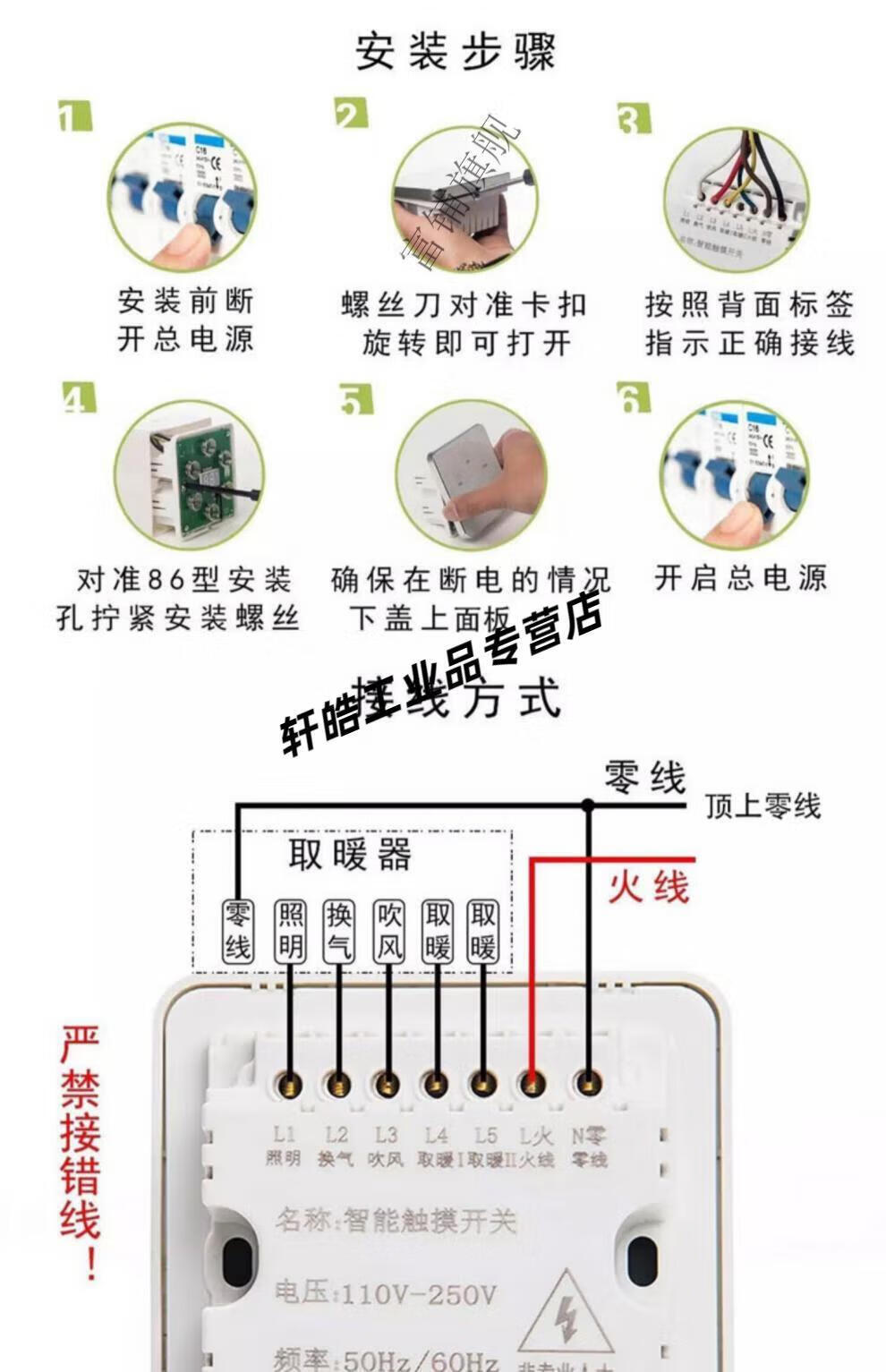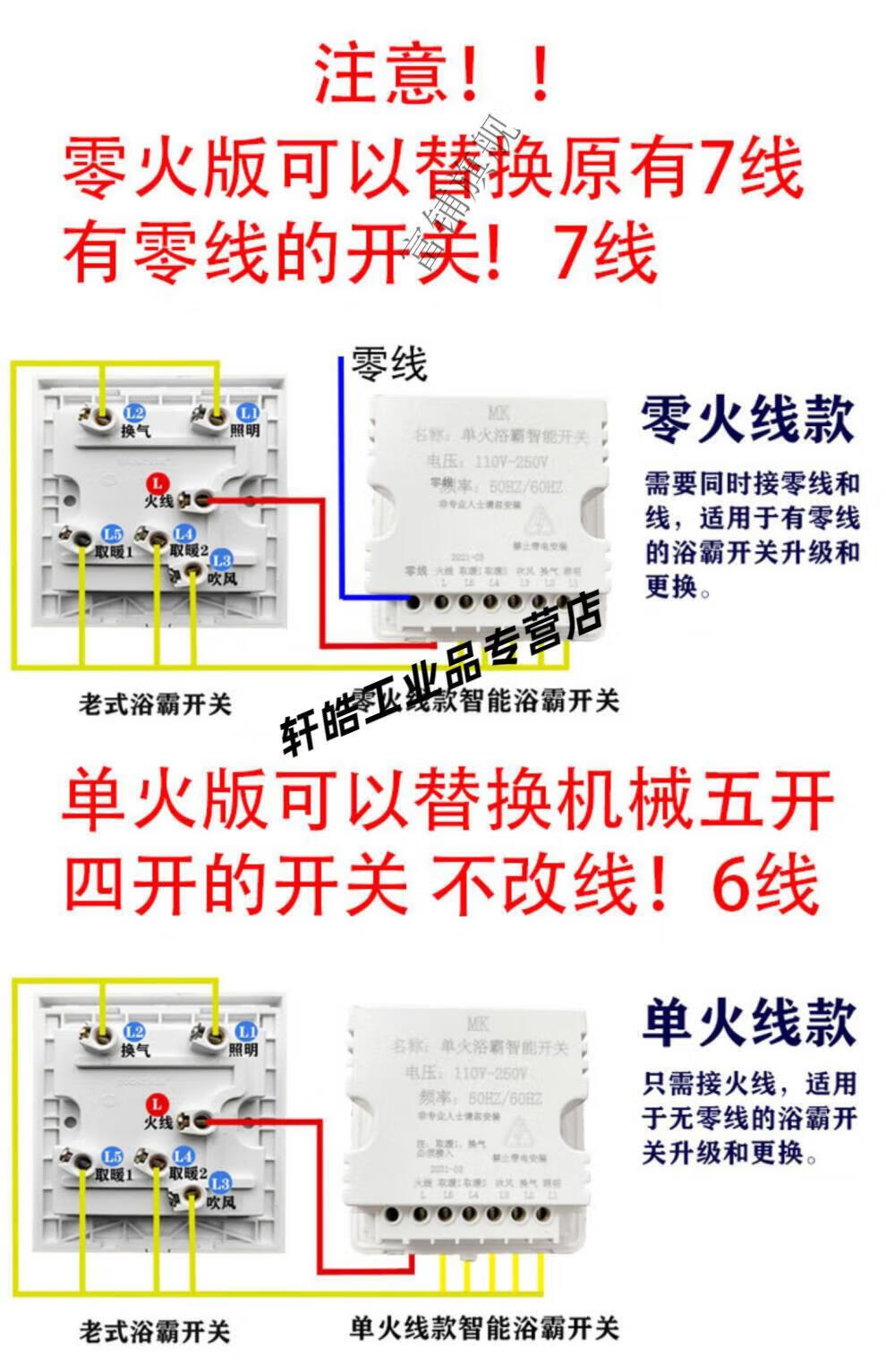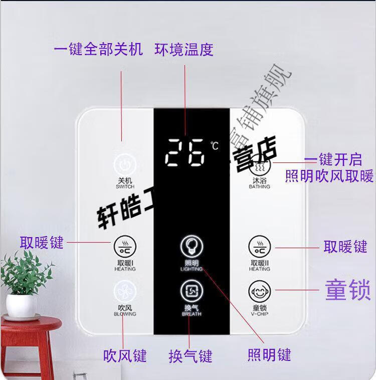 Smart bathroom heater switch 5-on, 4-on, home I with universal touch screen, 3-on, 6-on, 1-on, single fire, 7 wires, zero wire required, panda white