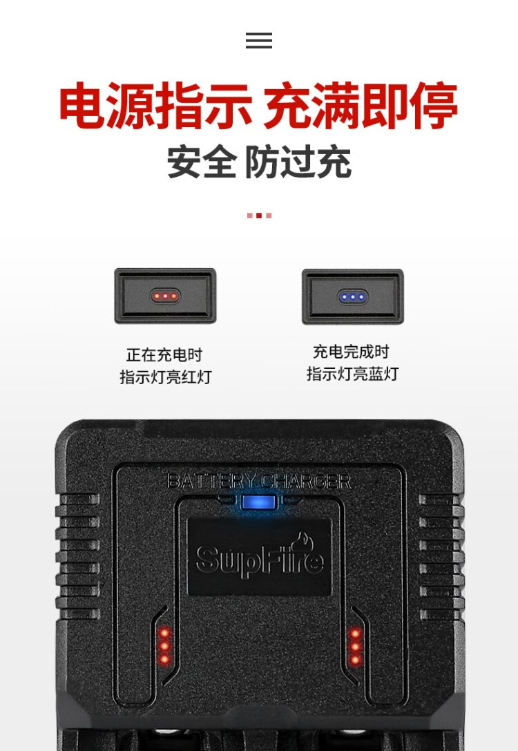 SupFire L6 Shenhuo L3 strong light flashlight 26650 lithium battery charger 18650 dual slot charger SupFire USB interface single slot charger (without plug)