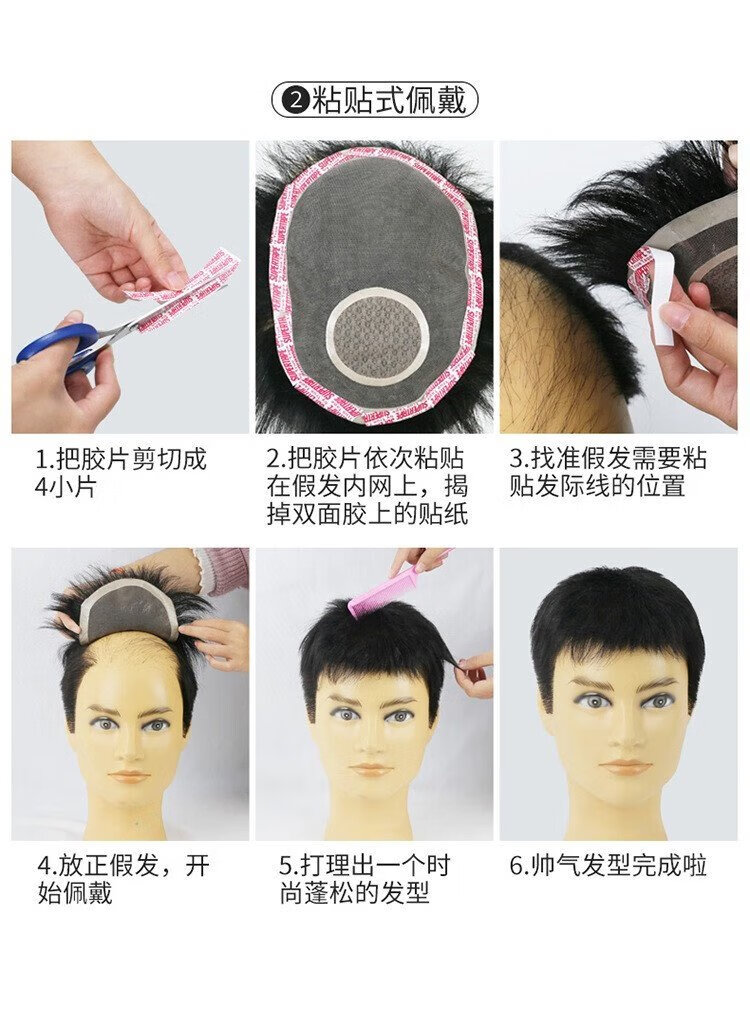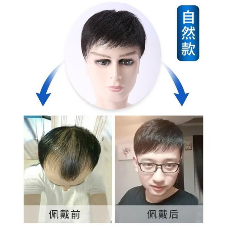 Soul special wig for men with short hair, handsome men's real hair wig, real hair wig piece on top of head, biological scalp, bald head wearable 14*19, natural black