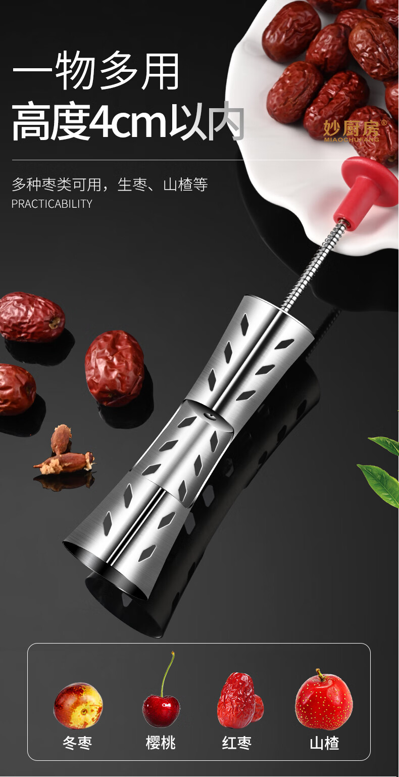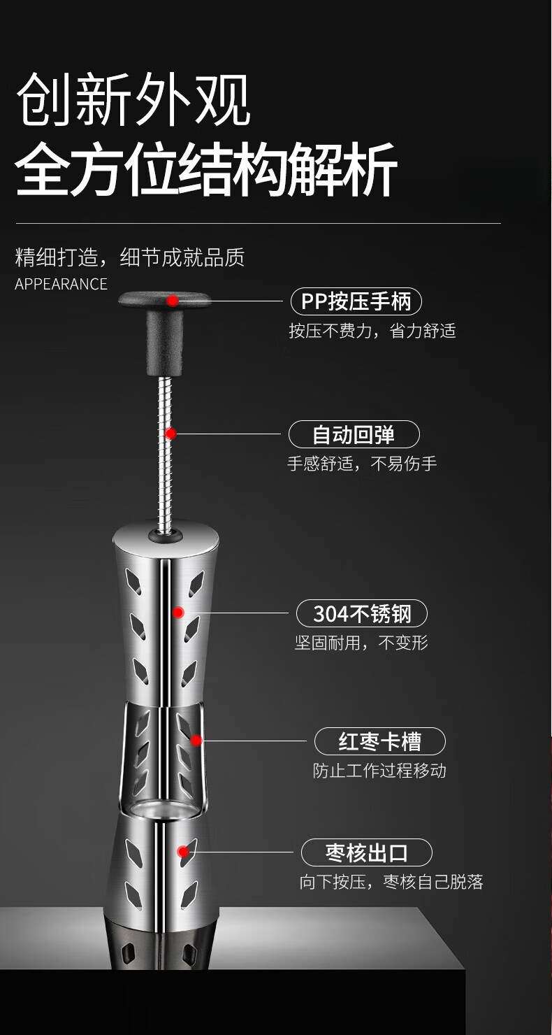 CLCEY jujube core remover household multifunctional jujube core remover fully automatic 304 stainless steel jujube removal tool small waist black