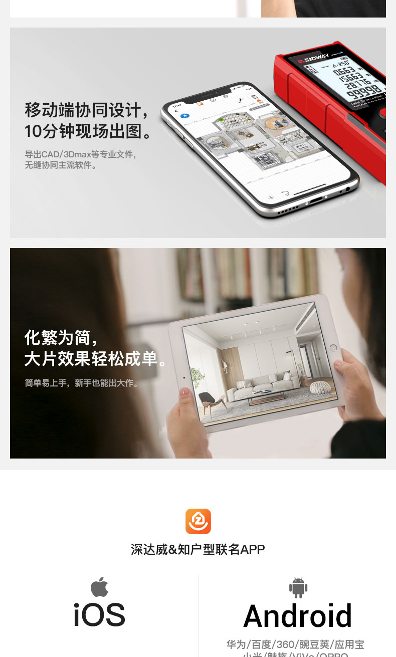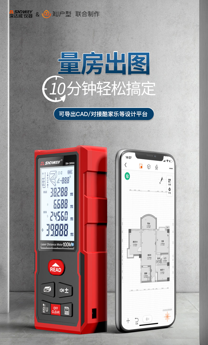 SNDWAY Bluetooth laser distance meter, room measuring instrument, CAD drawing to know the house type APP, high-precision infrared electronic ruler charging SW-BT40 red light 40 meters, knowing the house type member