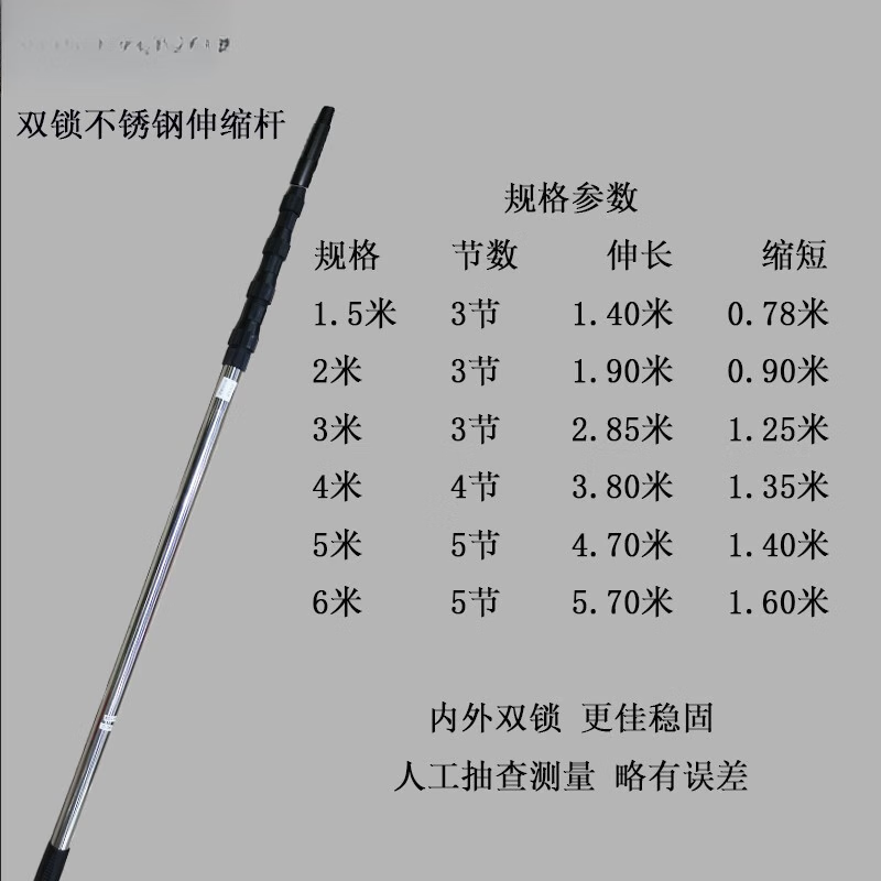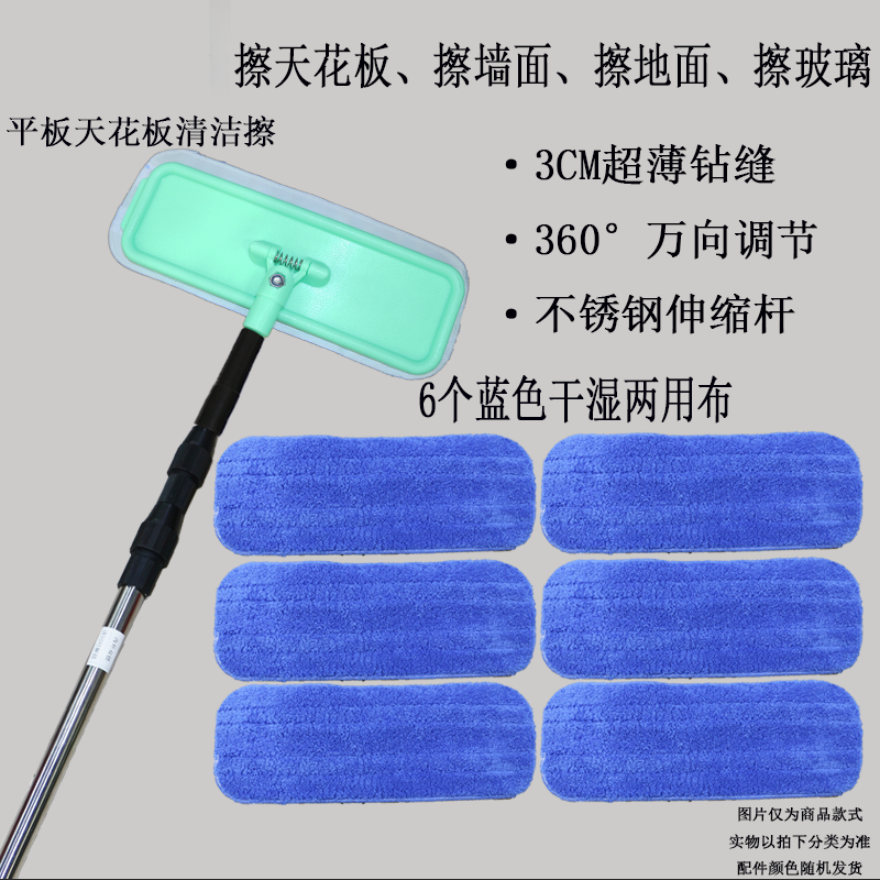 Suitable for Jiatwei 3m 5m stainless steel telescopic rod flat ceiling wall cleaning and wiping roof 3m ceiling wiping 4 wet and dry cloth double lock extension