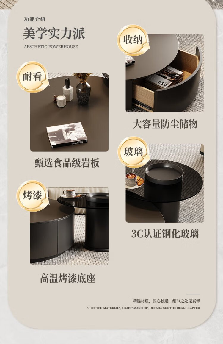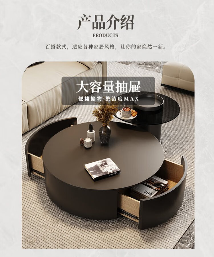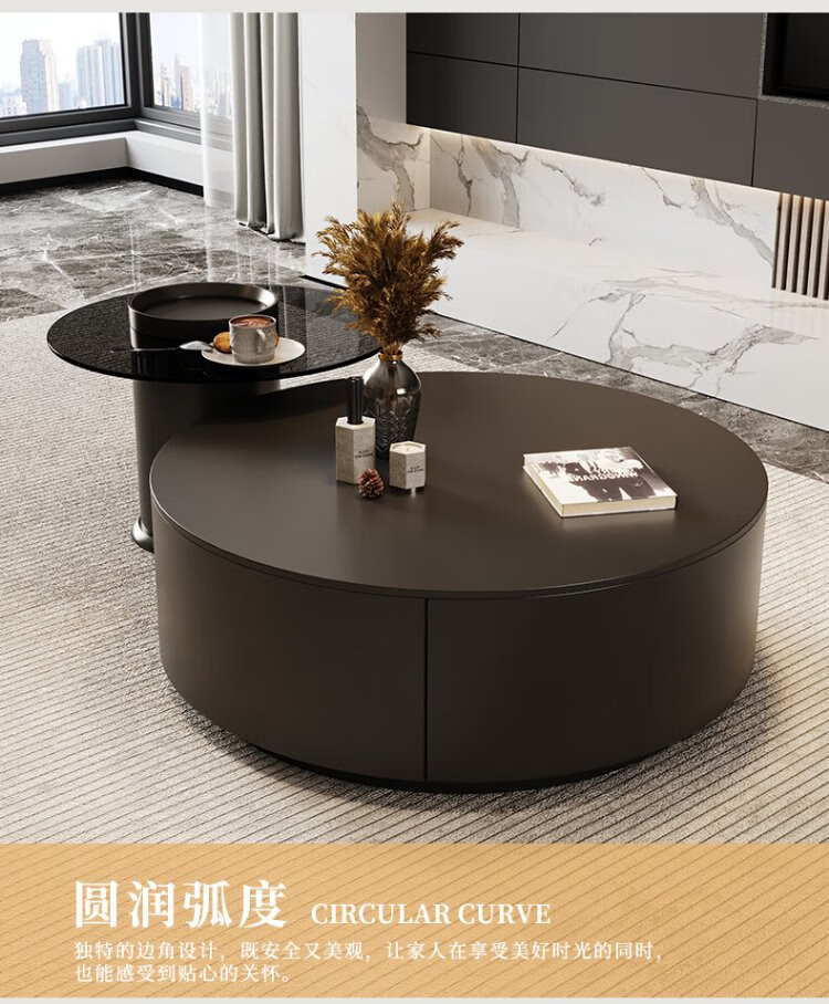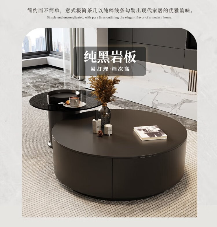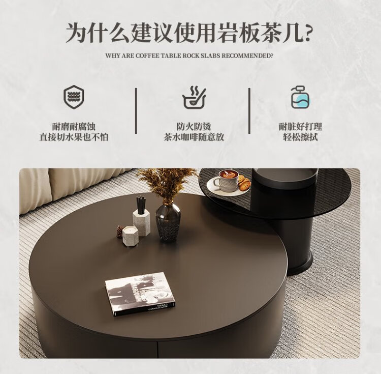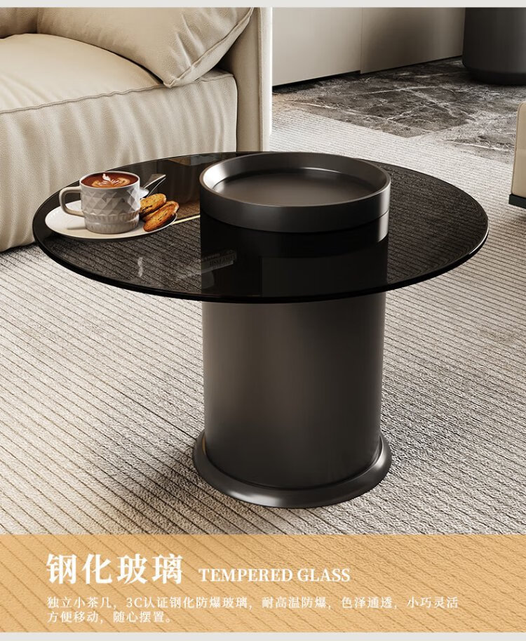Mosu high-end slate coffee table living room light luxury coffee table size apartment household table gray glass round modern simple coffee table cloud white + gray glass combination 80+60 complete set